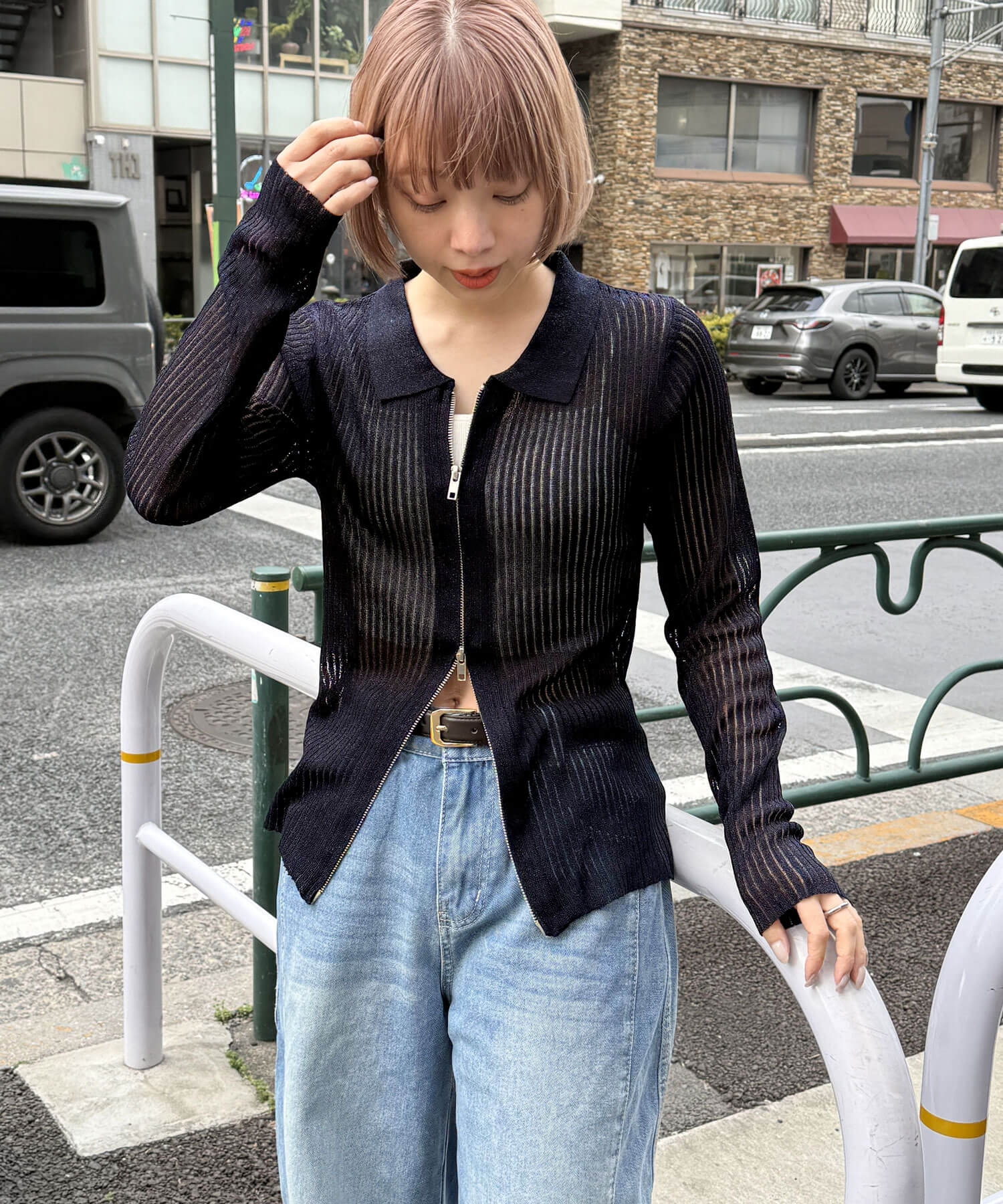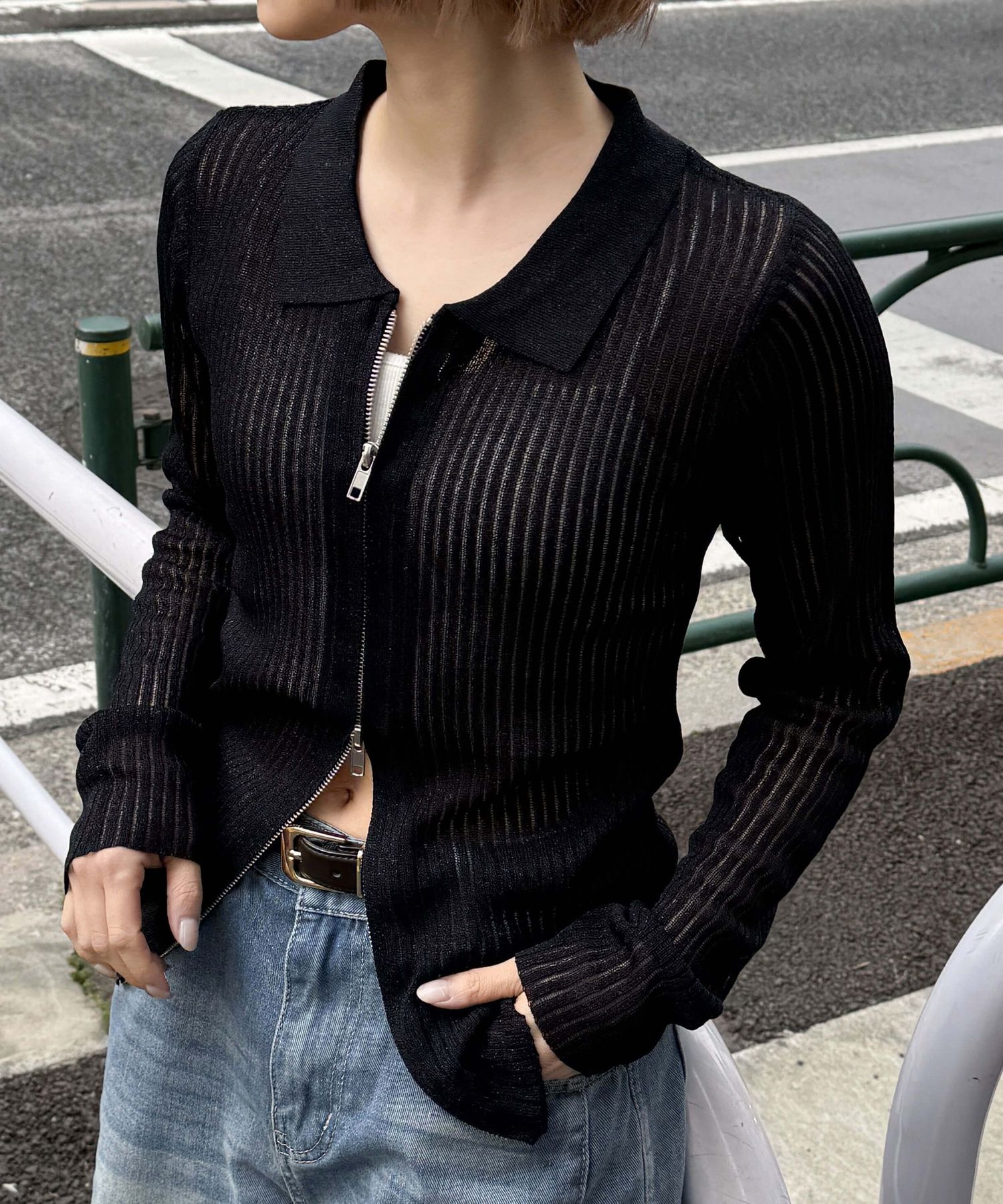 ・ハンサムな印象の襟付きニットにジップをプラスし、トレンドライクに仕上げました。
