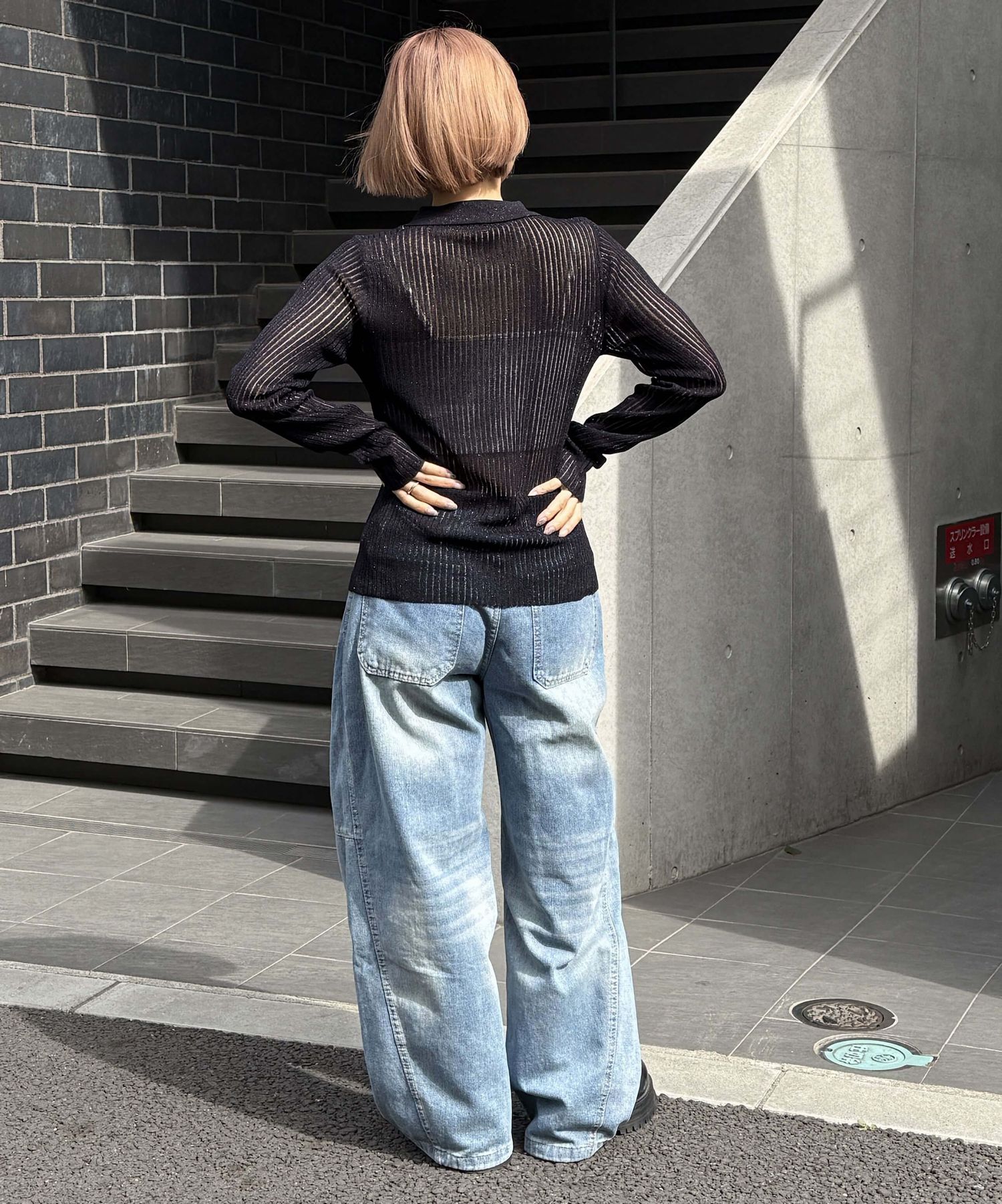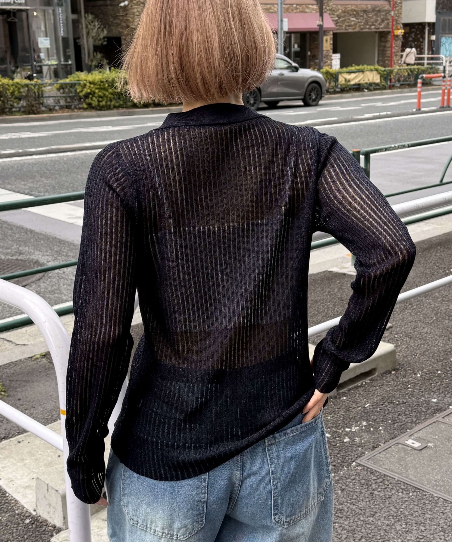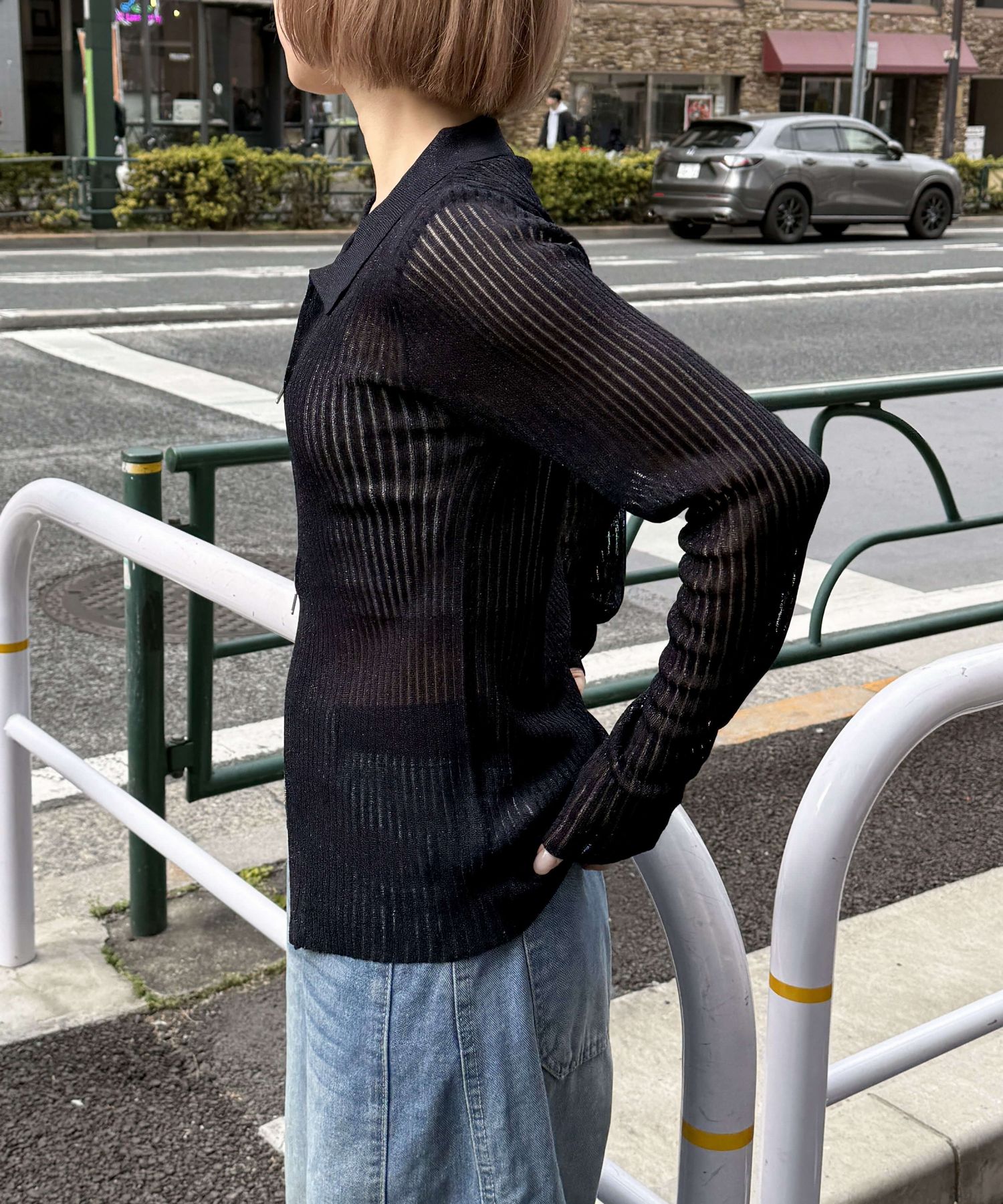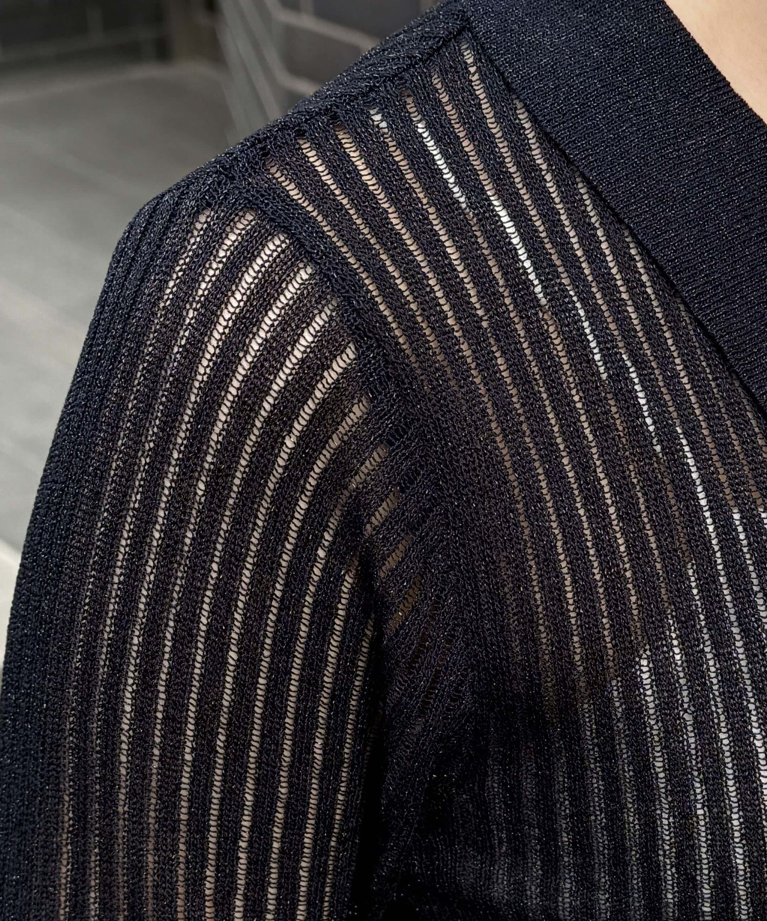 ・華やかなラメ糸を織り交ぜた、シアー感のある生地が魅力。ヘルシーな肌見せやレイヤードコーデにぴったりです。