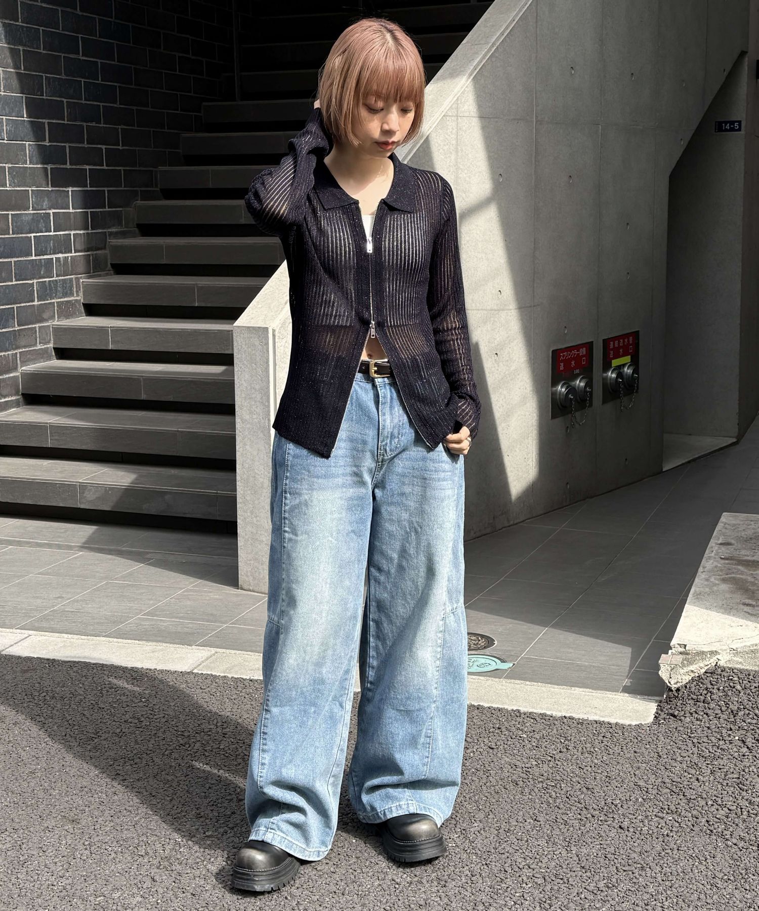 ・ダブルジップで上下開閉可能なので、ハイウェストボトムもバランスよくスタイリング可能です。