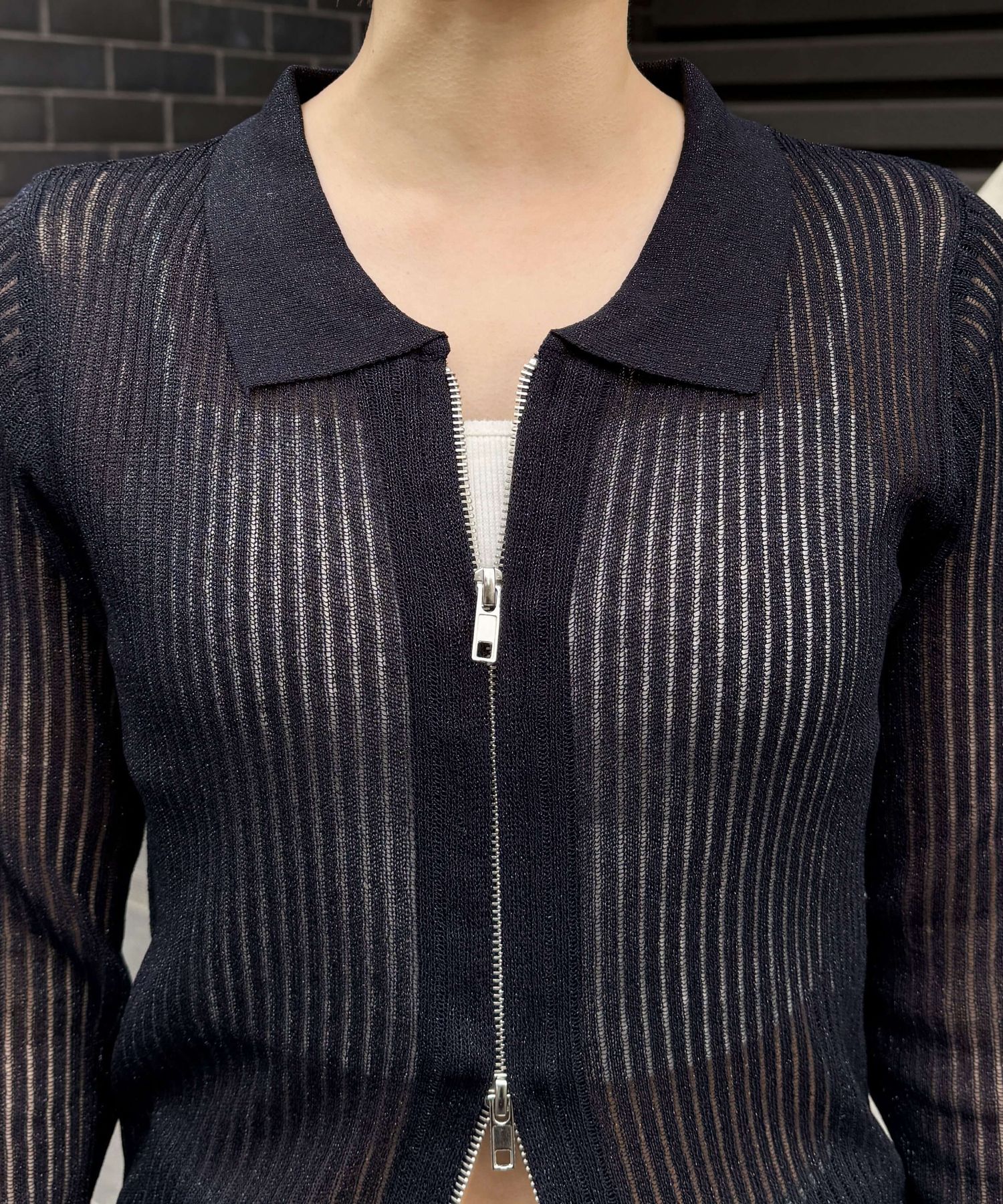 ・ダブルジップとラメ素材が今年らしいニットカーディガンです。