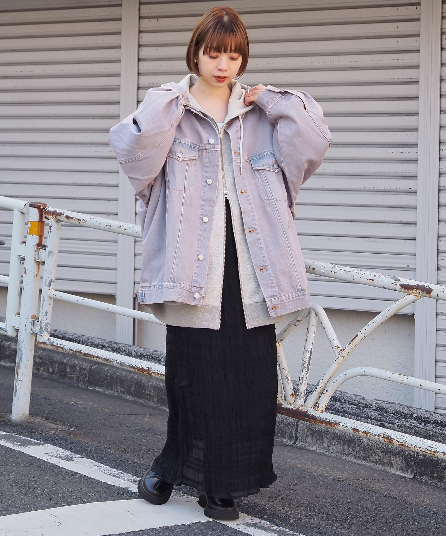 ・春の着こなしに欠かせないデニムジャケット。ビッグシルエットでこなれ感が出ます。