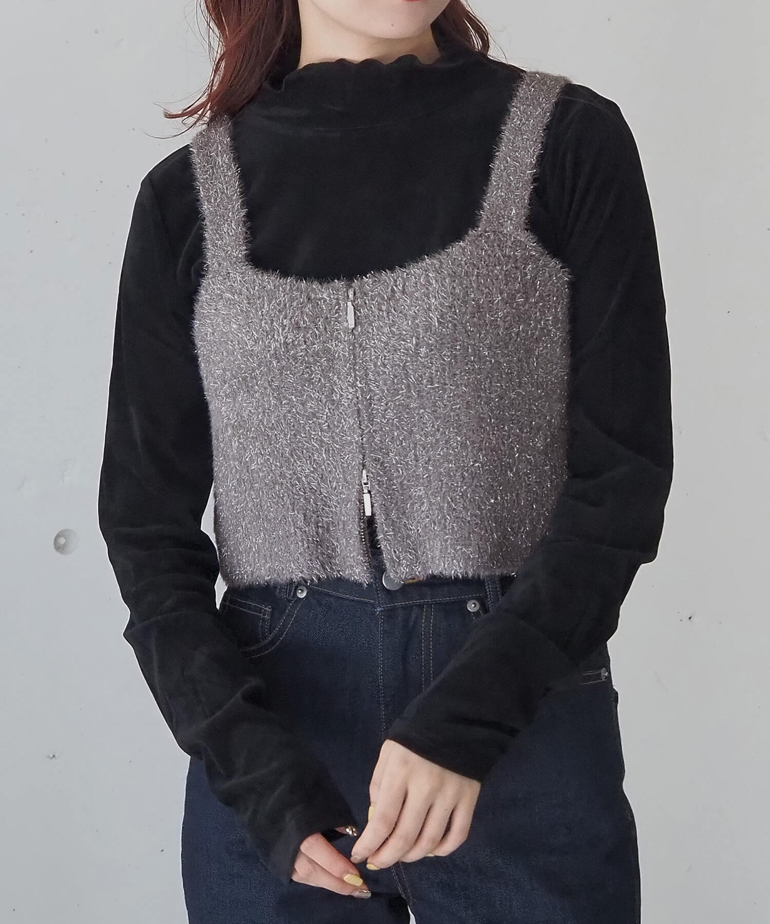 ・トレンドのダブルジップデザインで着こなしのアレンジができるのはもちろん、ジップがアクセントになり甘すぎない印象に仕上がるのが魅力。