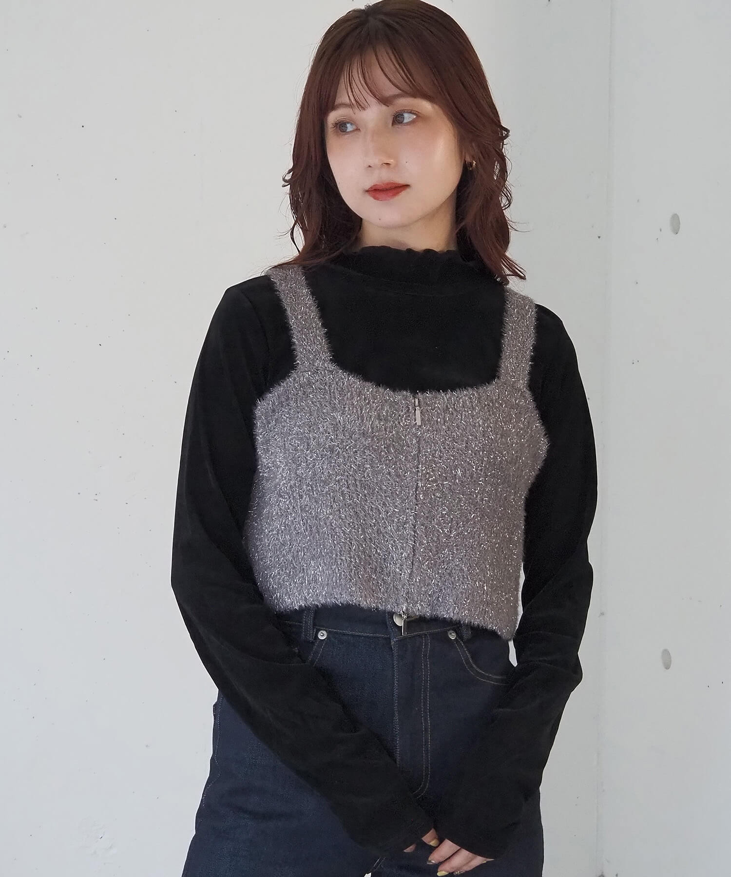 ・トップスとのレイヤードを楽しめる、ニットビスチェです。