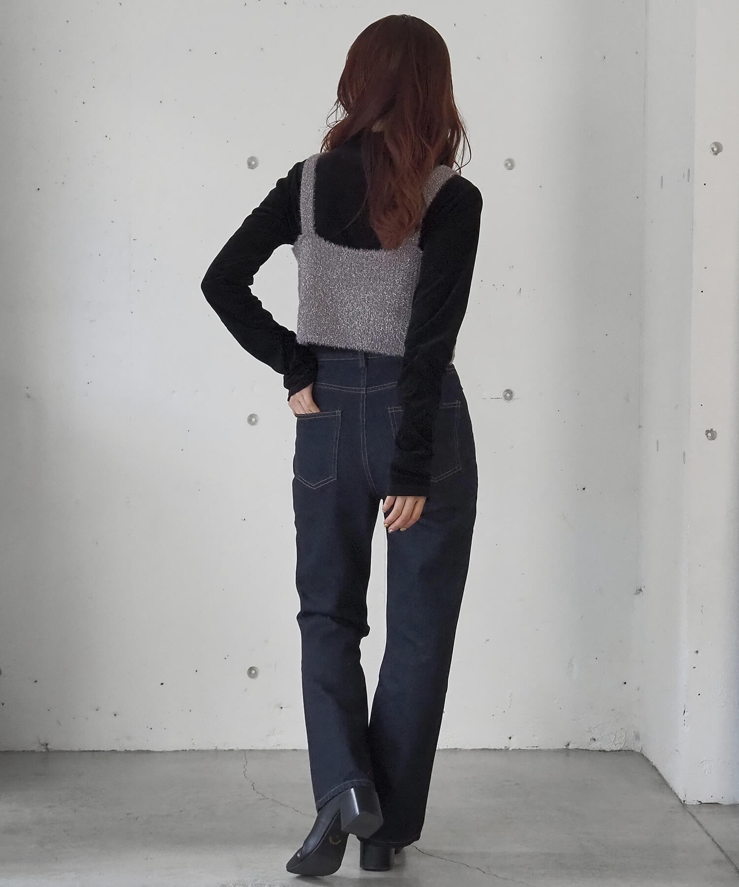 ・クロップド丈を活かし、ハイウェストボトムで脚長効果抜群のスタイルアップコーデが完成します。