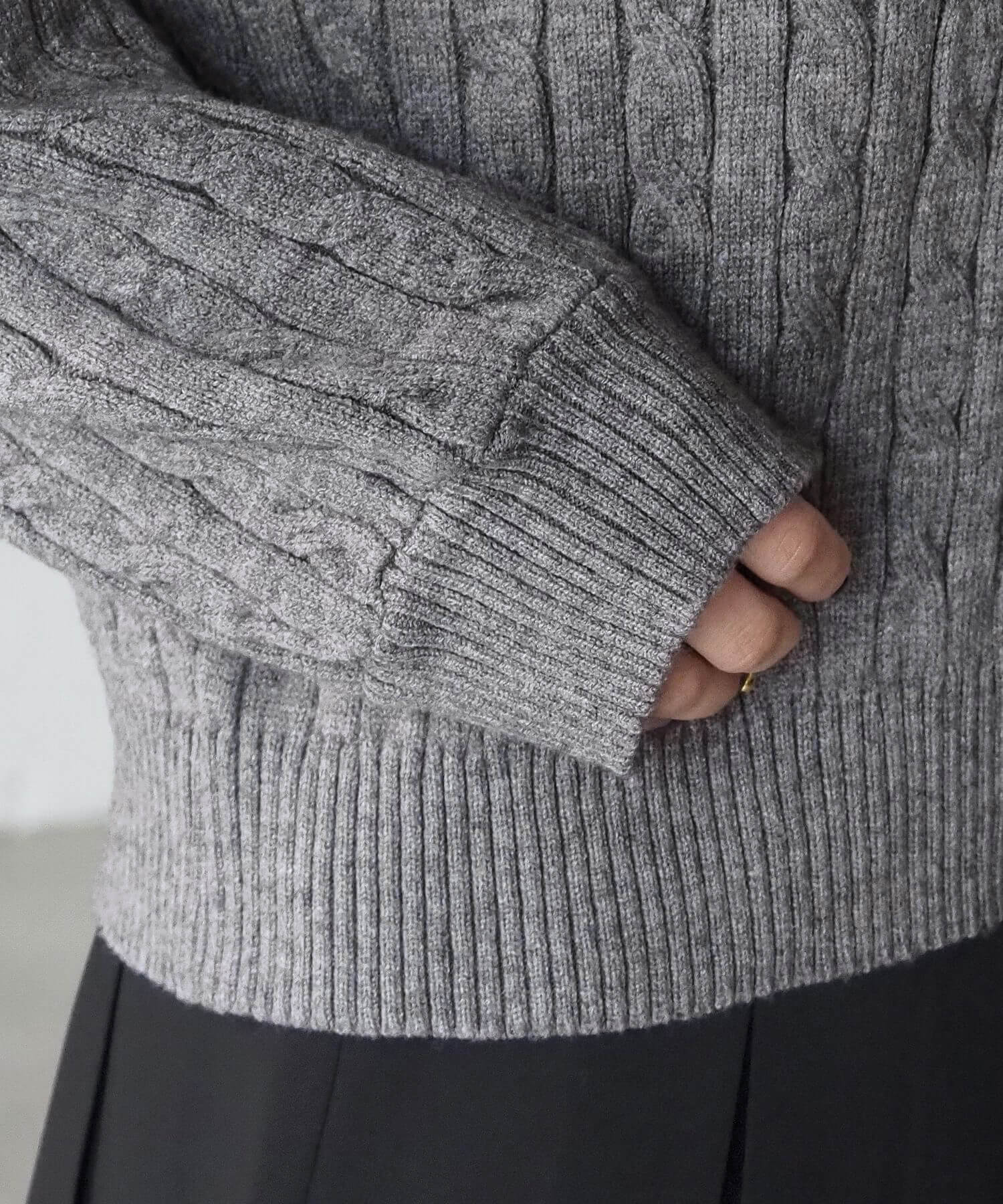 ・上品なケーブルニットをポロテイストにアップデートさせた、今季らしい1枚。