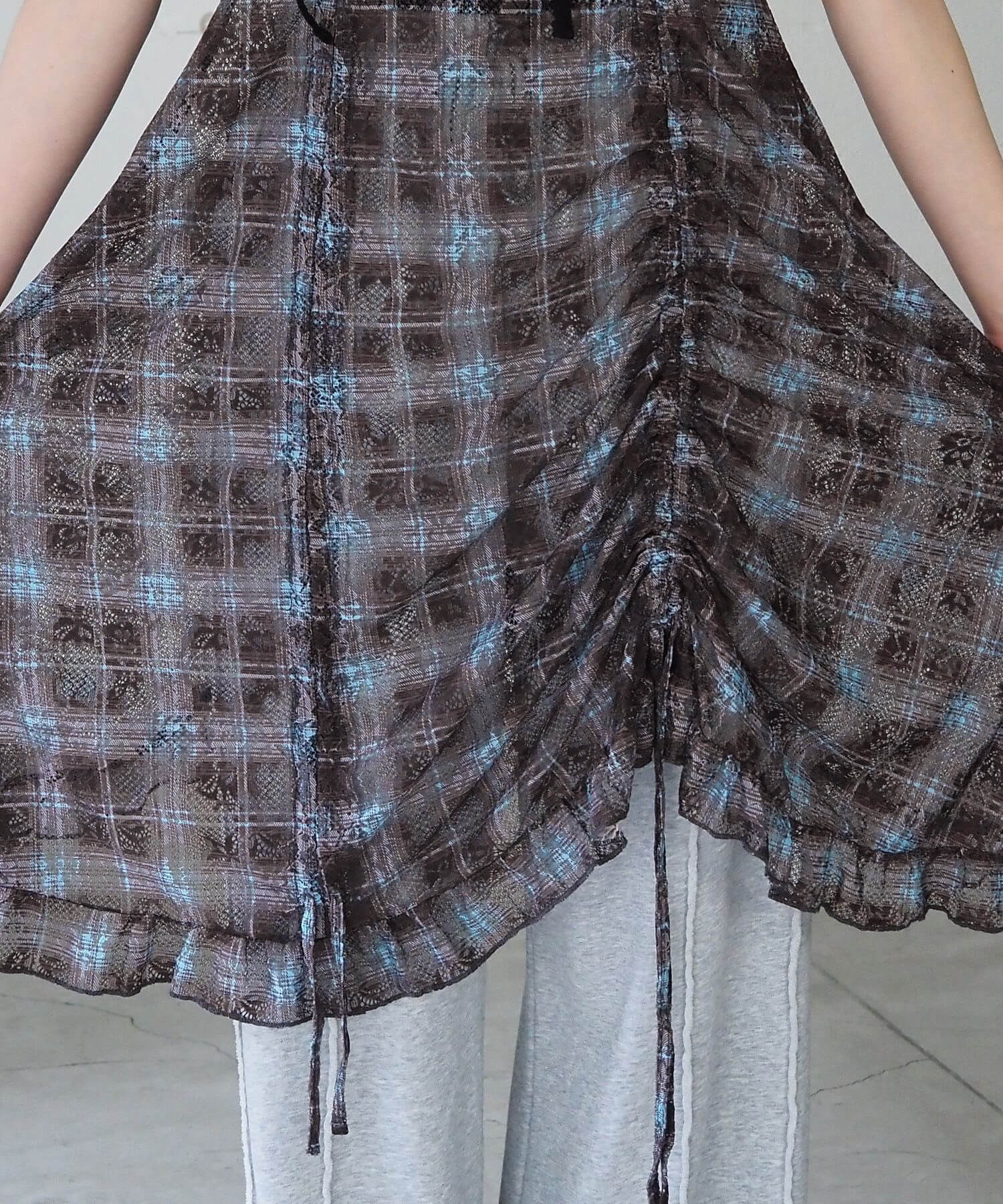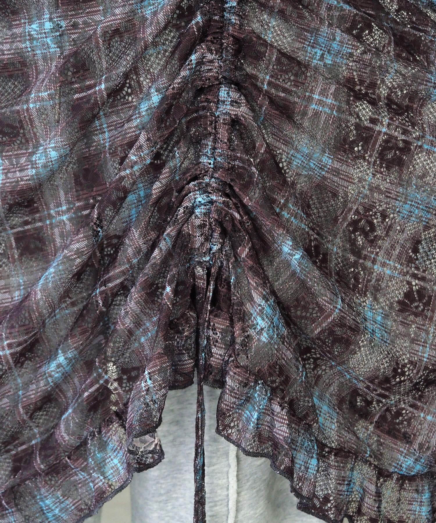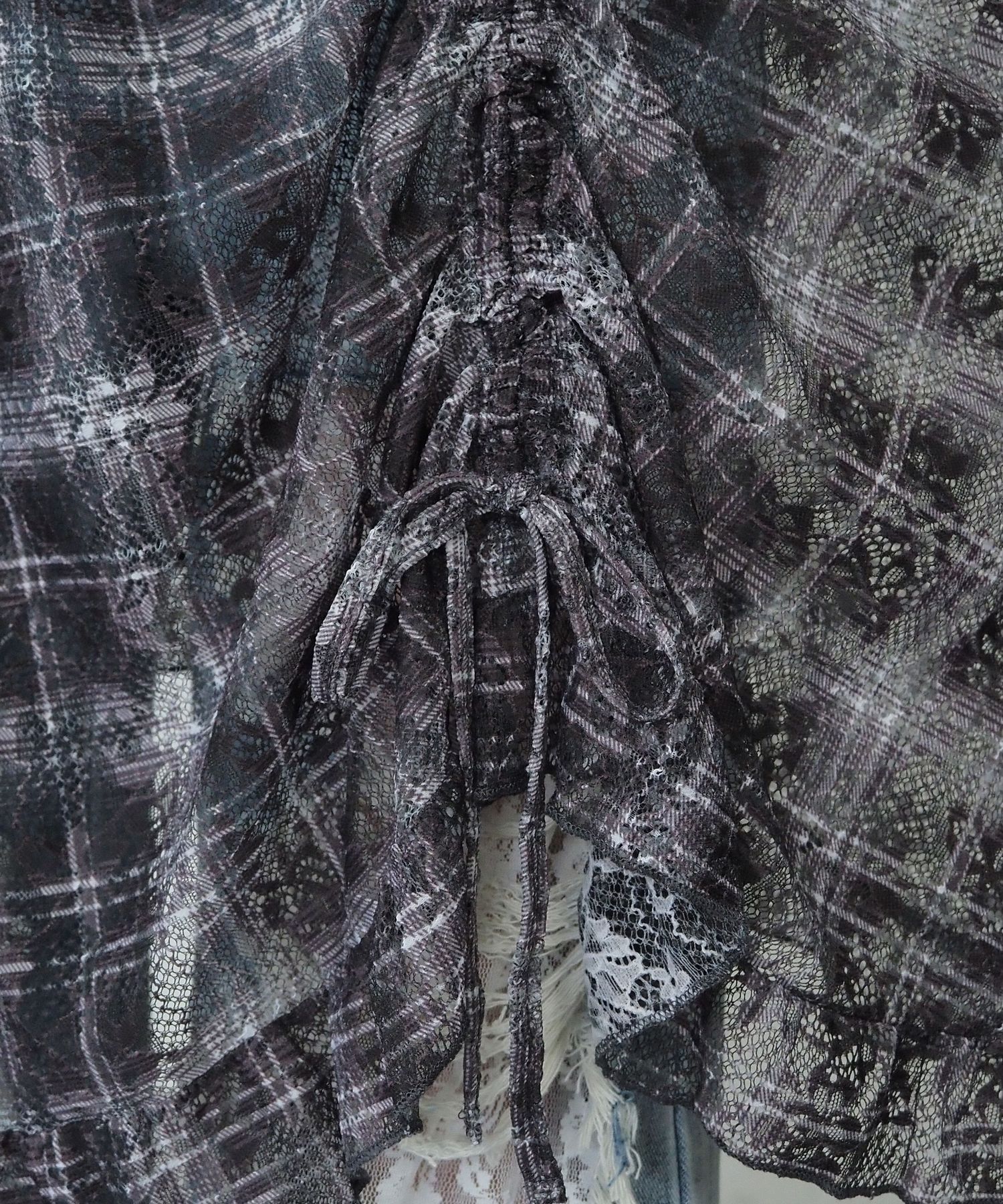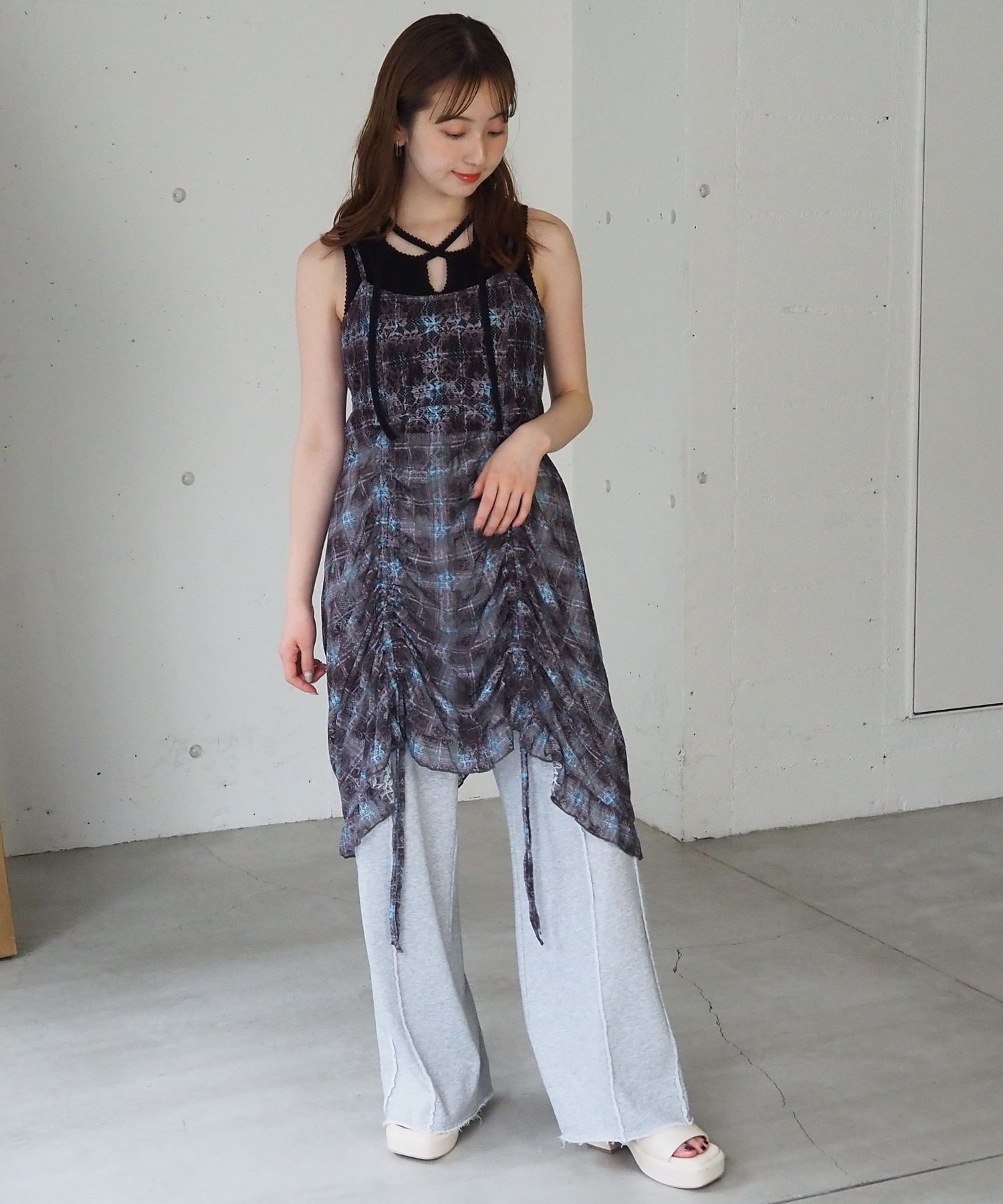 ・前後のドロストデザインがアクセントになった総レースのキャミチュニック。