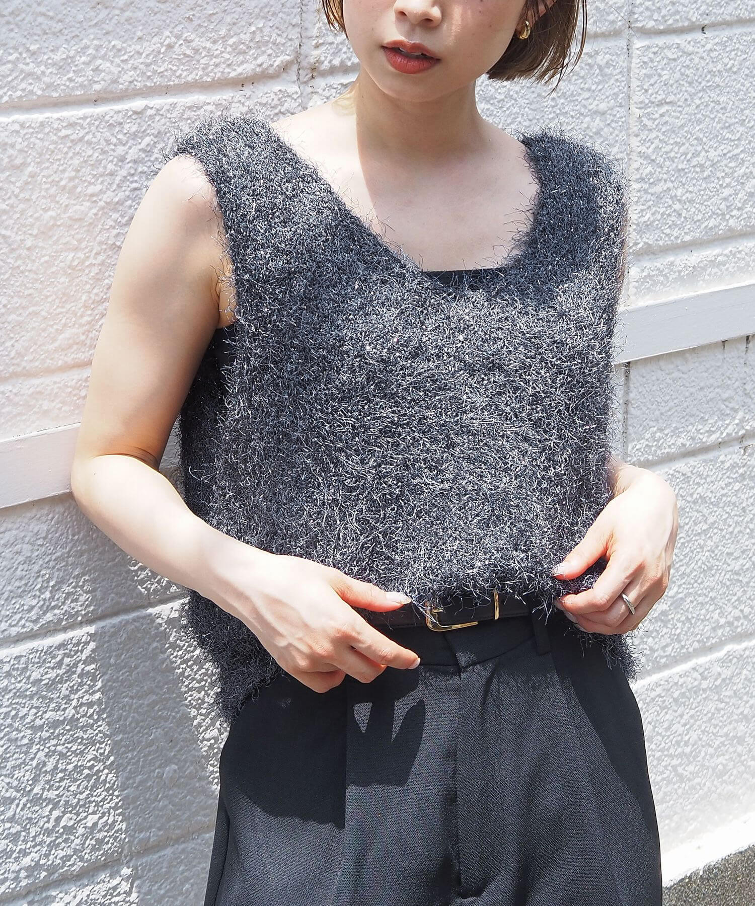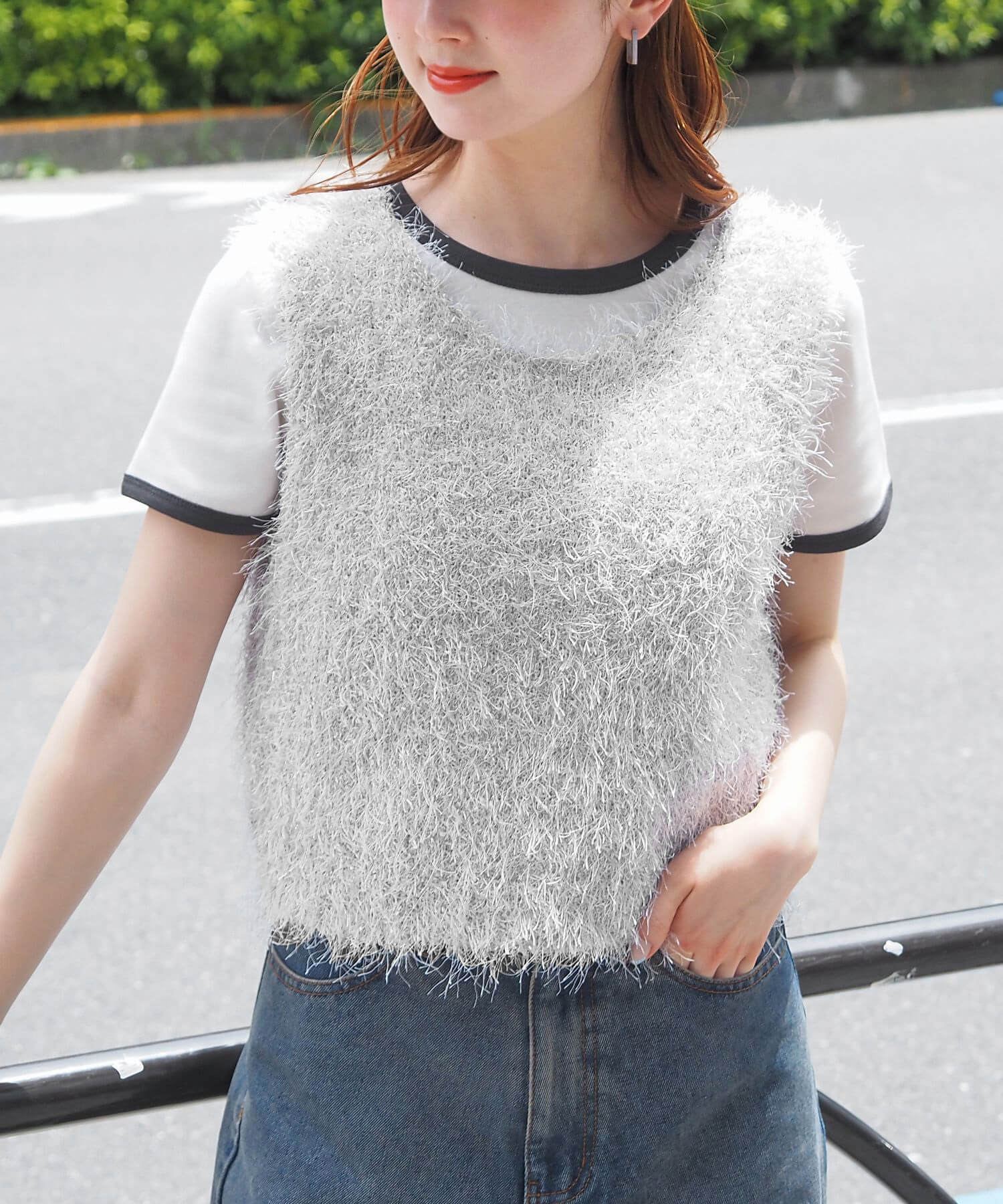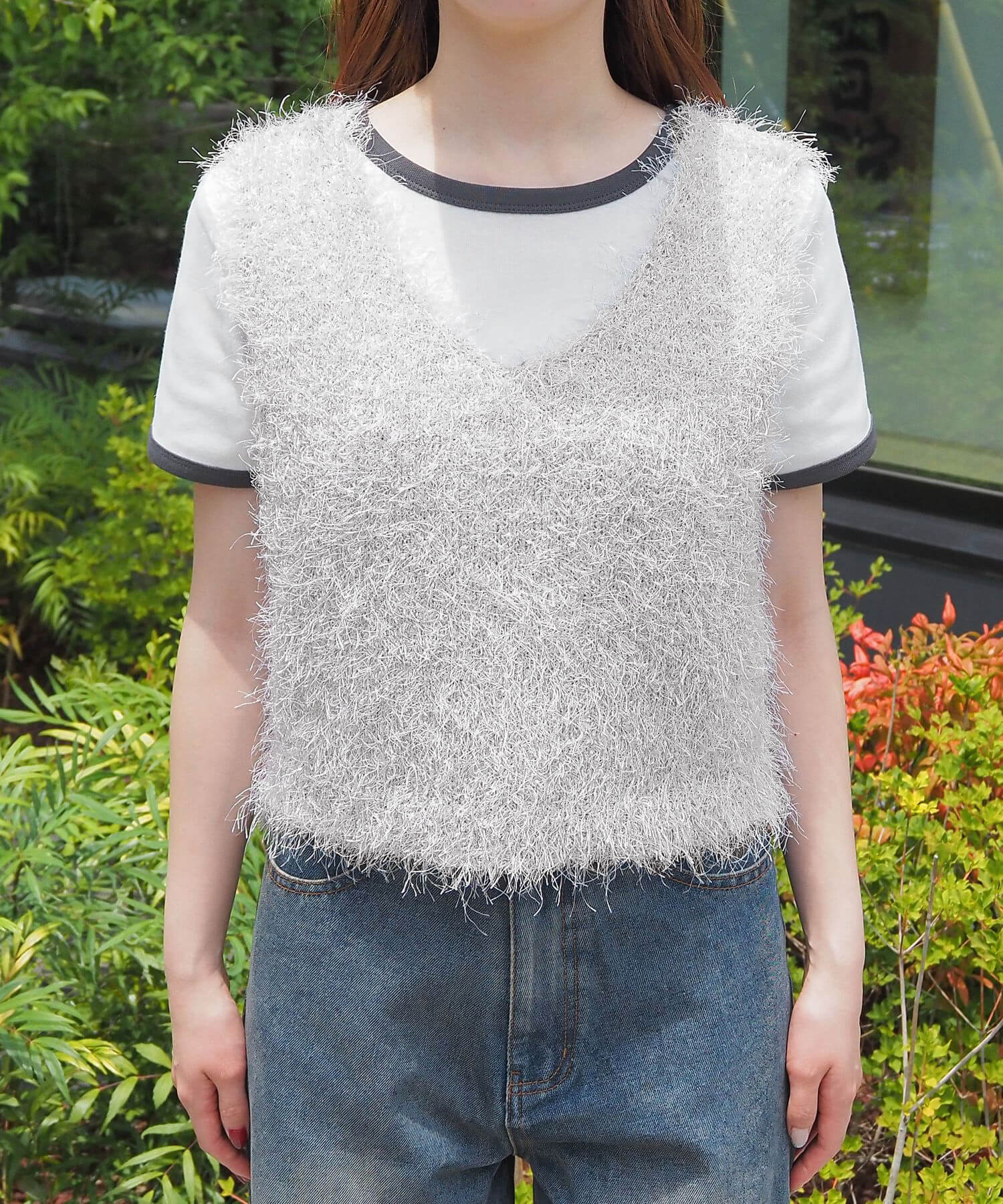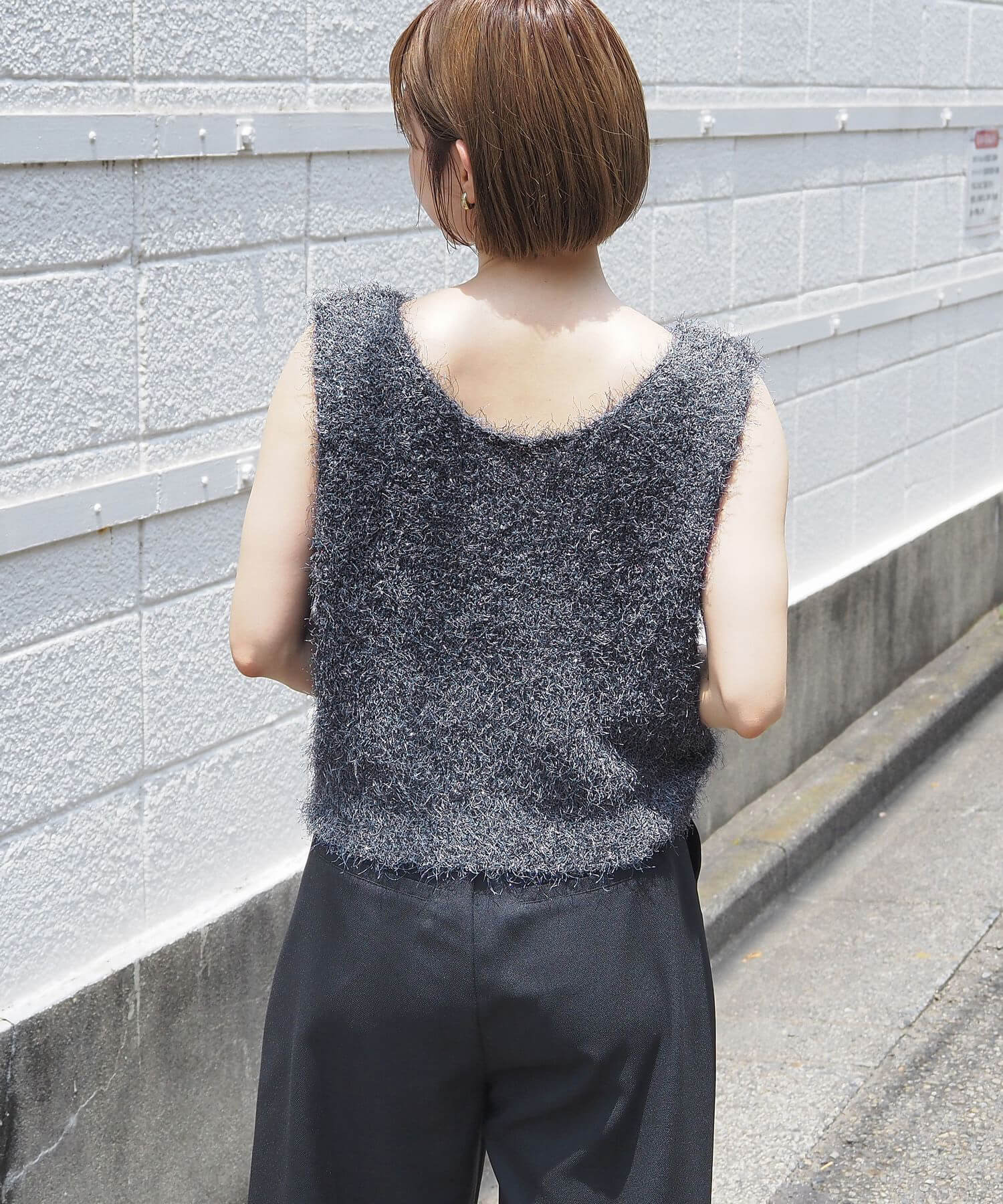 ・ふわふわとした毛足のある糸が目を惹くサマーニットです。