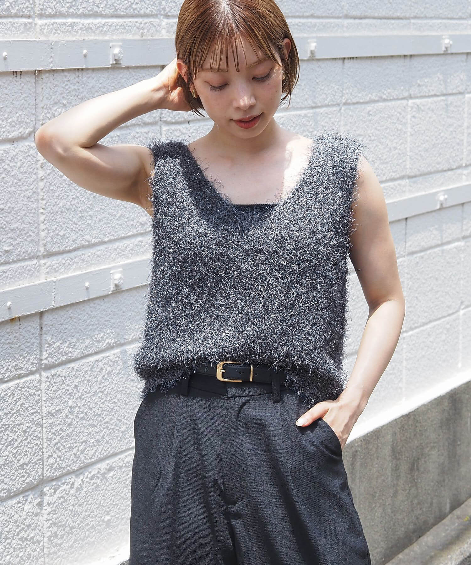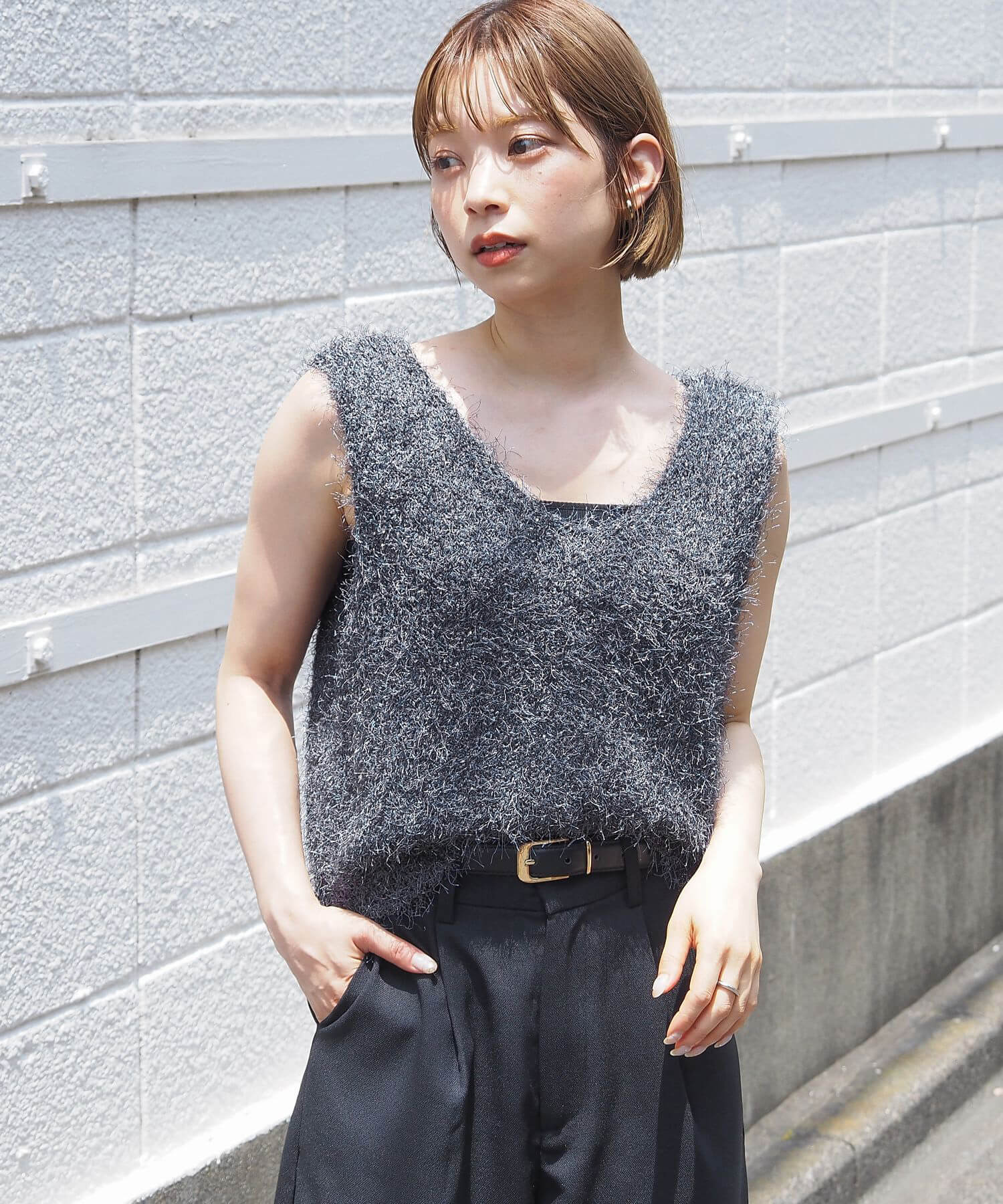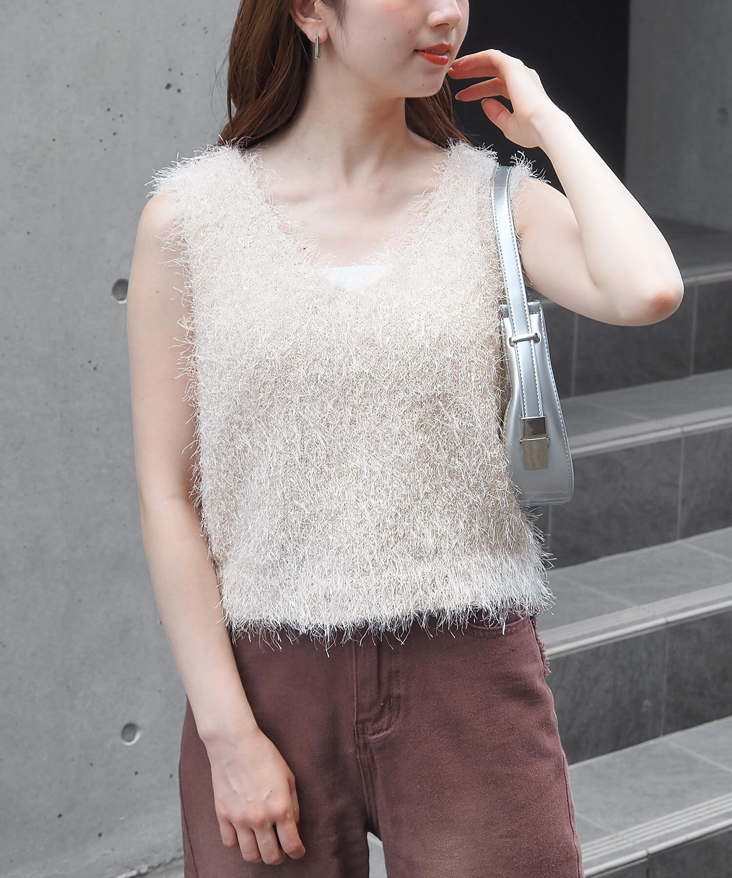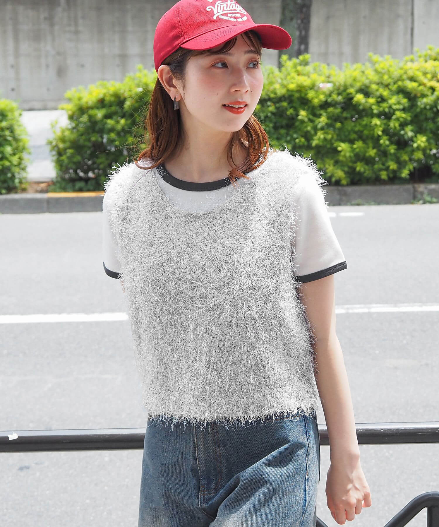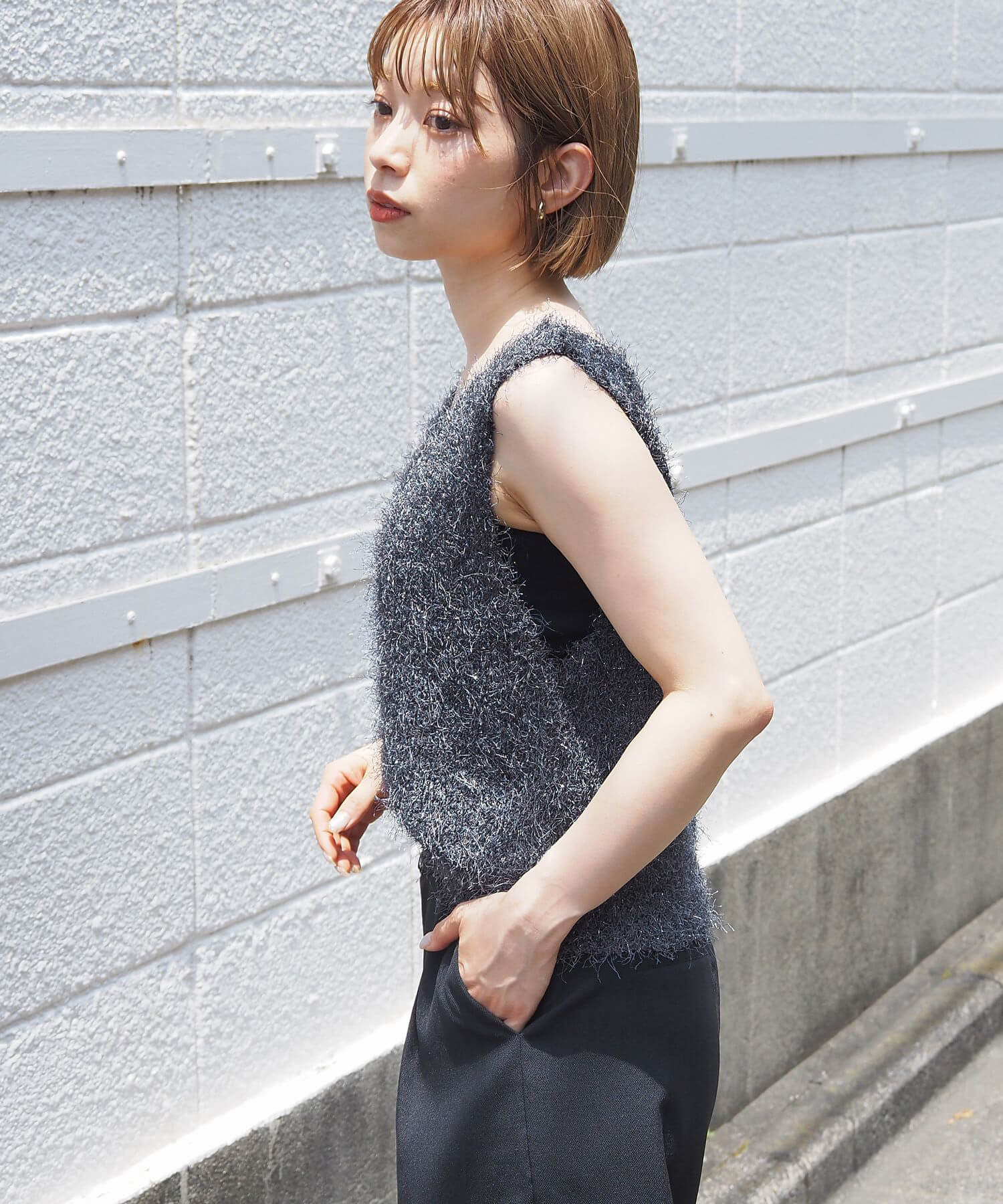 ・ふわふわとした毛足のある糸が目を惹くサマーニットです。