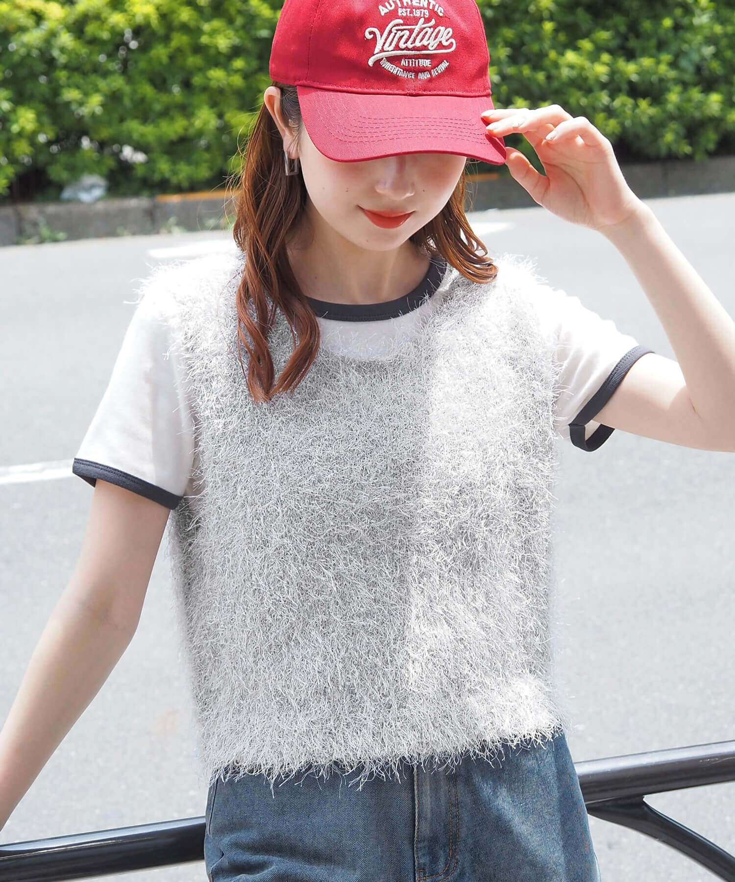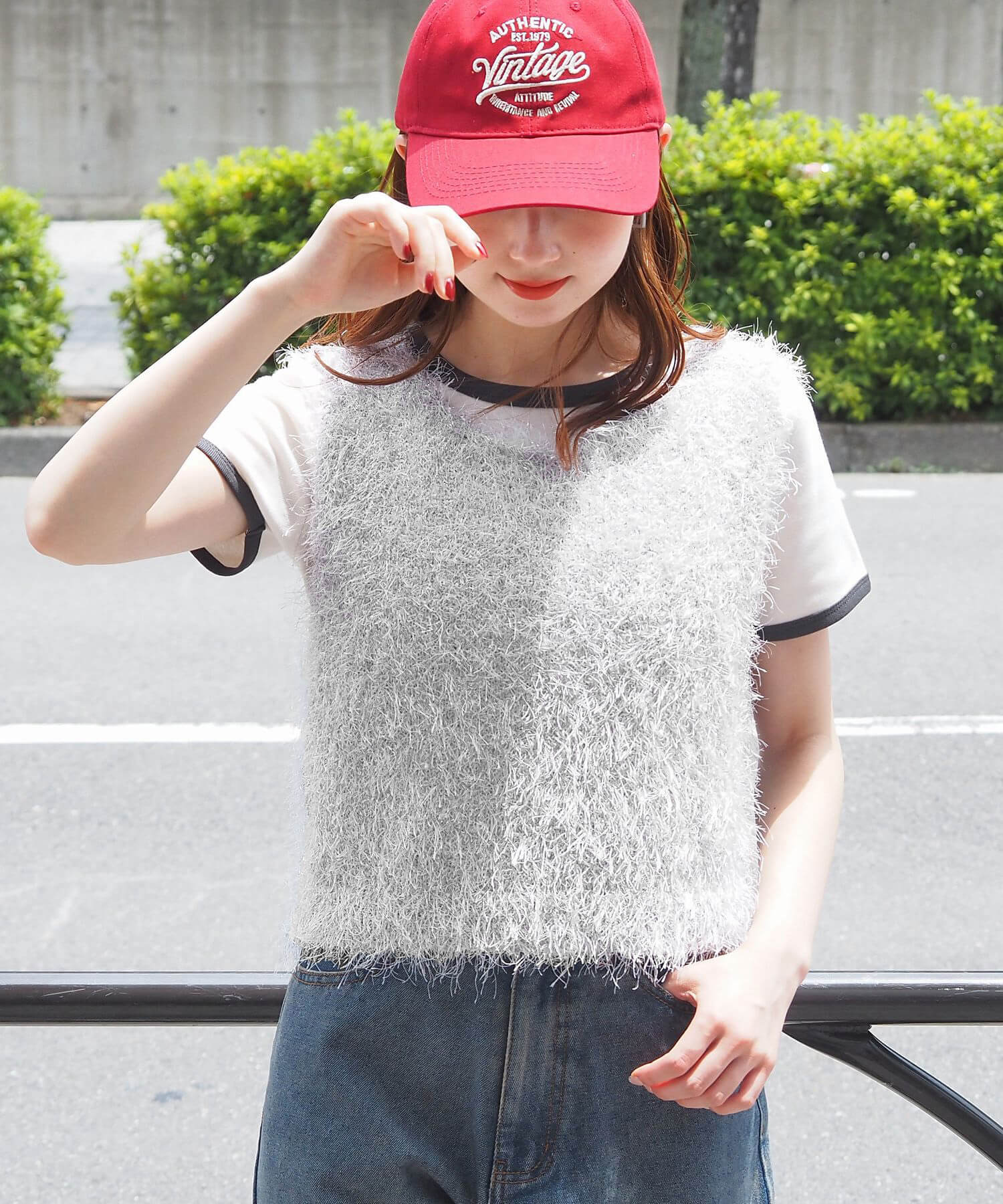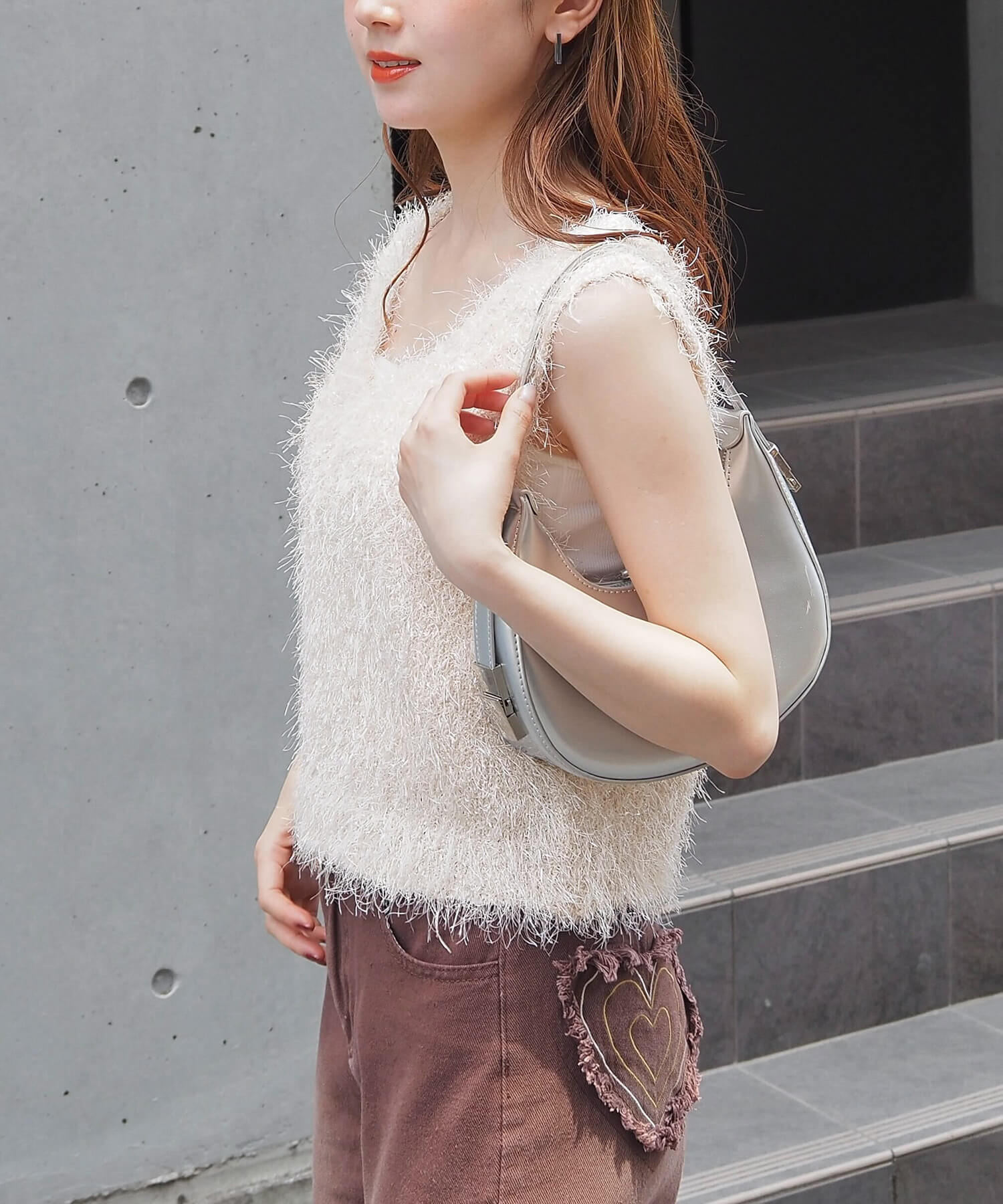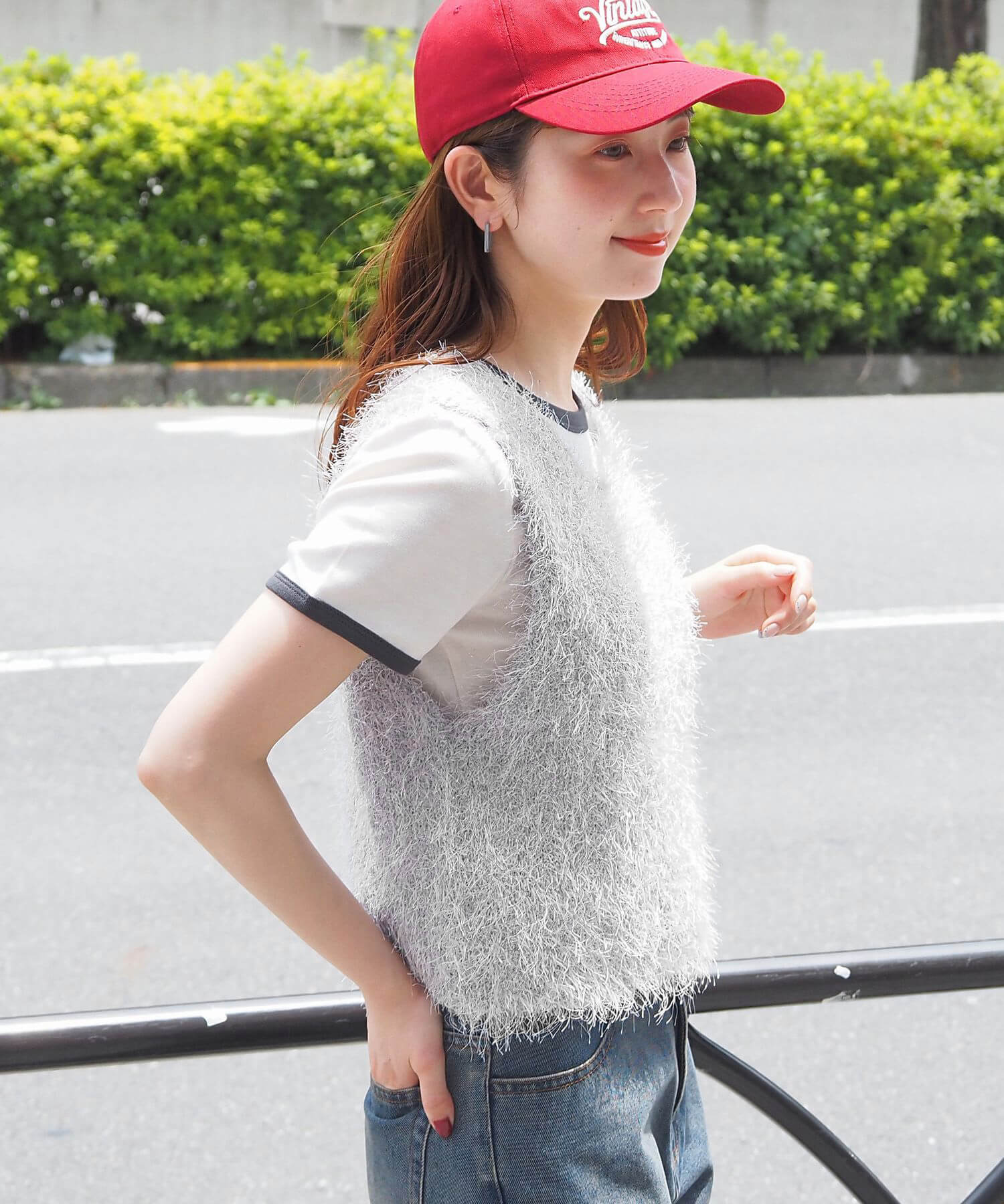 ・ふわふわとした毛足のある糸が目を惹くサマーニットです。