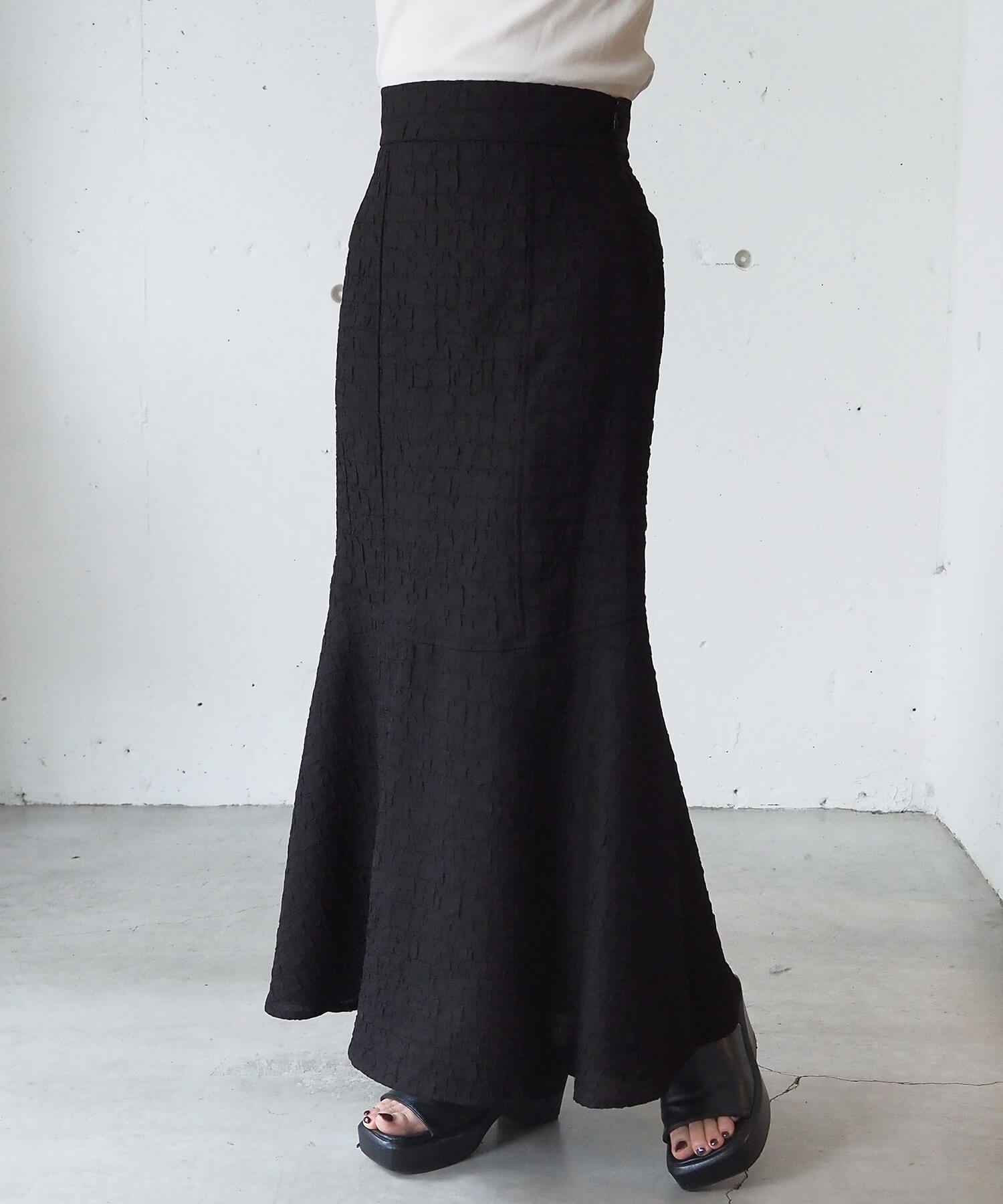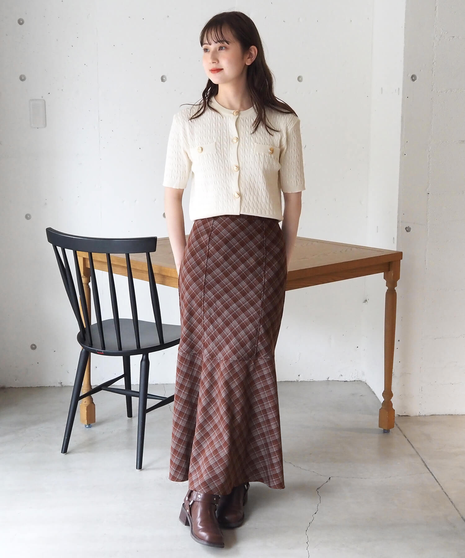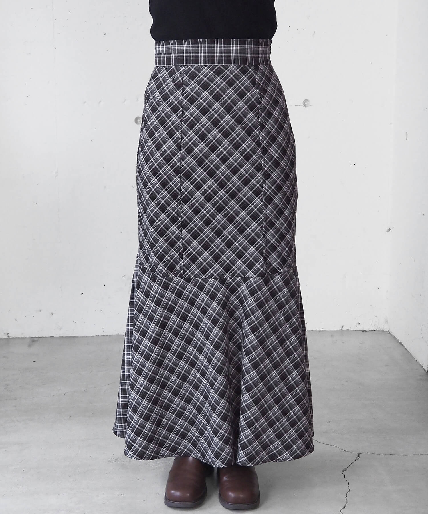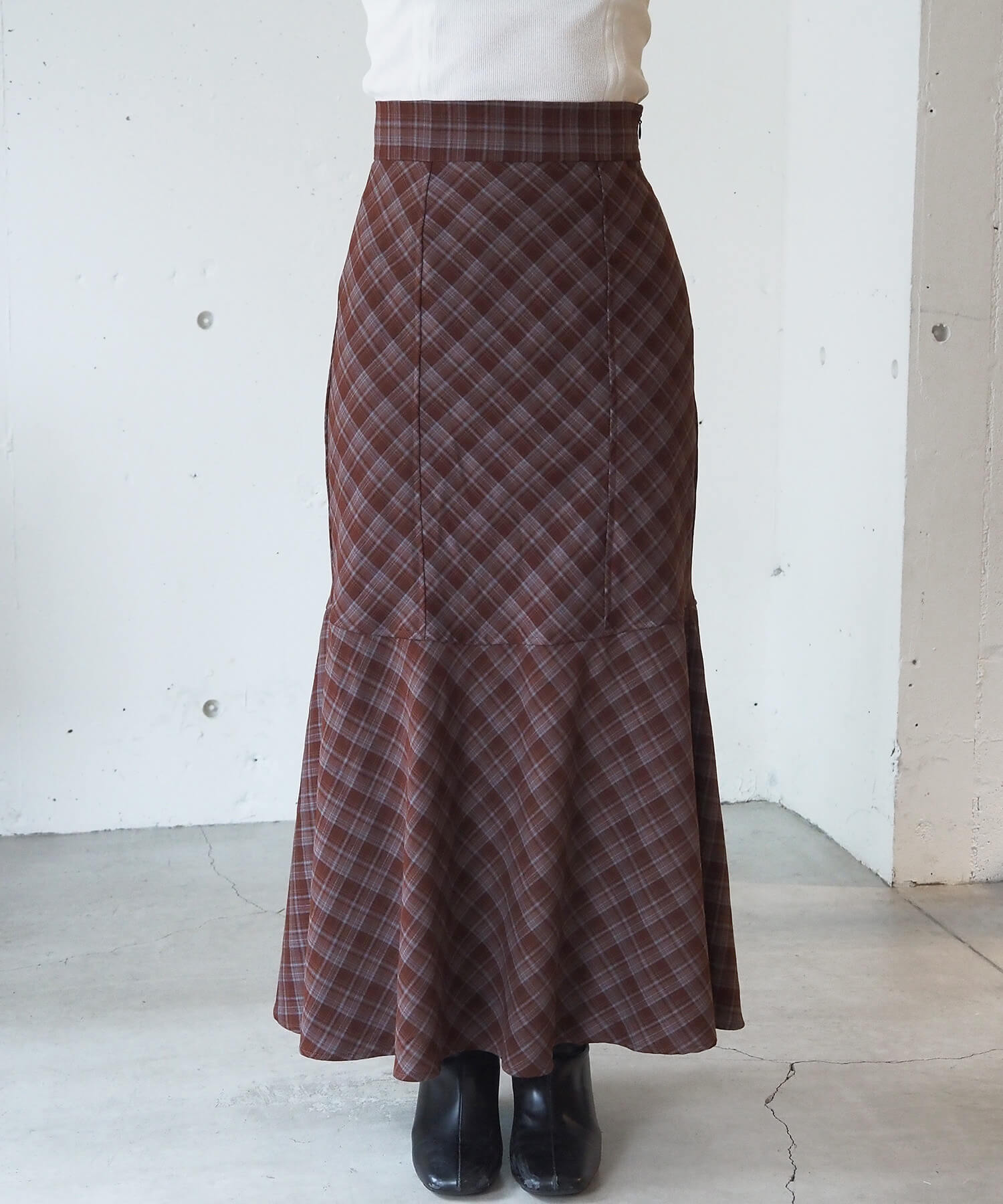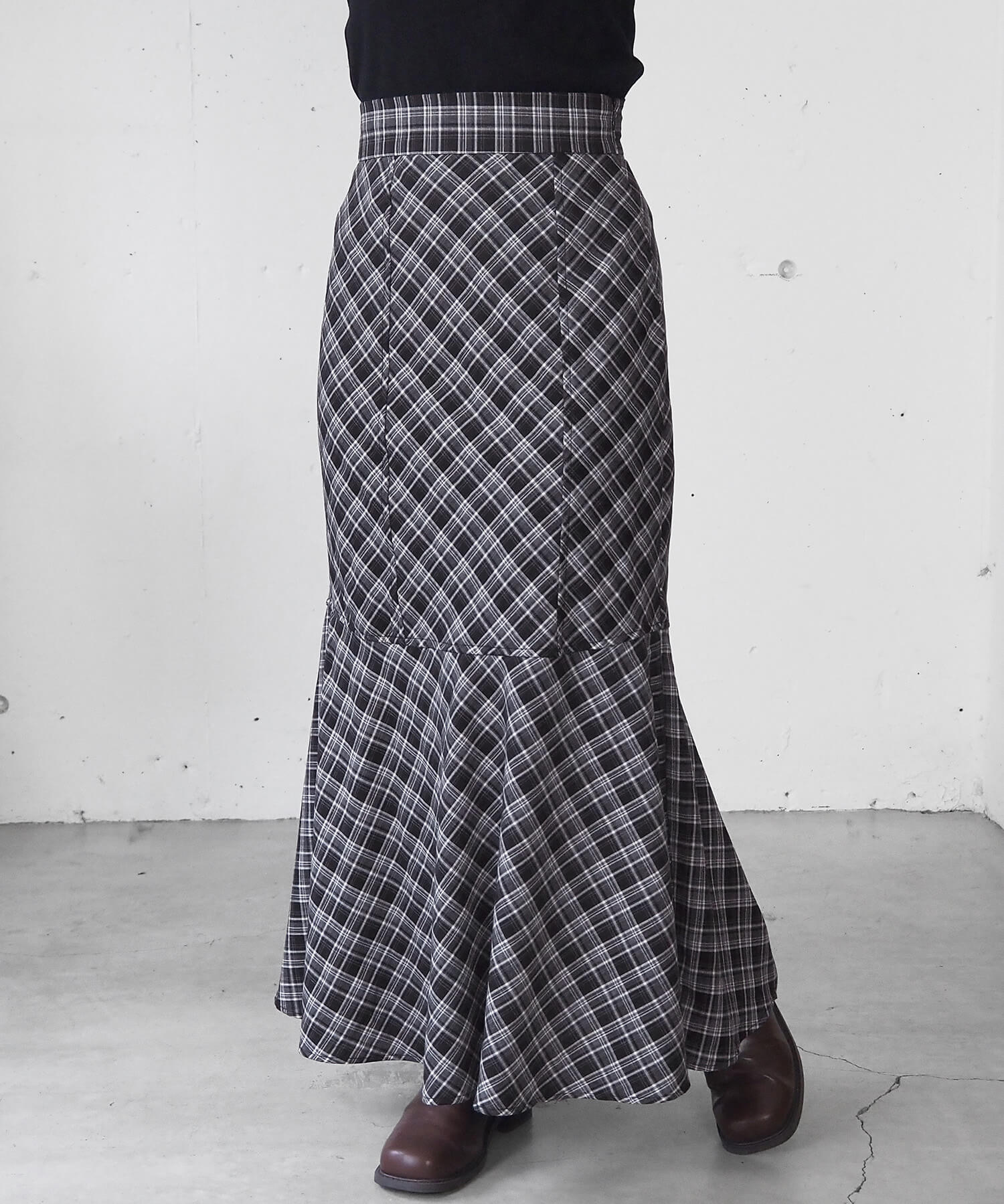 ・スカート女性らしいマーメイドシルエット。膝下フレアで足さばきがよく、切り替えデザインで着痩せ効果もうれしいアイテムです♪