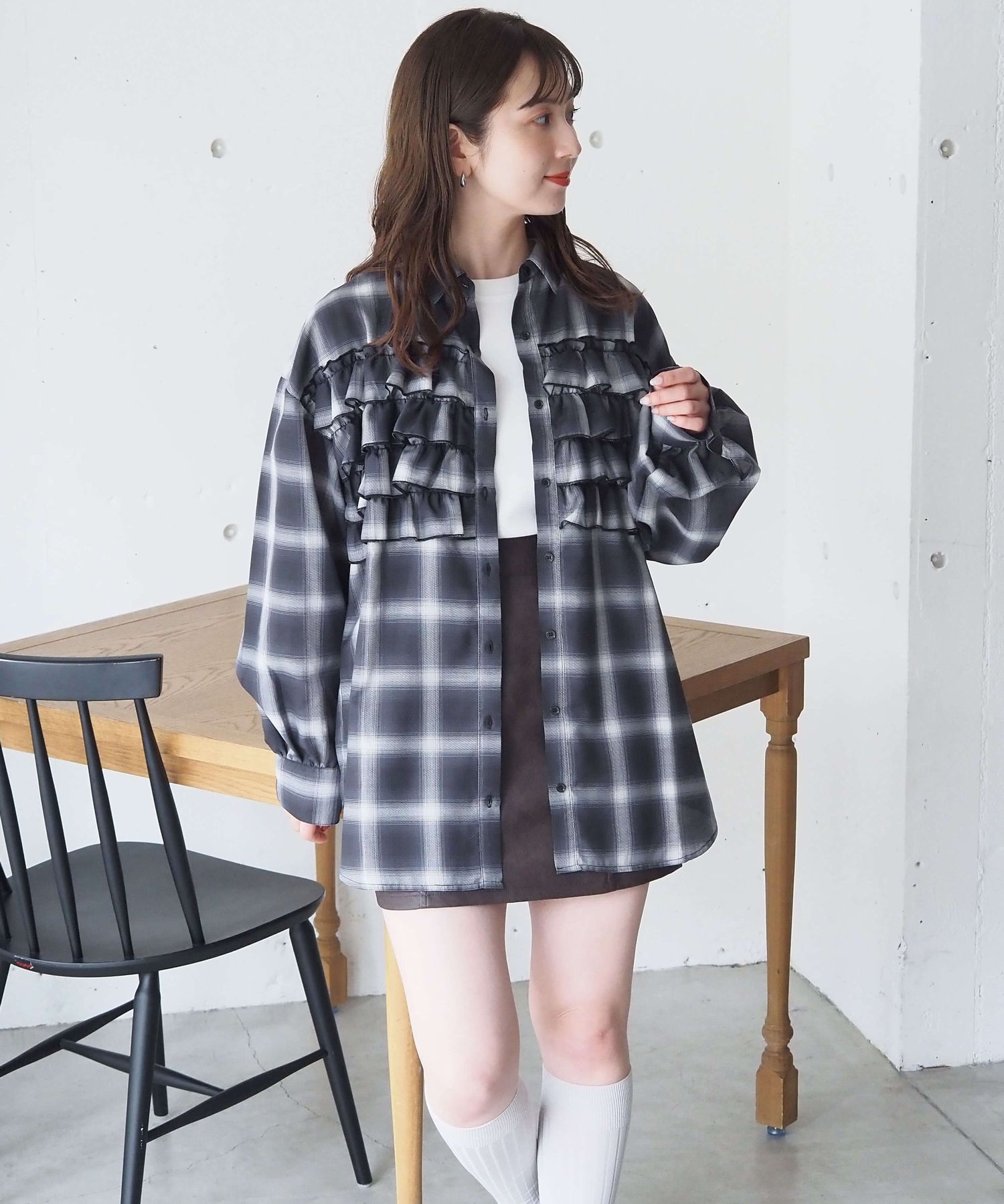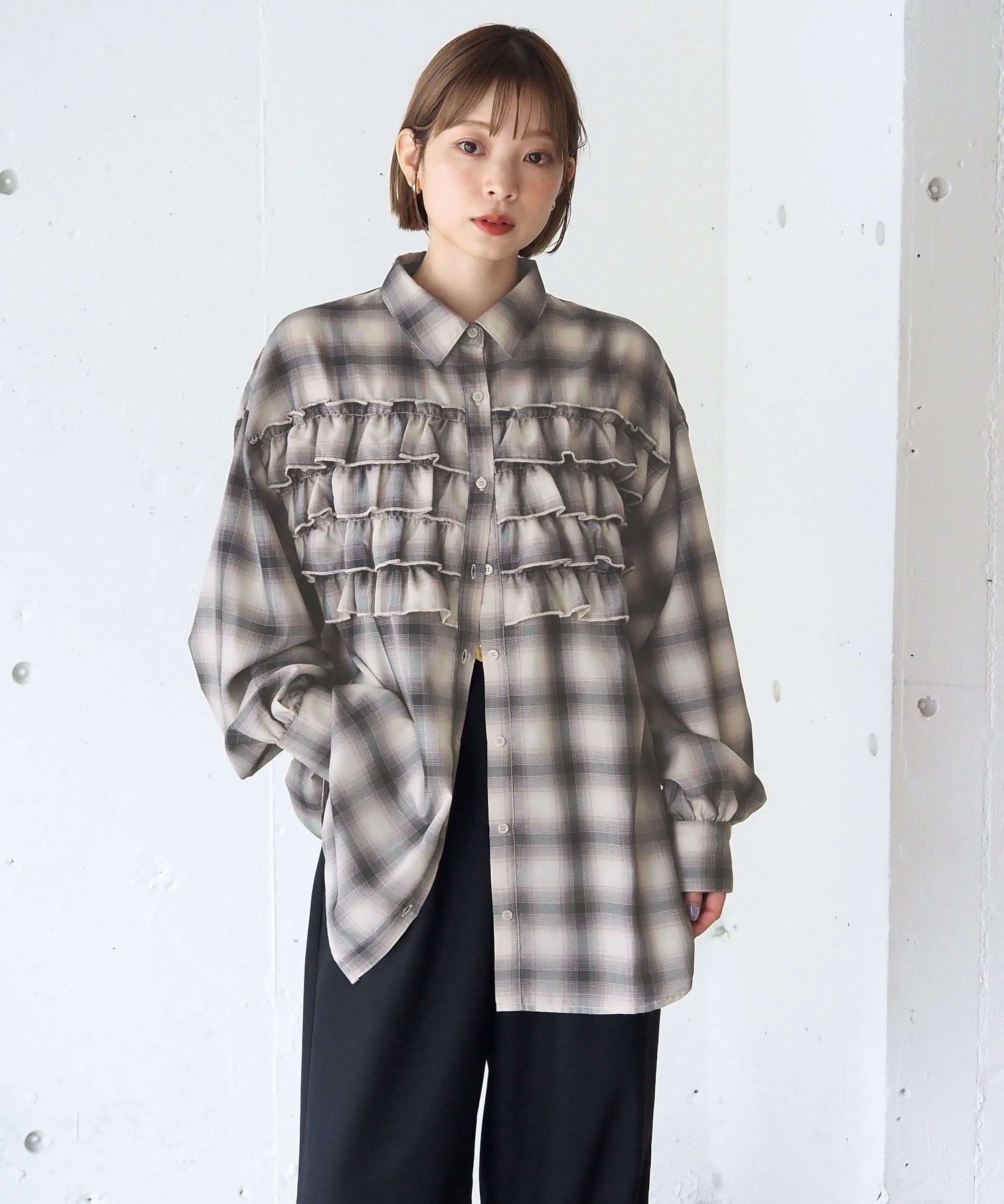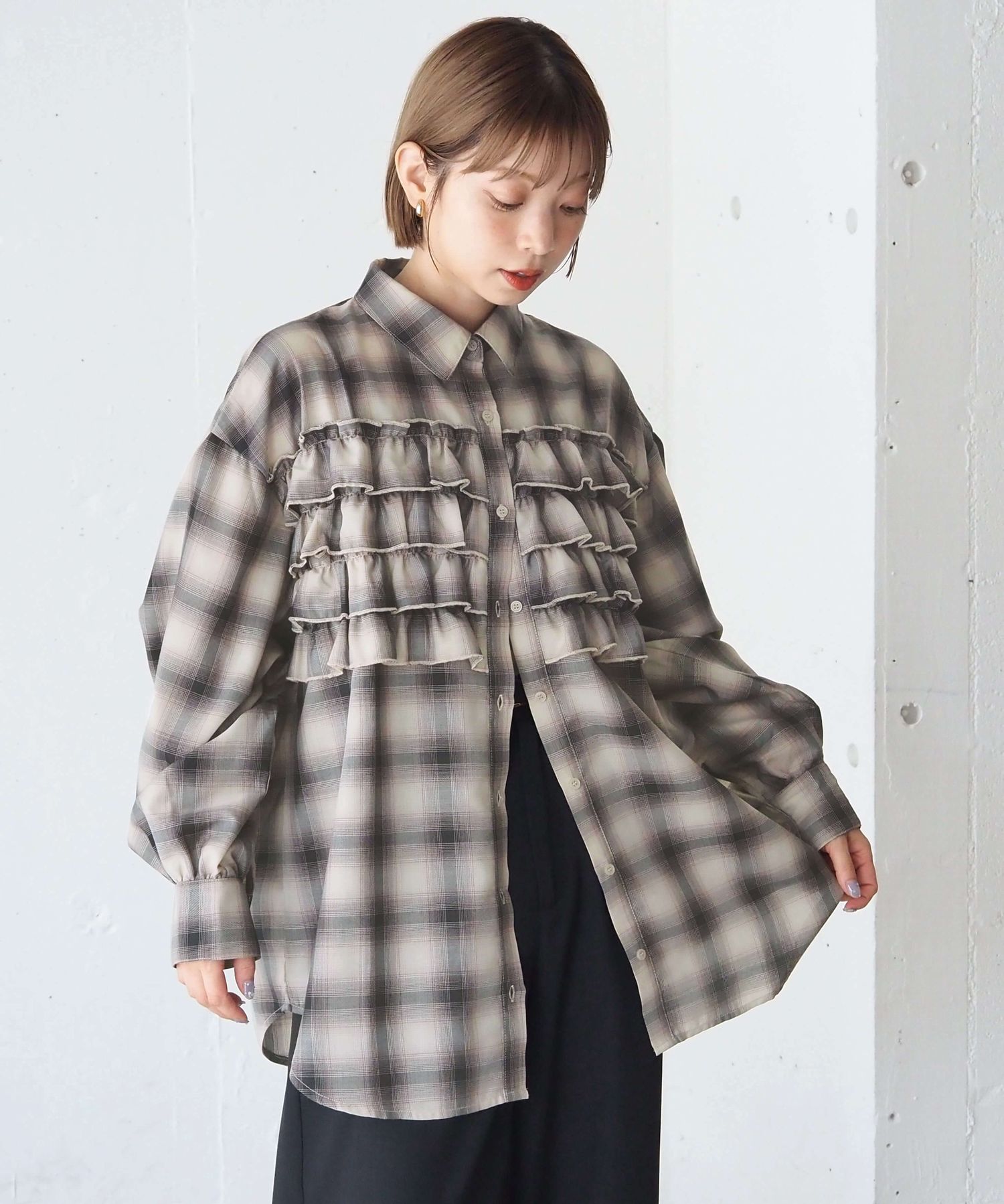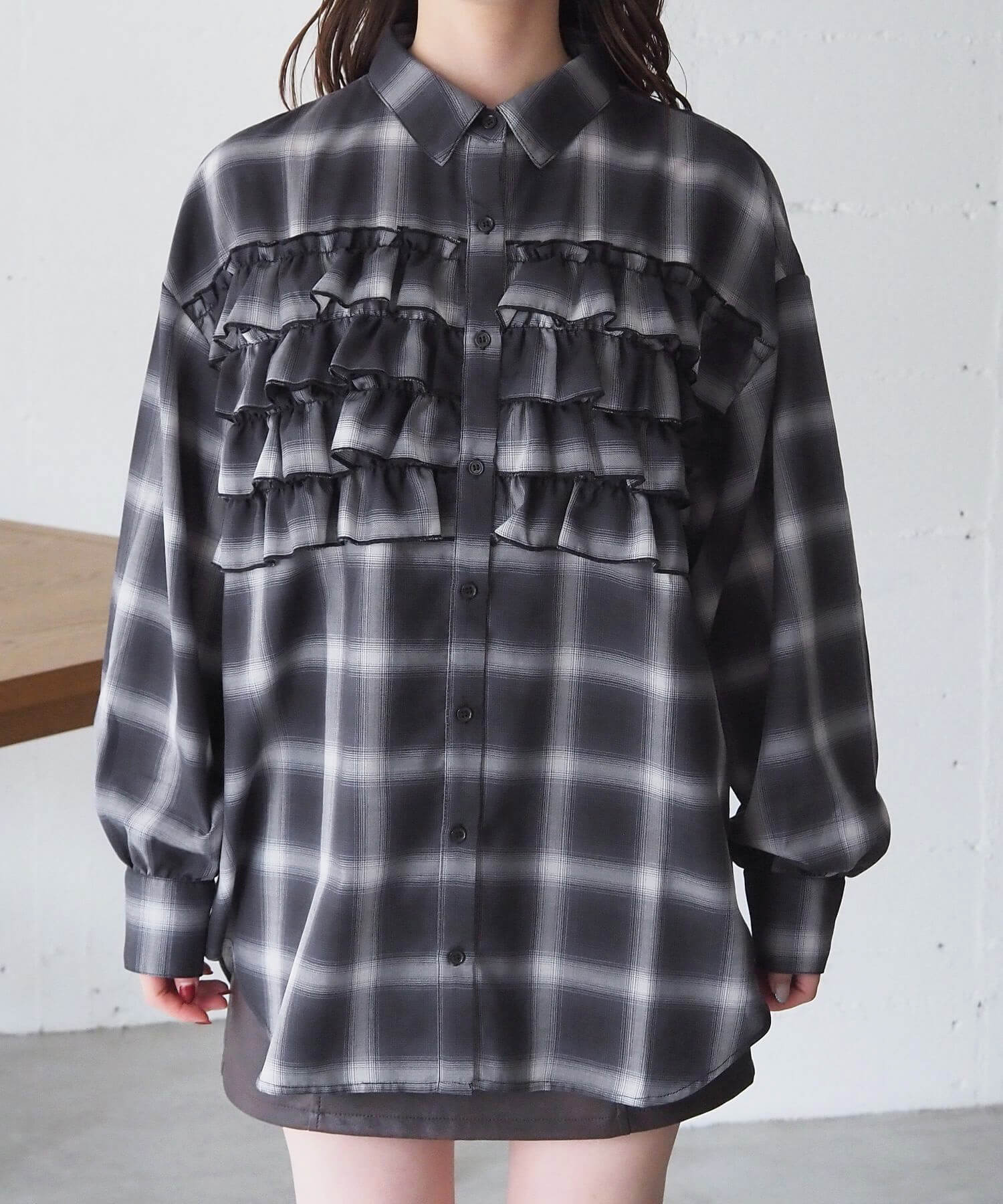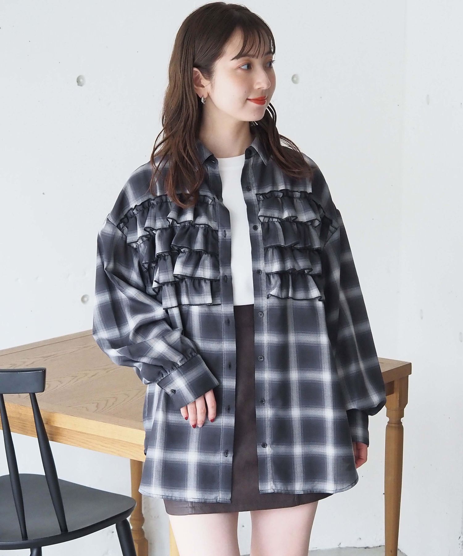 ・たっぷりのフリルが目を惹くBIGシャツです。