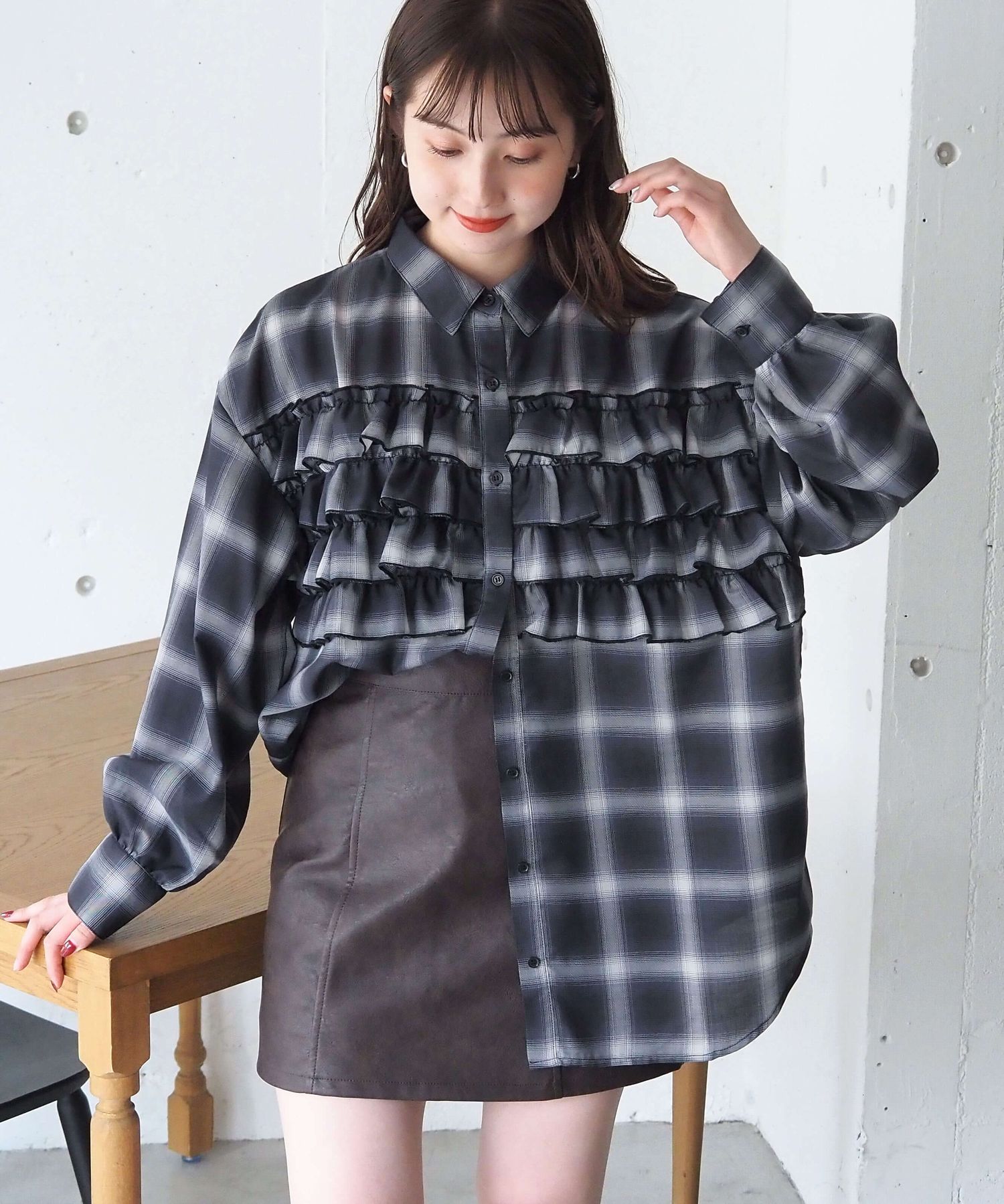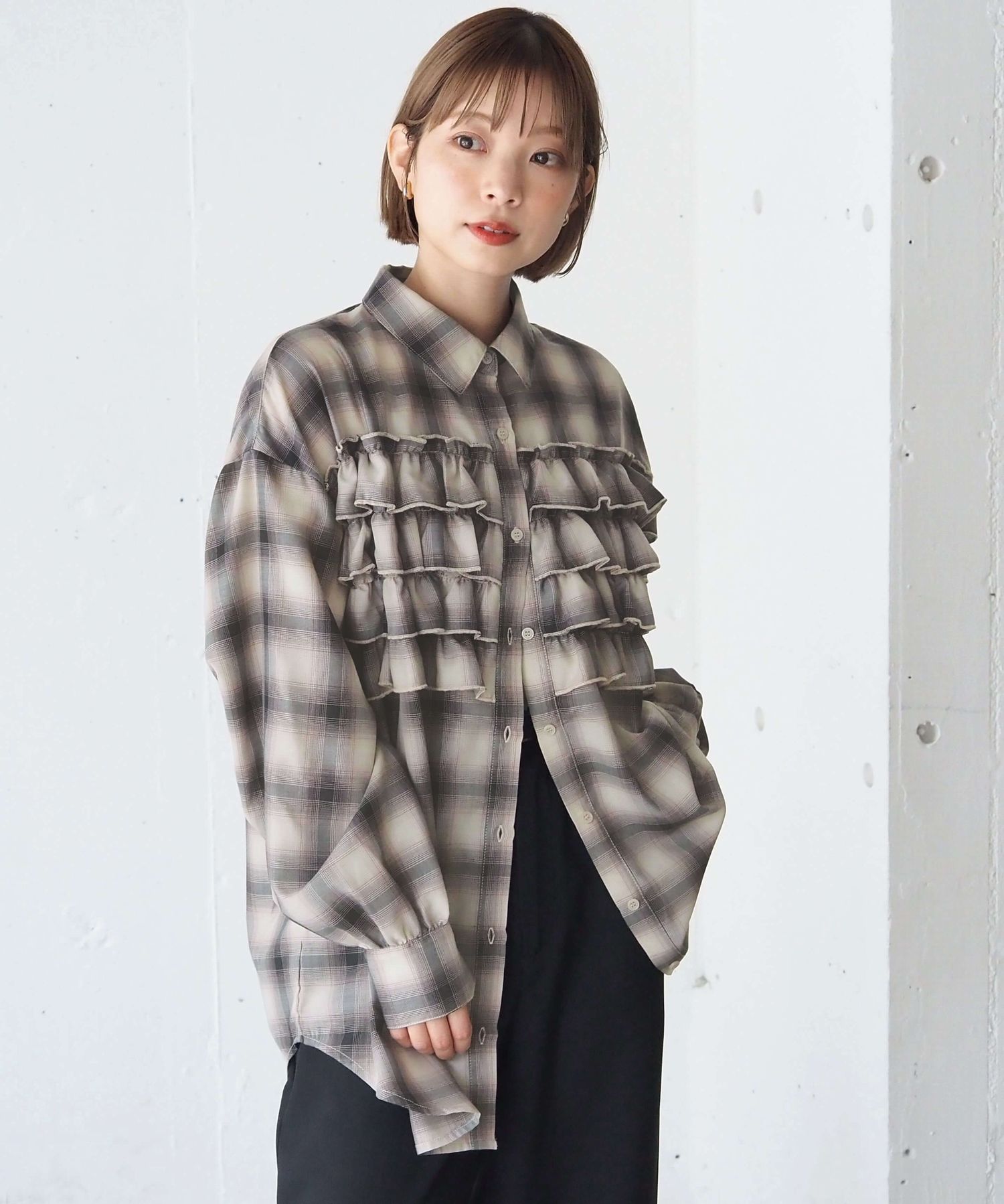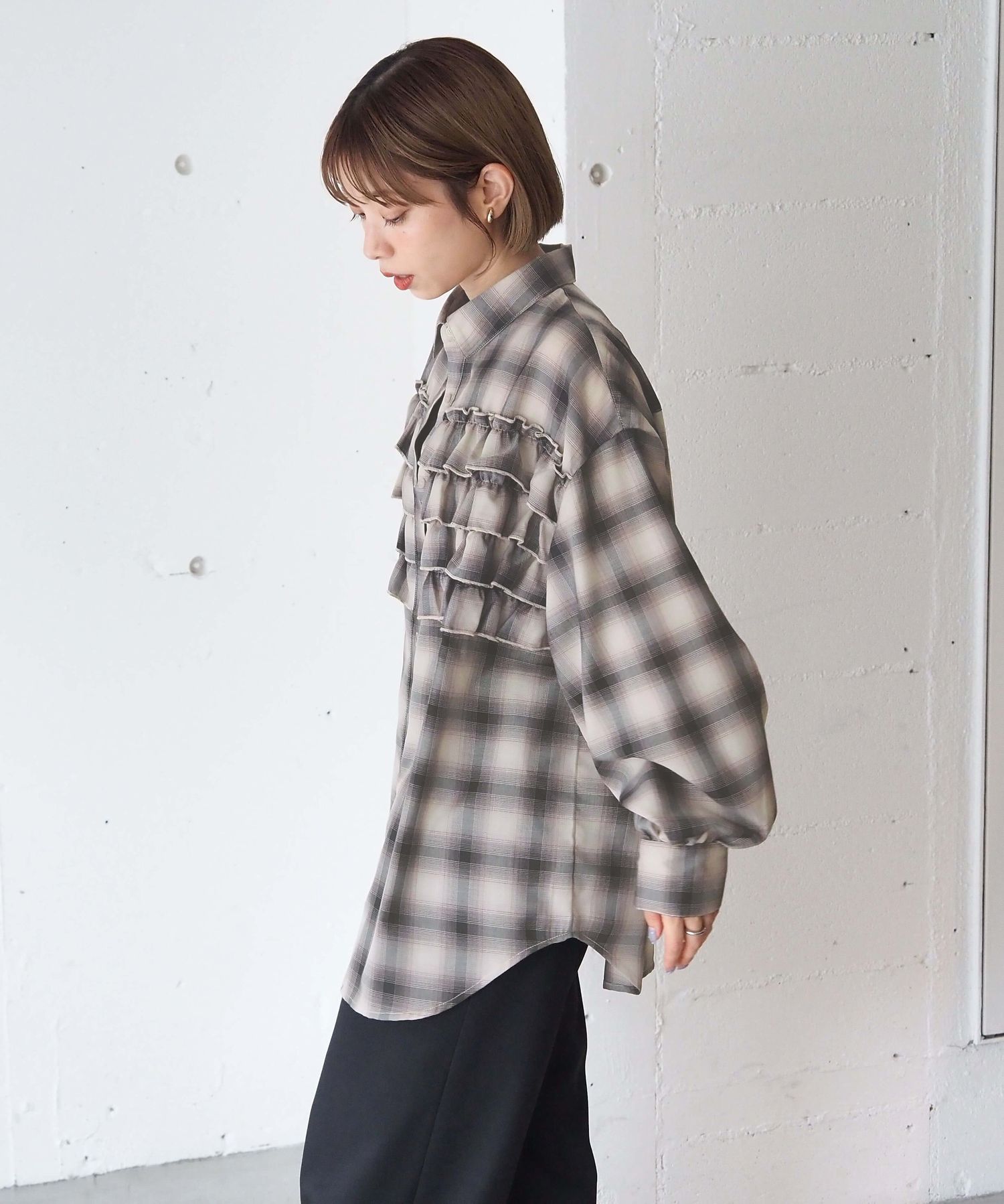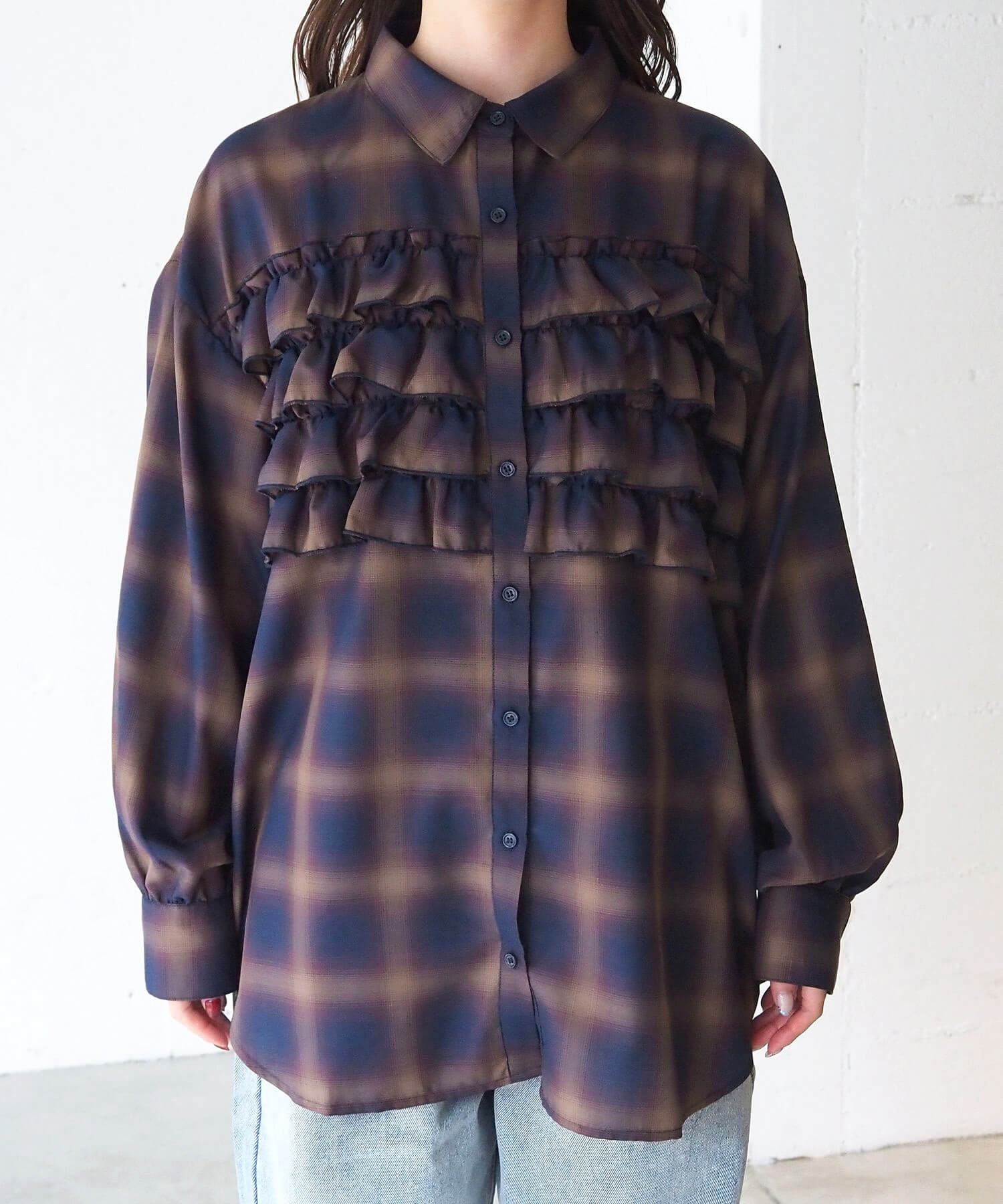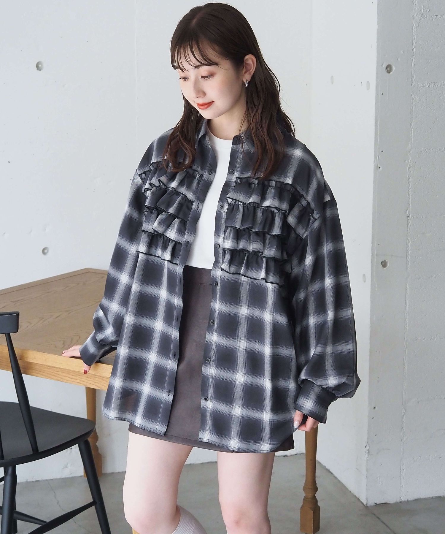 ・たっぷりのフリルが目を惹くBIGシャツです。