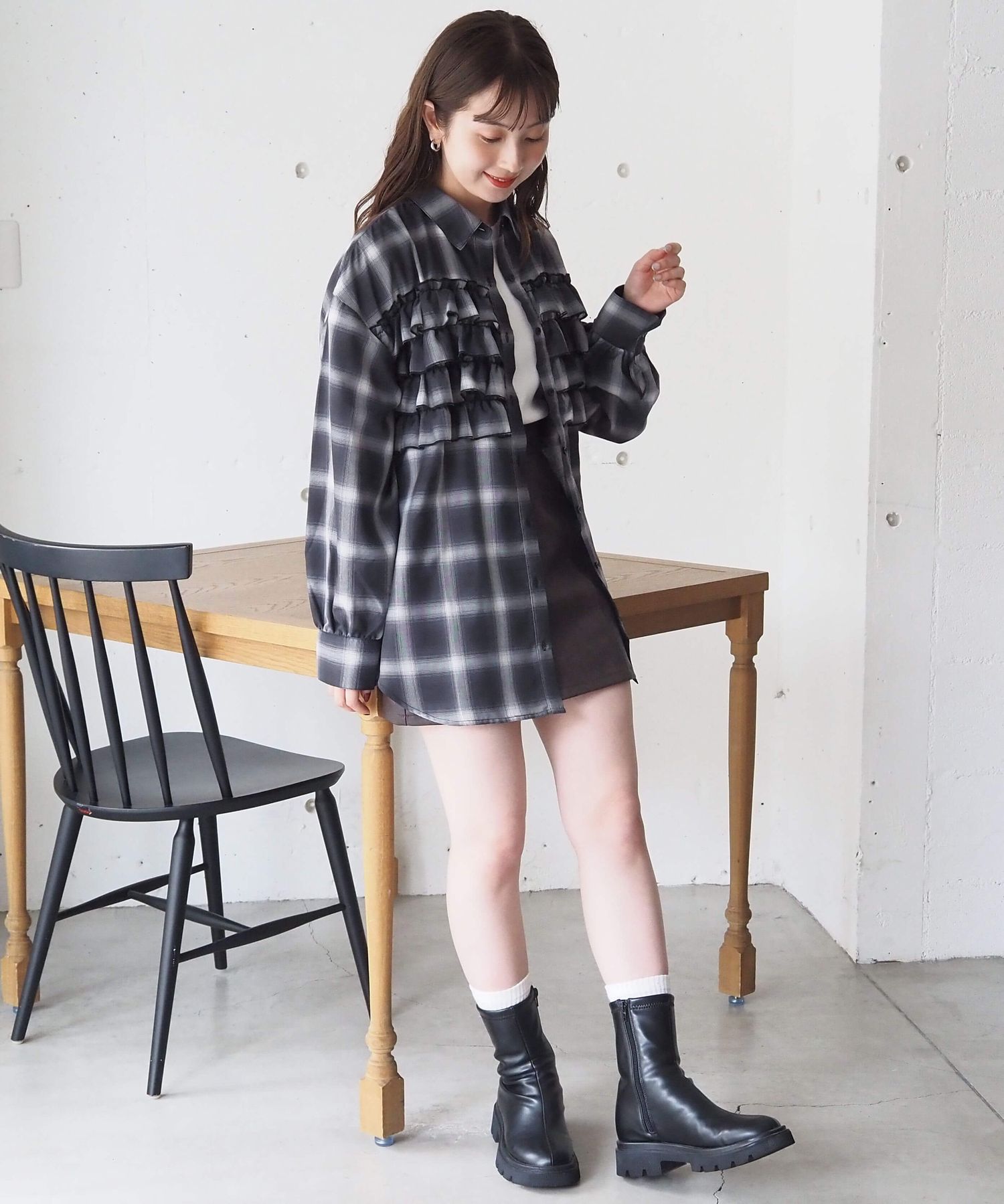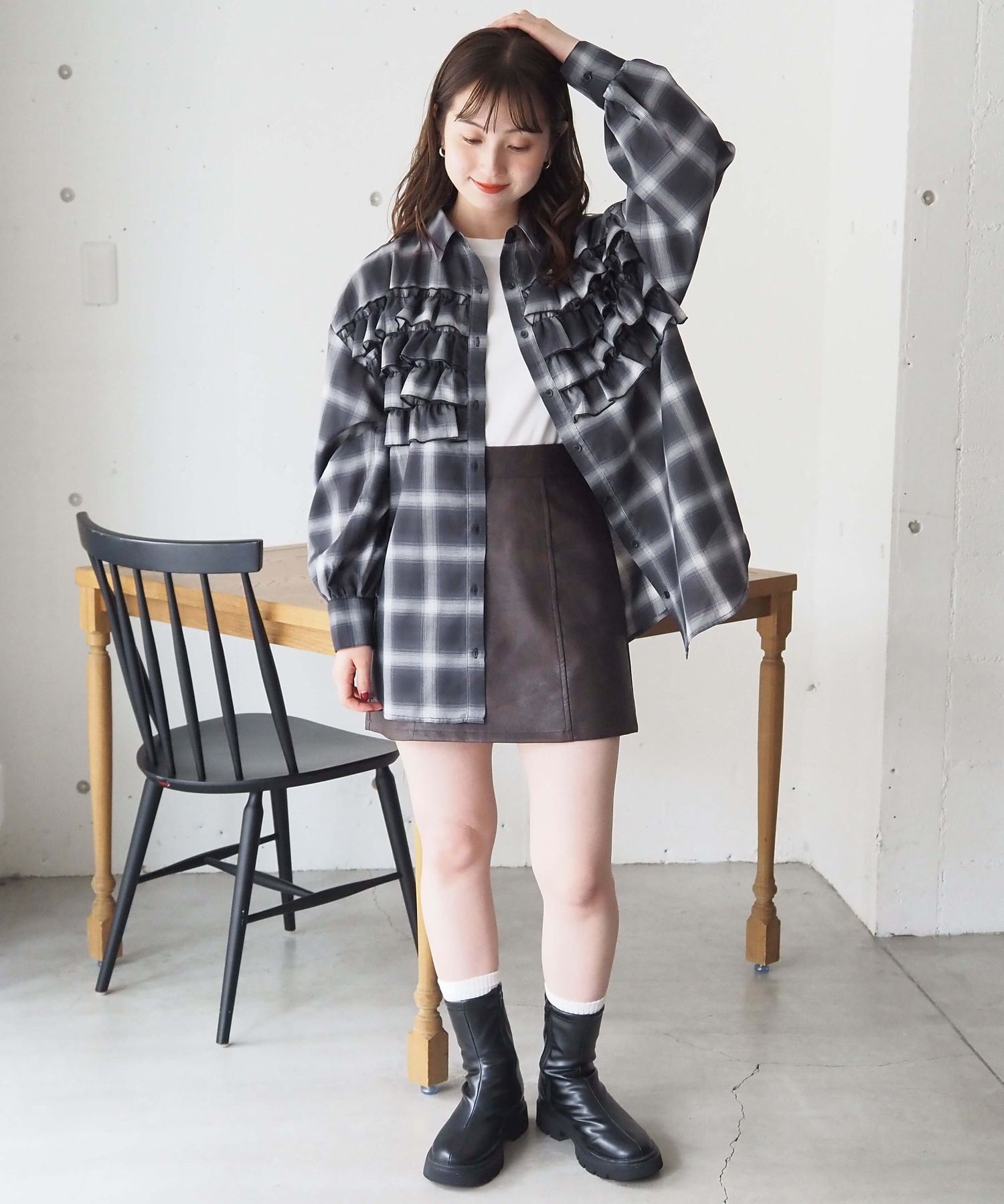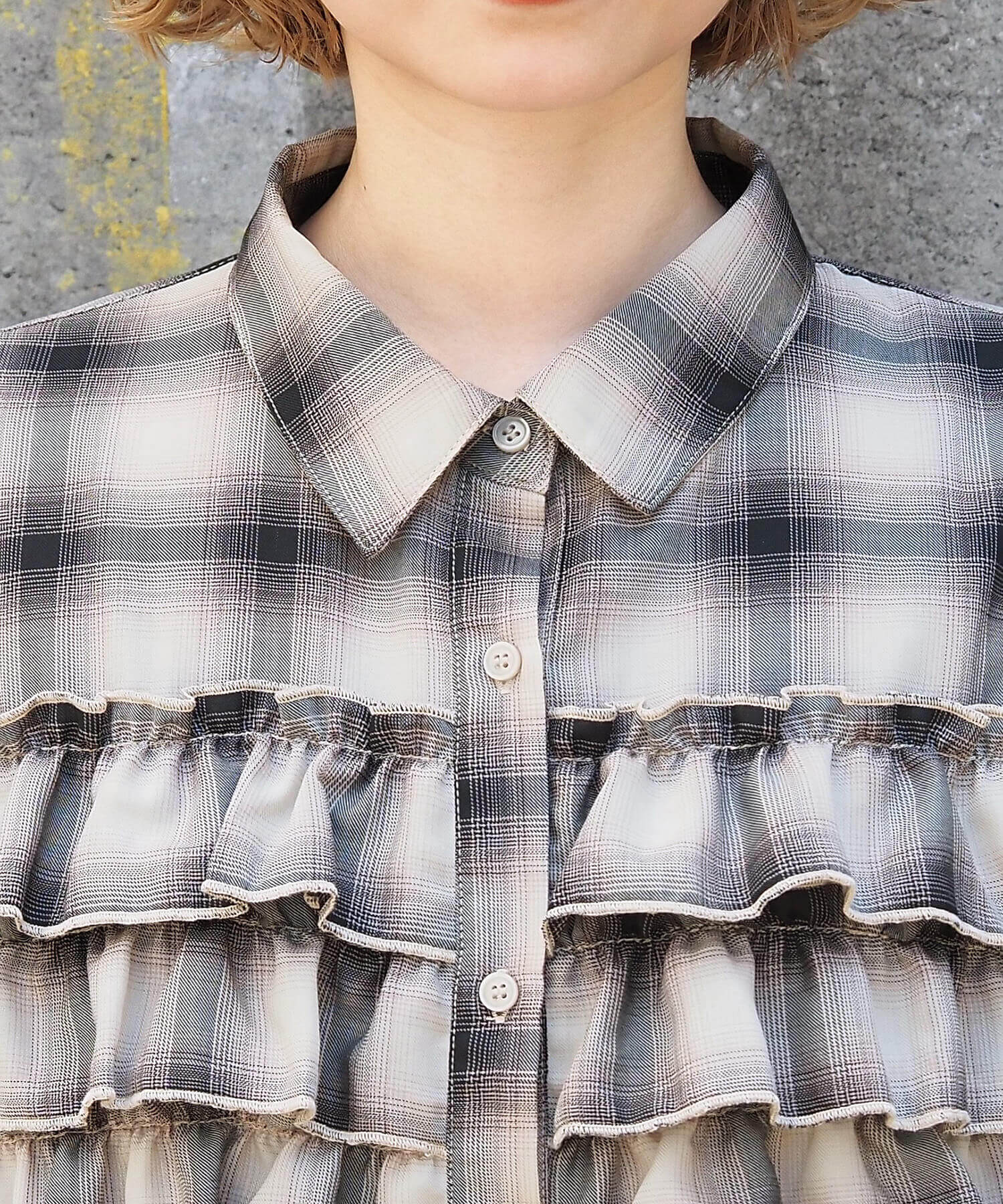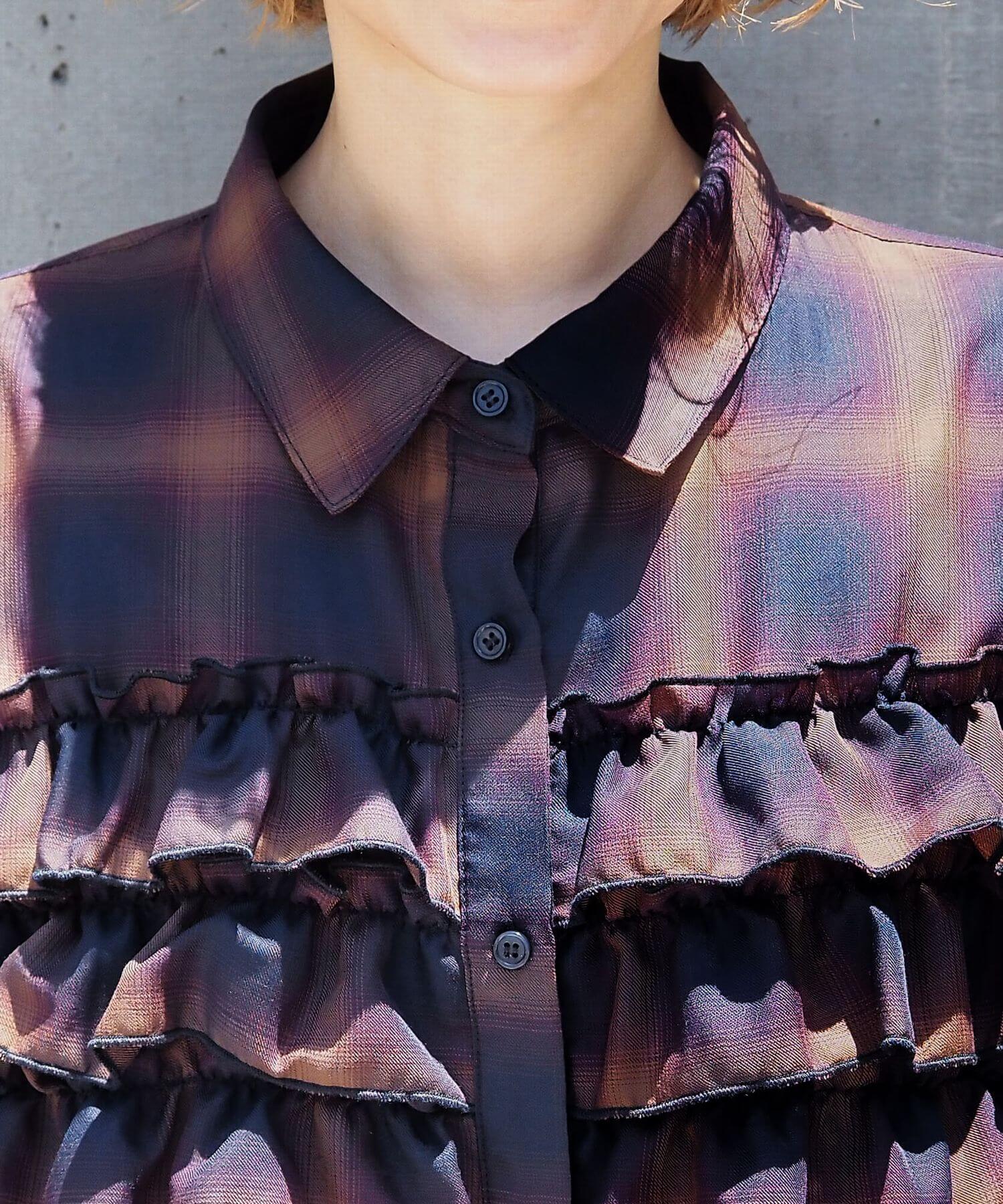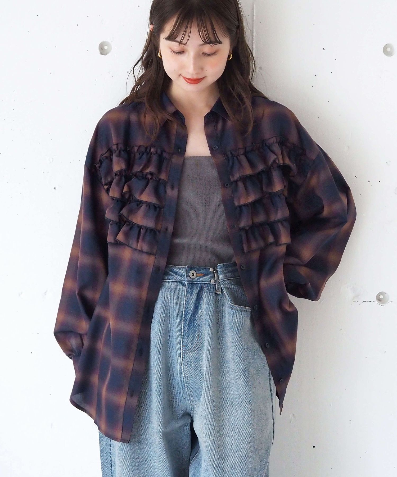 ・たっぷりのフリルが目を惹くBIGシャツです。