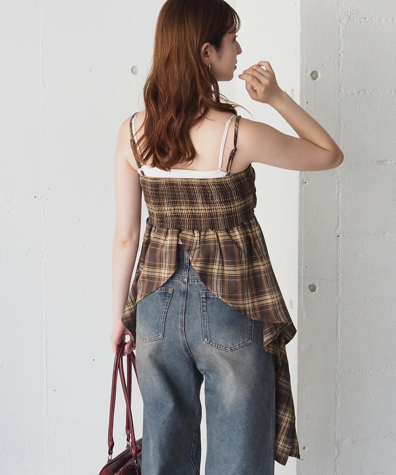 チェックアシメフリルキャミ
