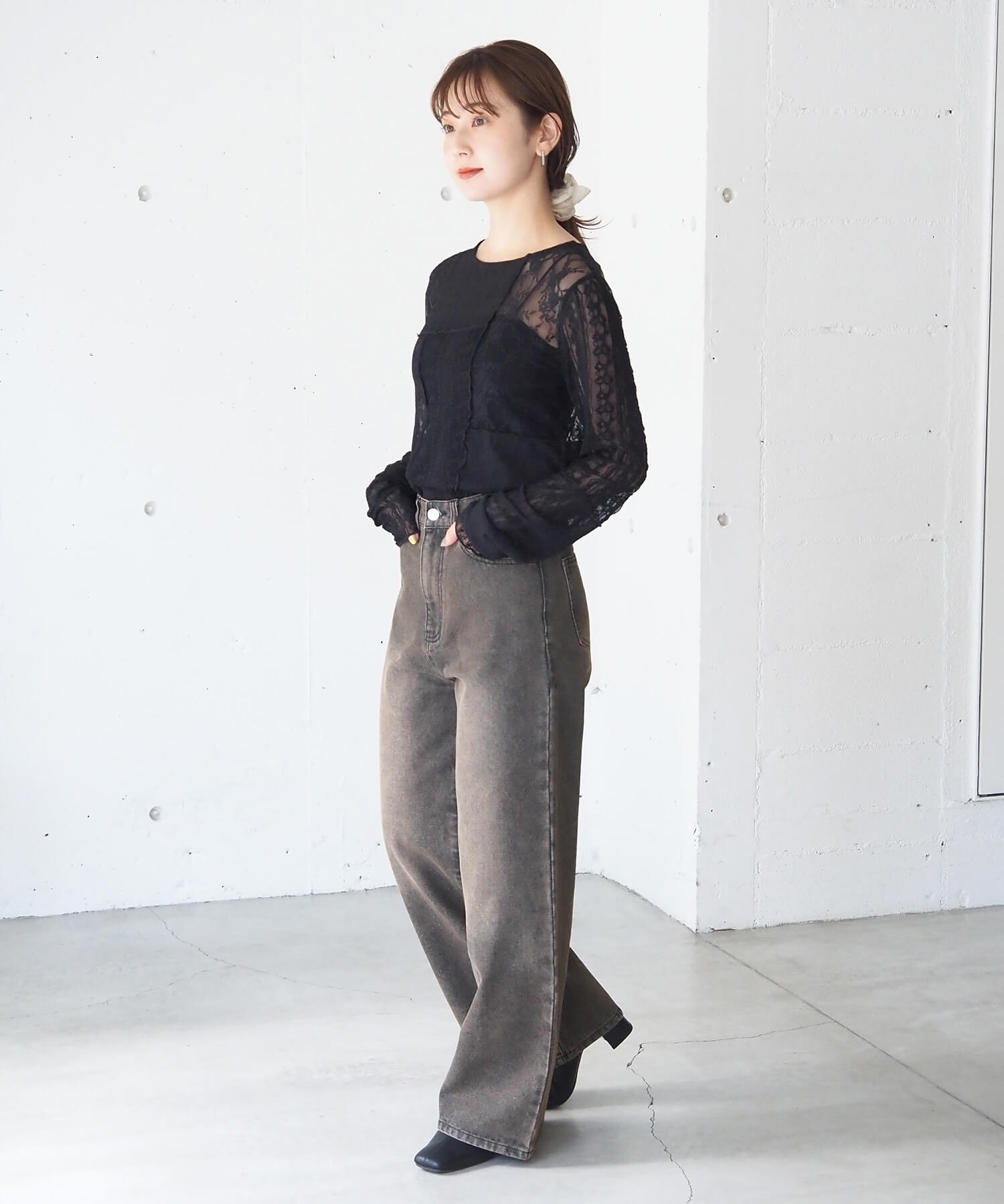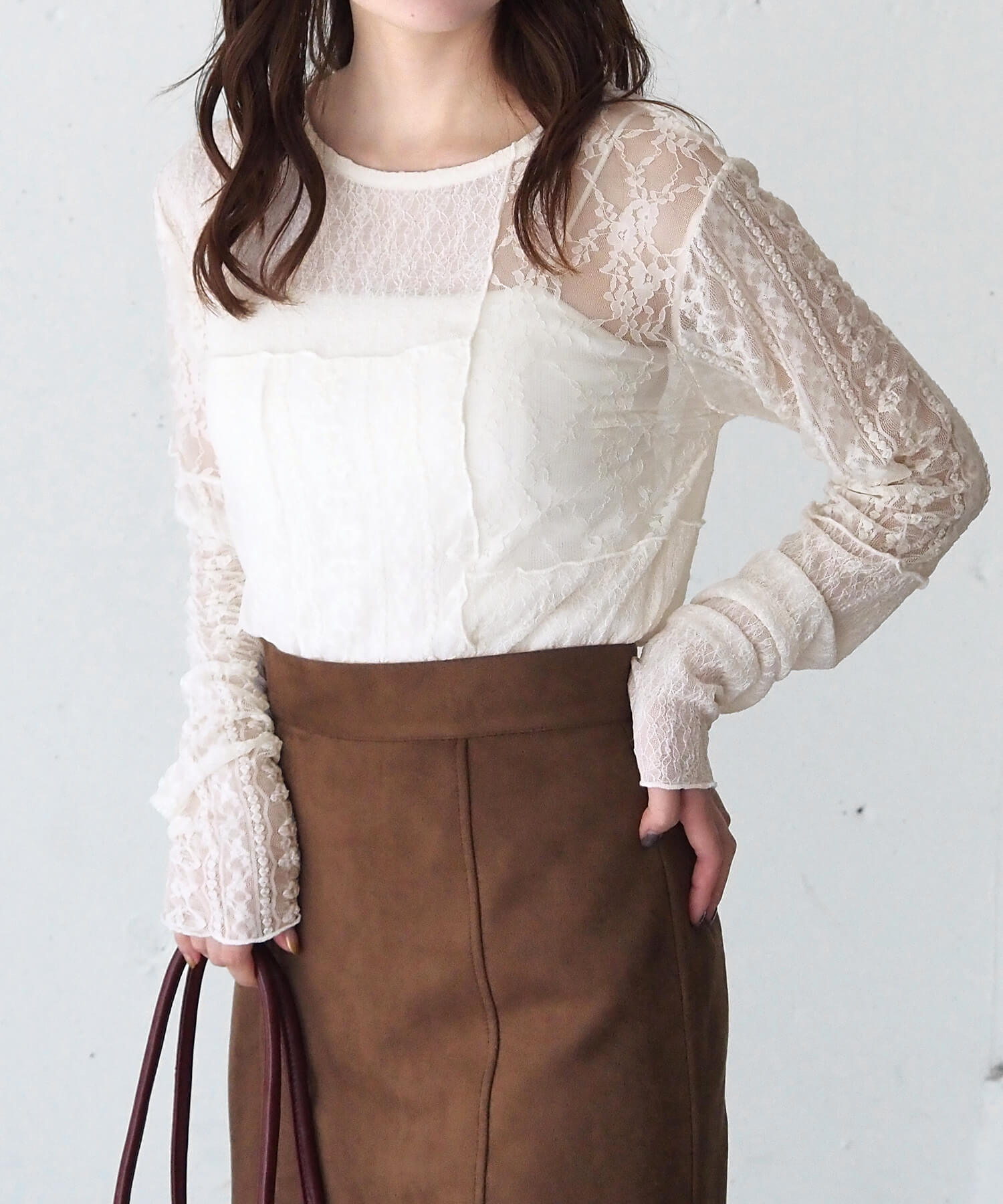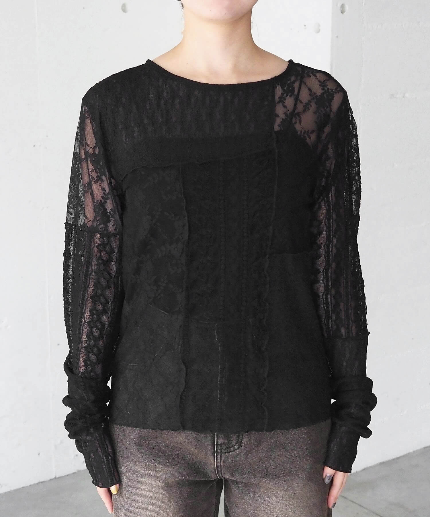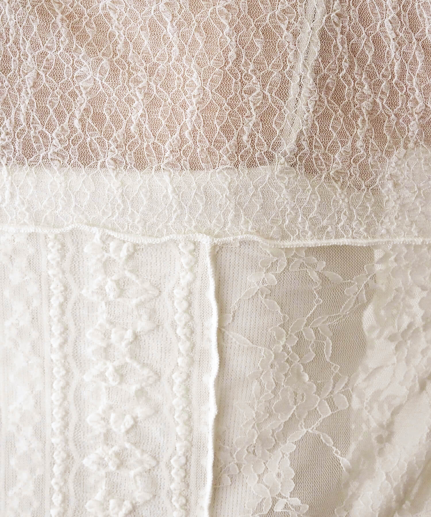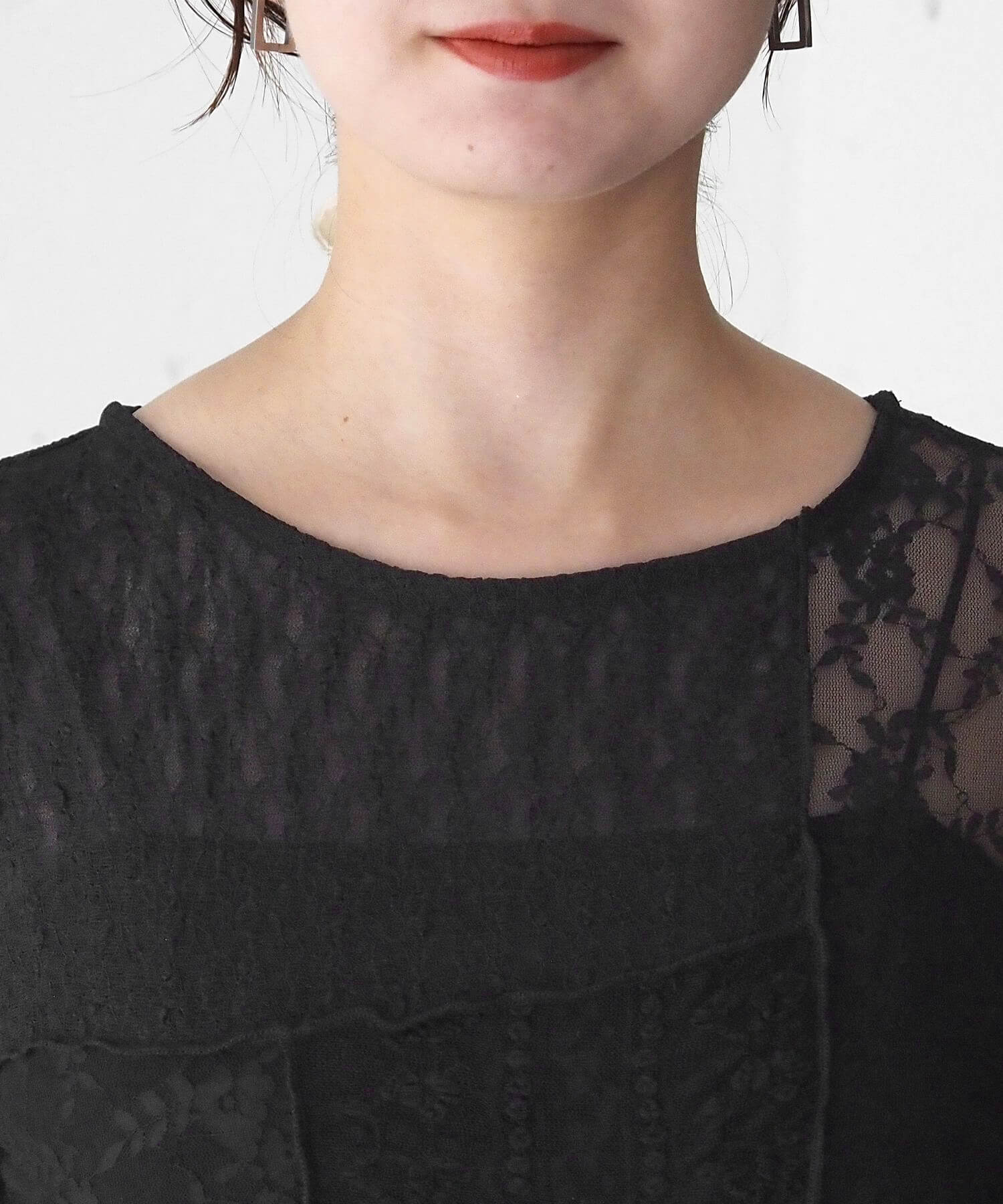 ・女性らしいレースをパッチワークでカジュアルに。ヘルシーな肌見せが叶います。