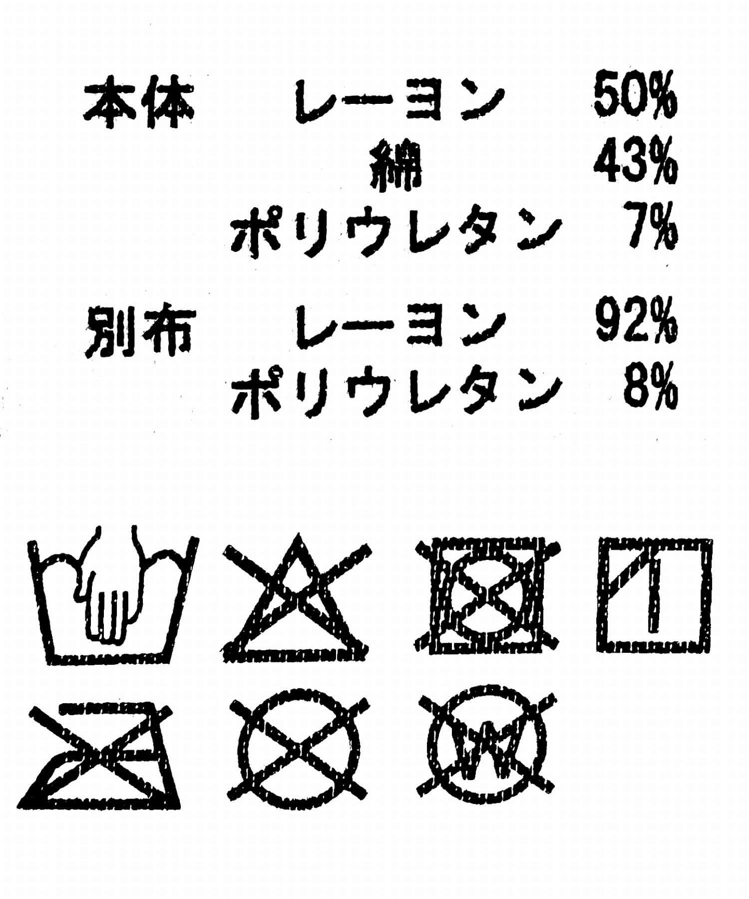 本体: レーヨン50%, コットン43%, ポリウレタン7%, 別布: レーヨン92%, ポリウレタン8%