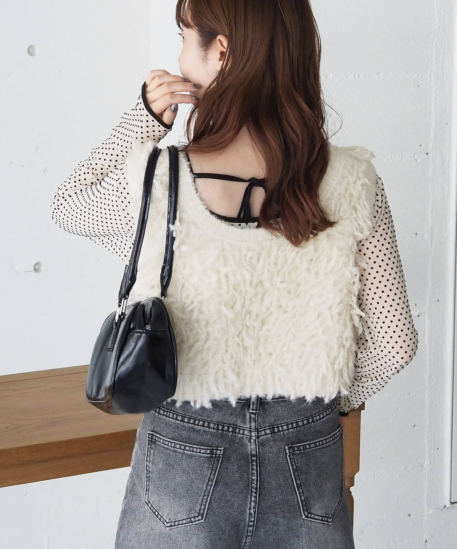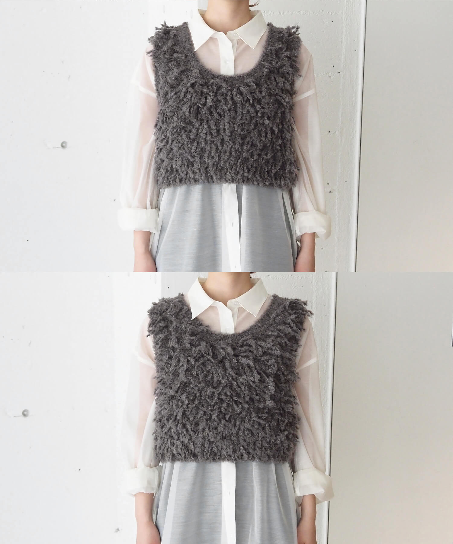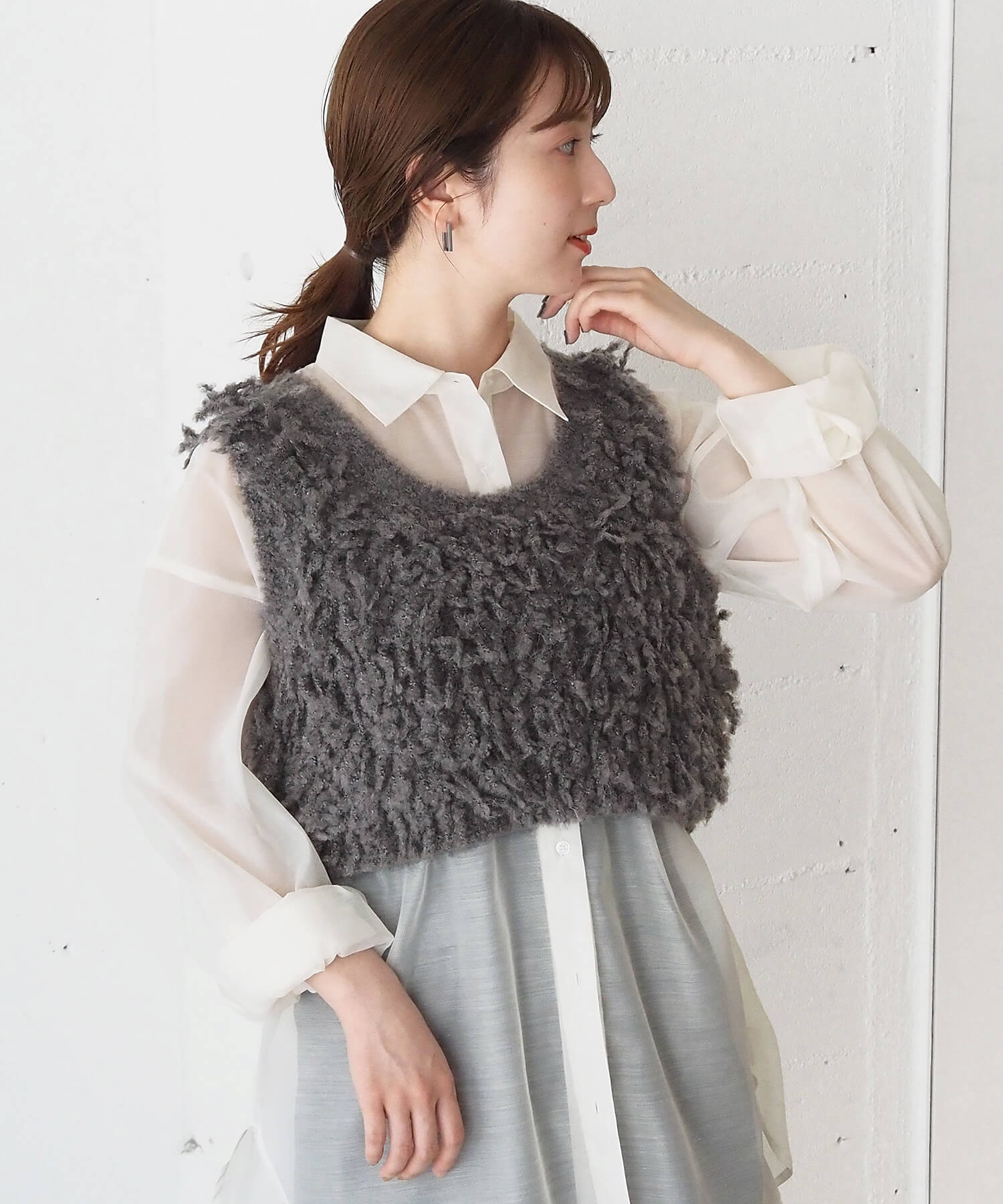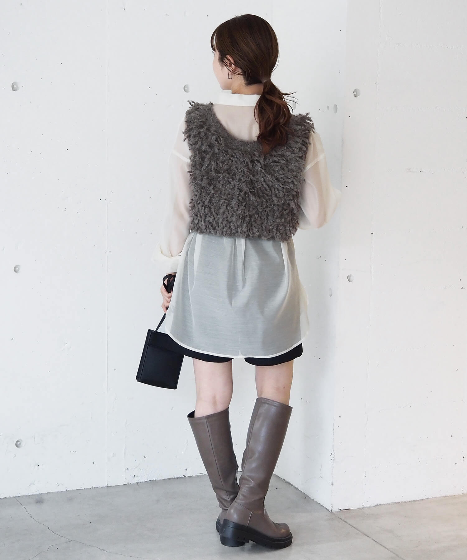 ・すっきり見えるこだわりのショート丈は、チュニックやワンピースにビスチェ感覚でレイヤードもおすすめです。