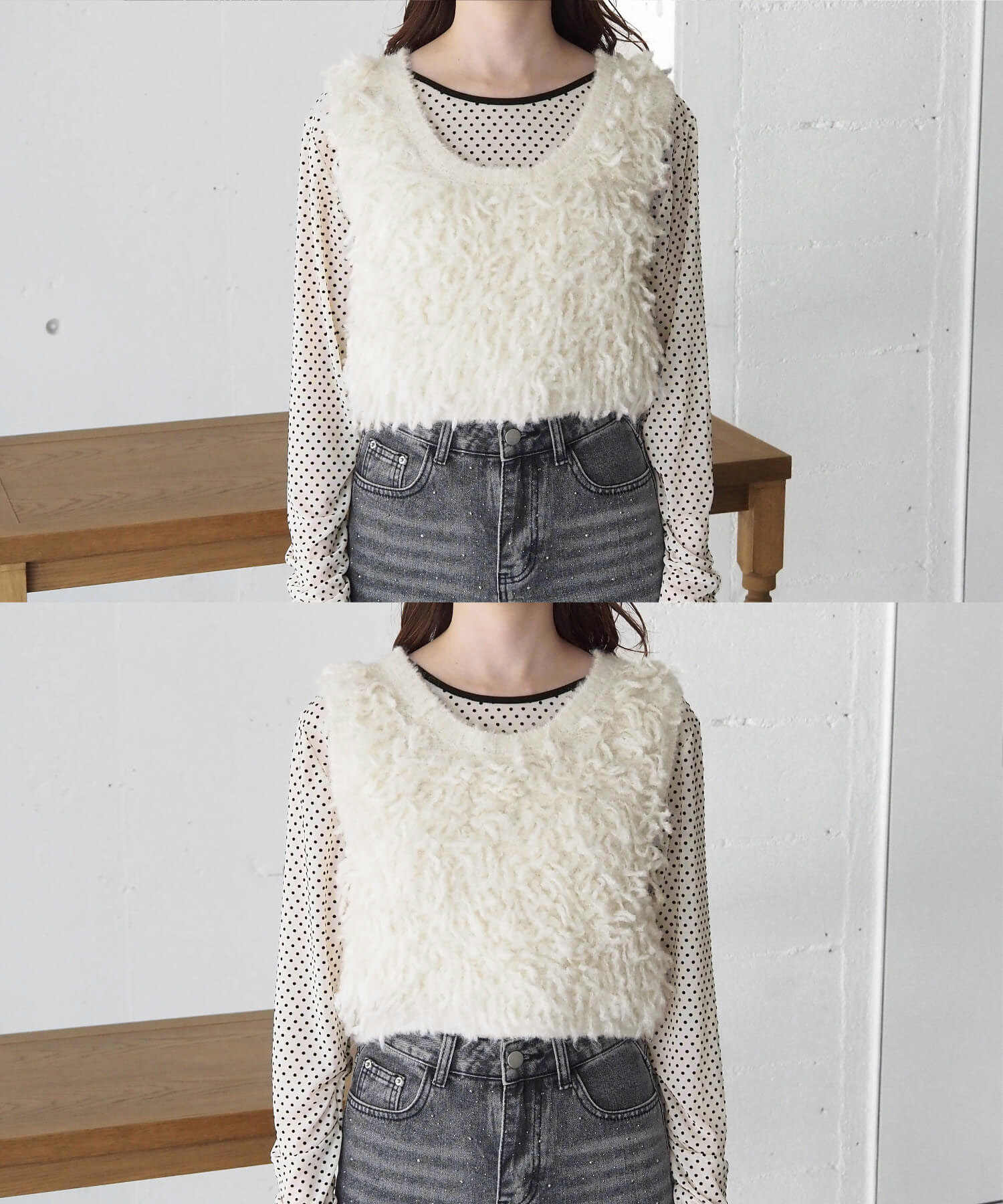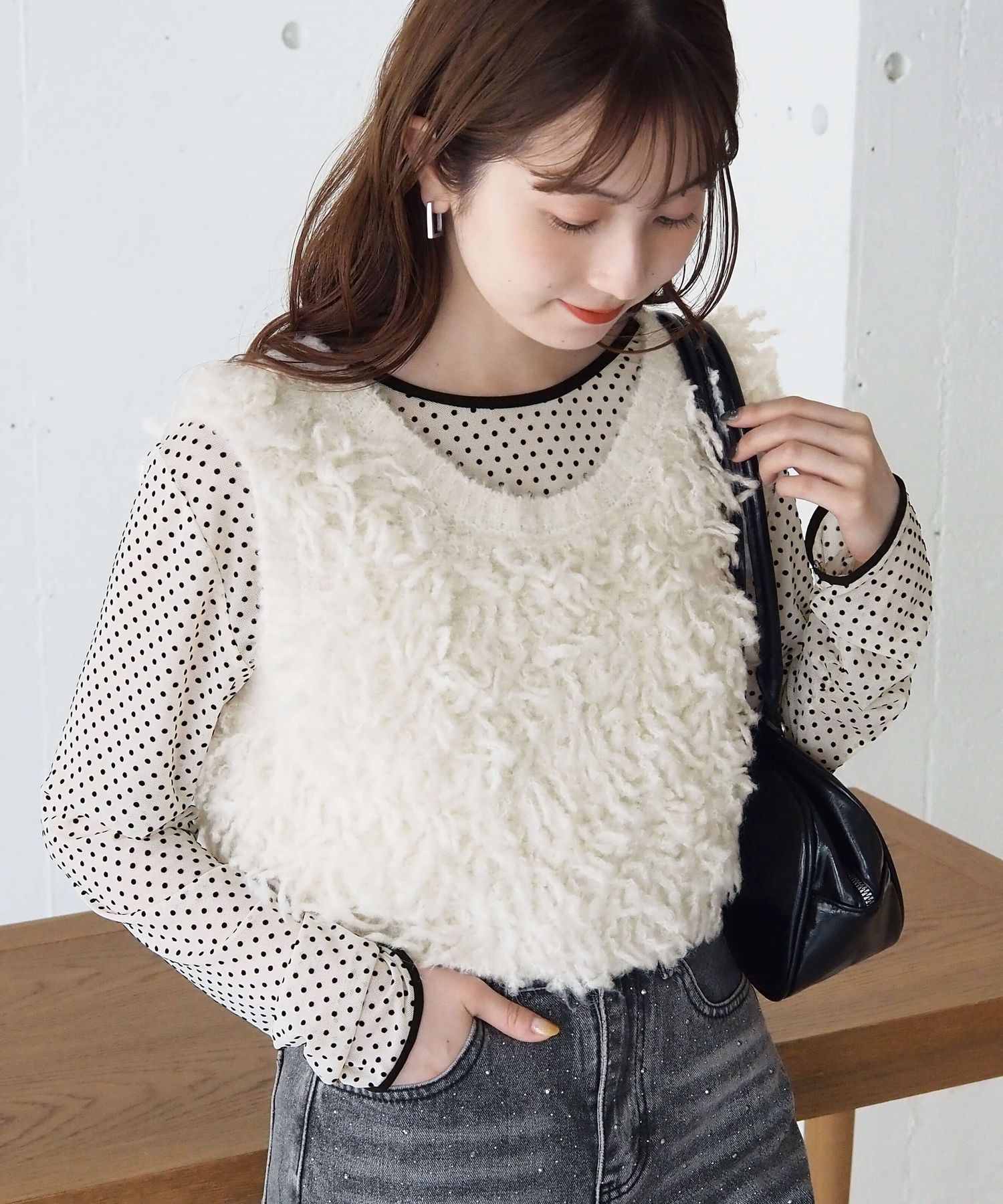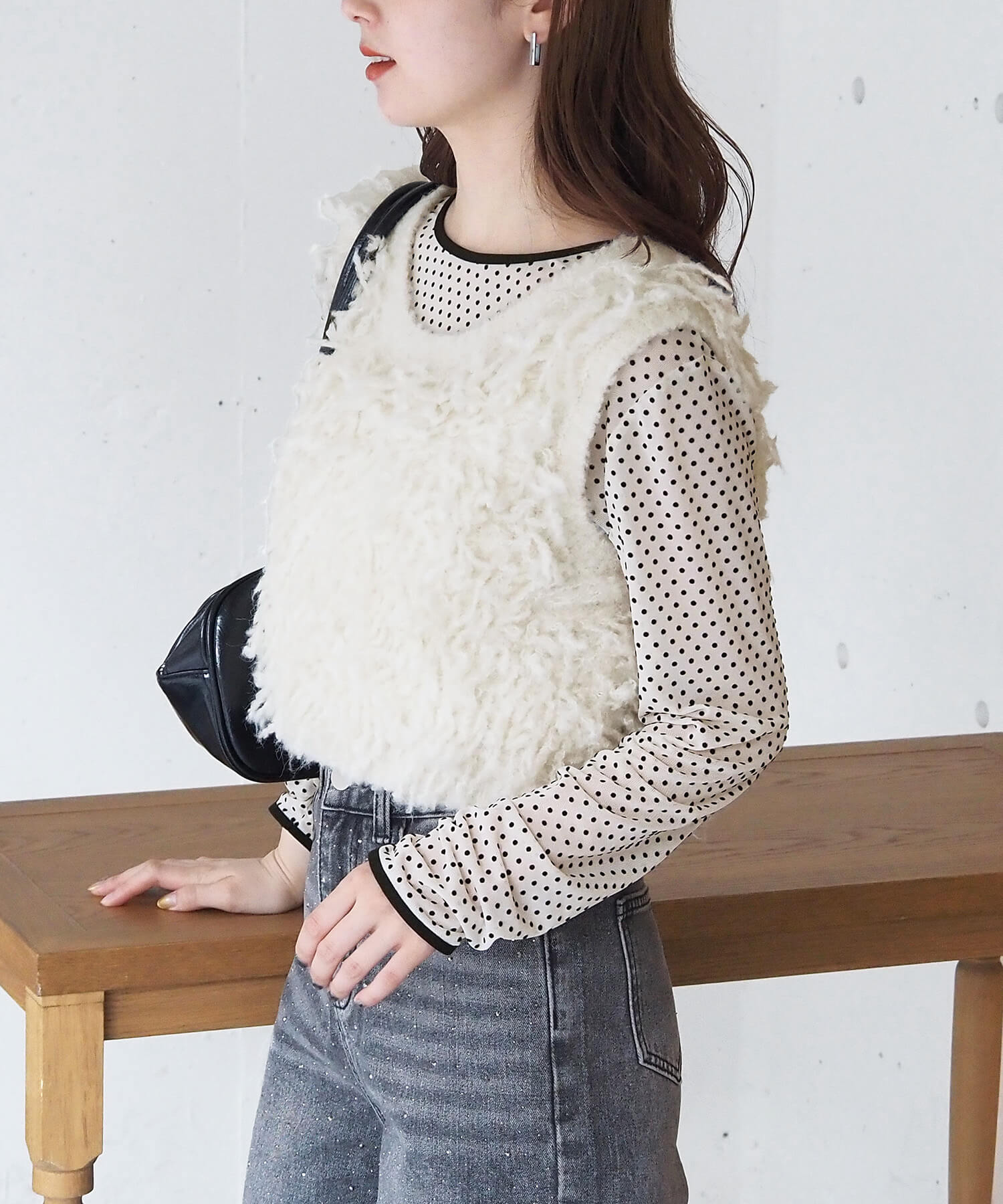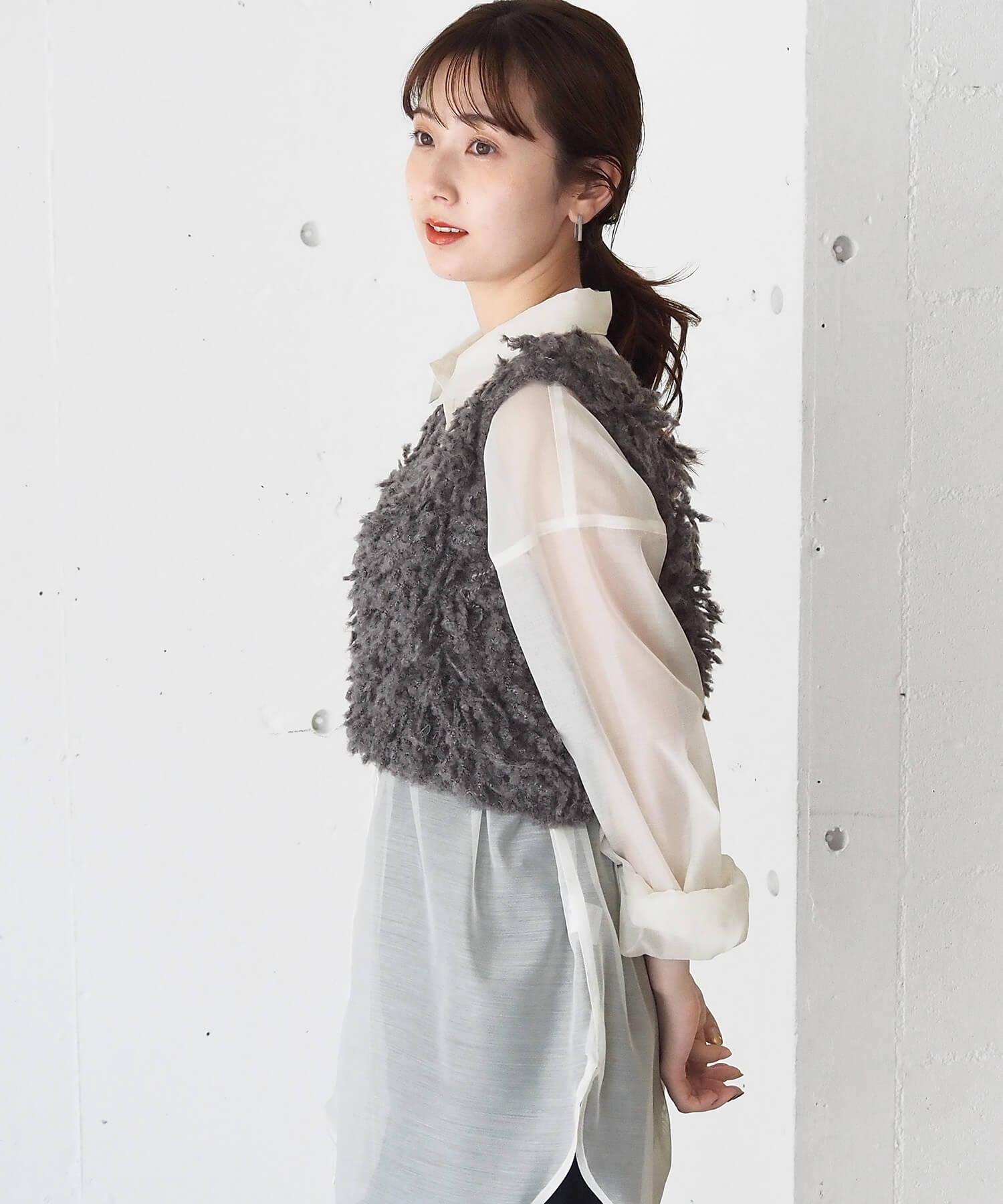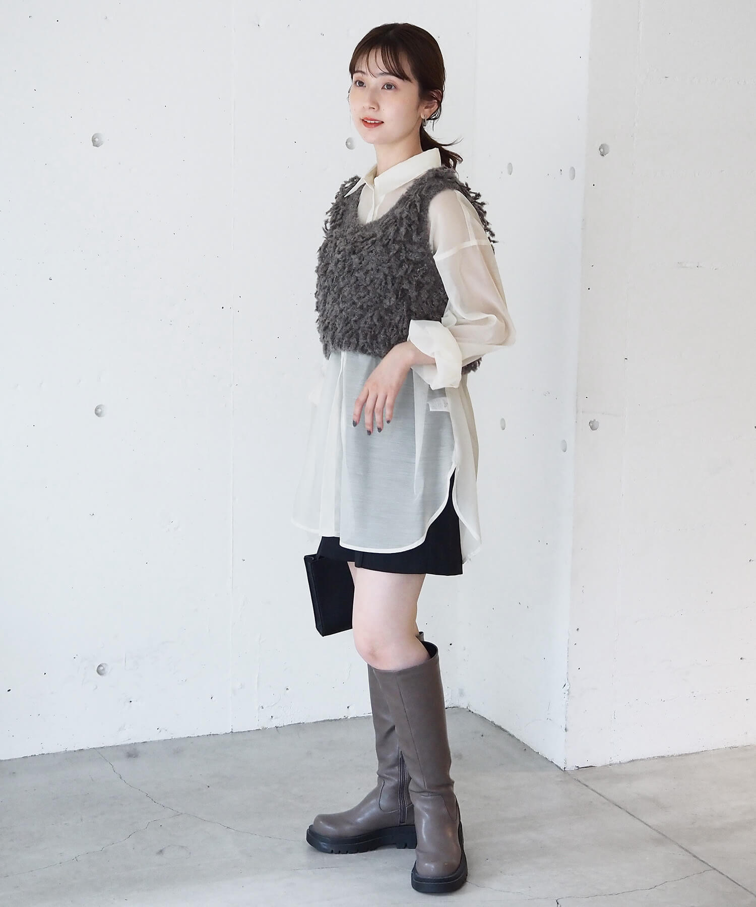 ・すっきり見えるこだわりのショート丈は、チュニックやワンピースにビスチェ感覚でレイヤードもおすすめです。