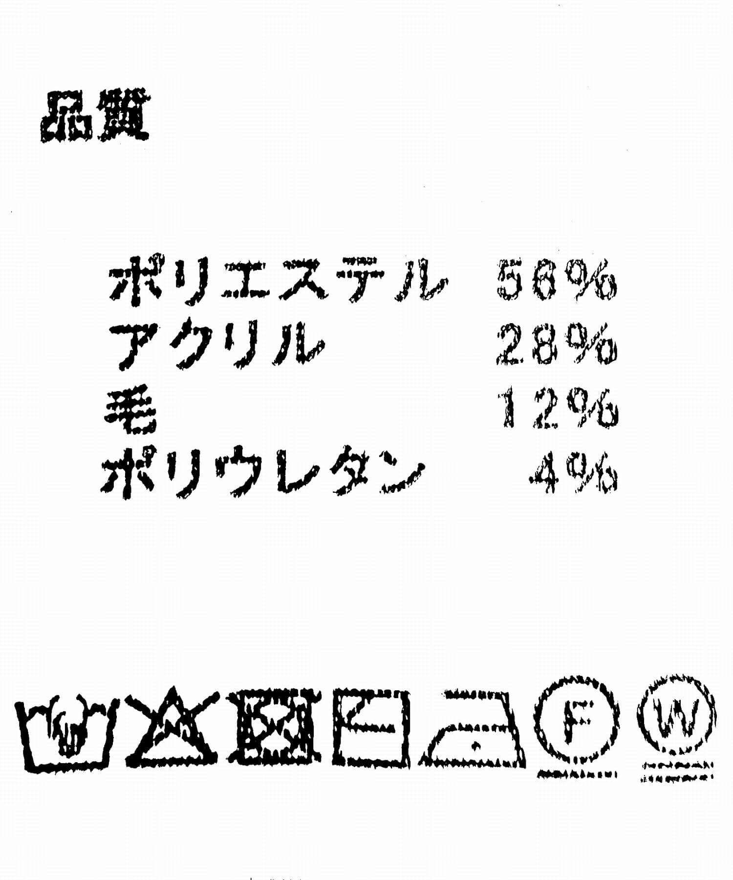 ポリエステル56%, アクリル28%, 毛12%, ポリウレタン4%