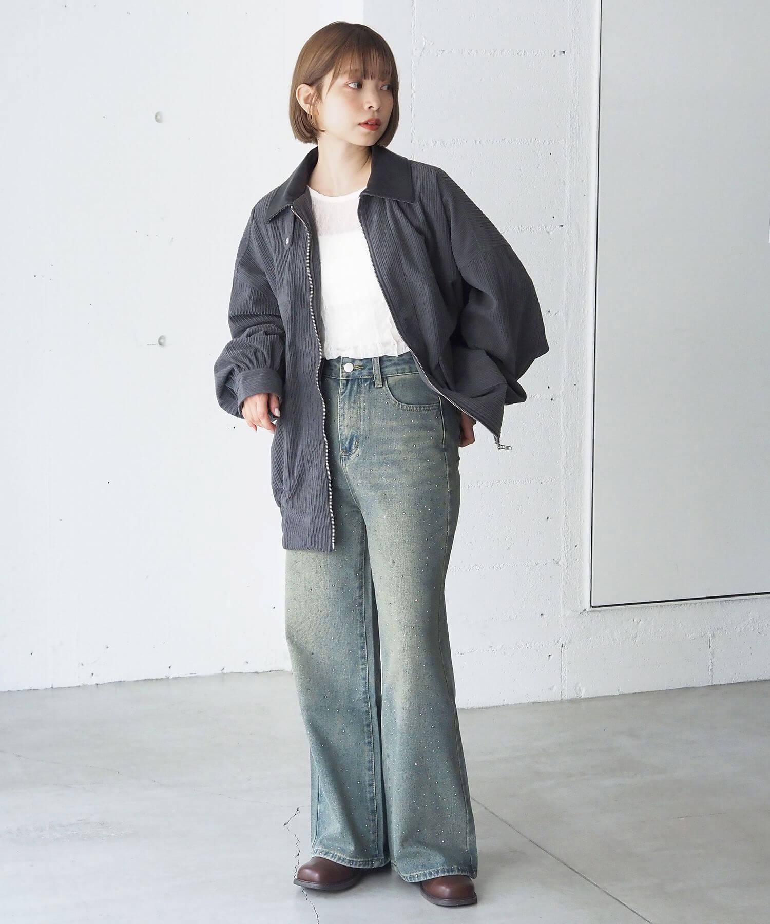 ・ビッグシルエットなので、厚手のニットやオーバーサイズのトップスとのコーディネートにもおすすめです◎