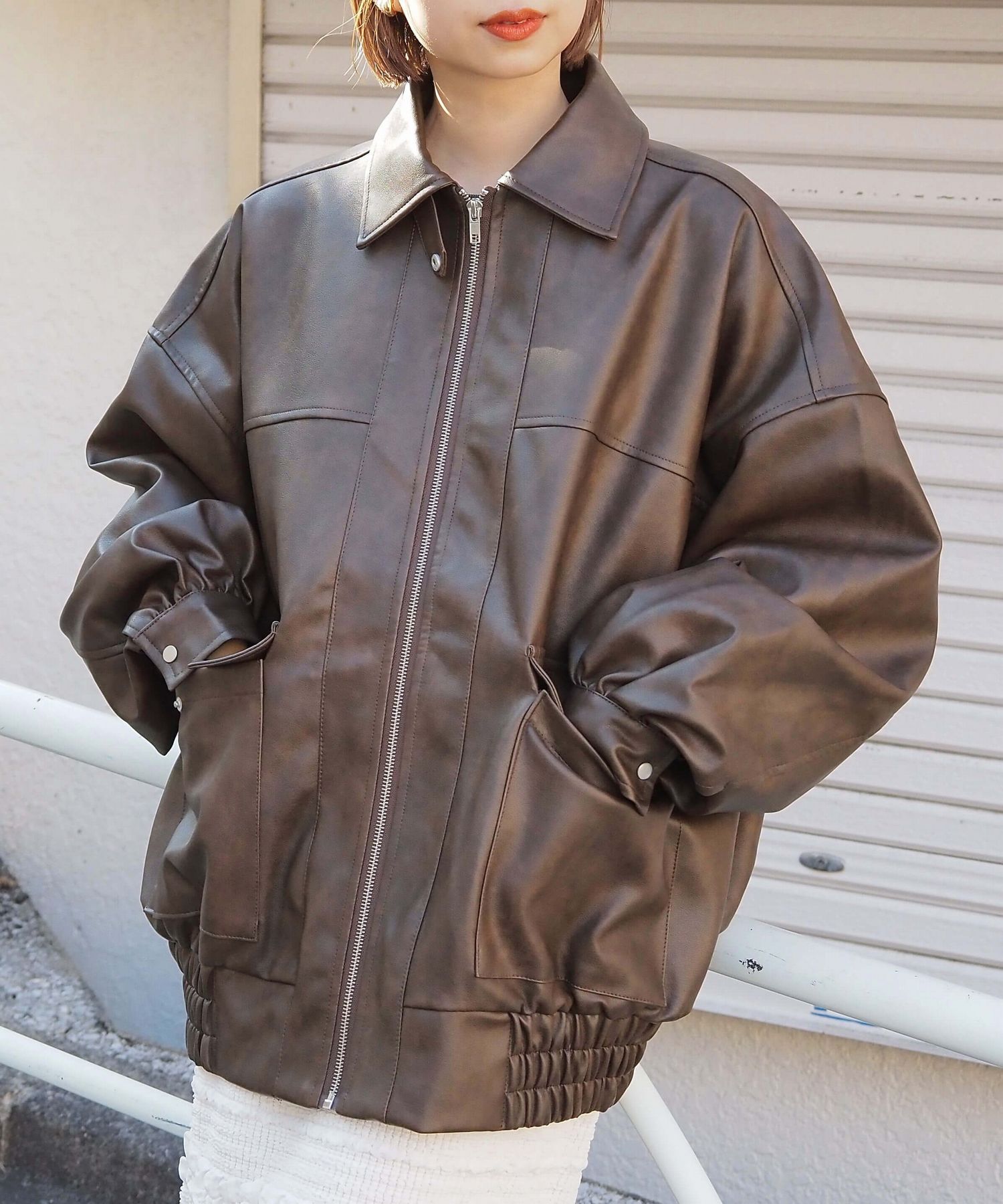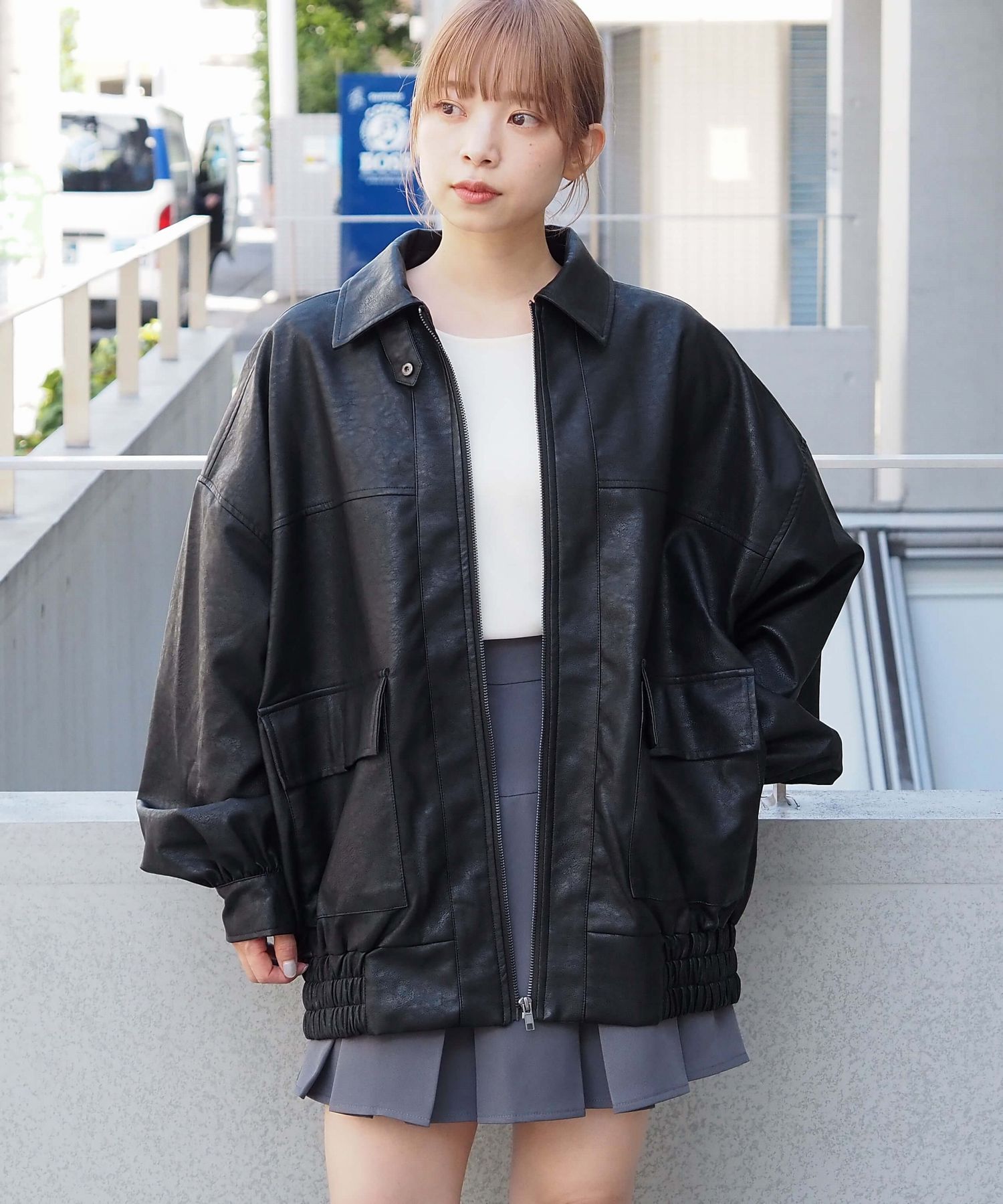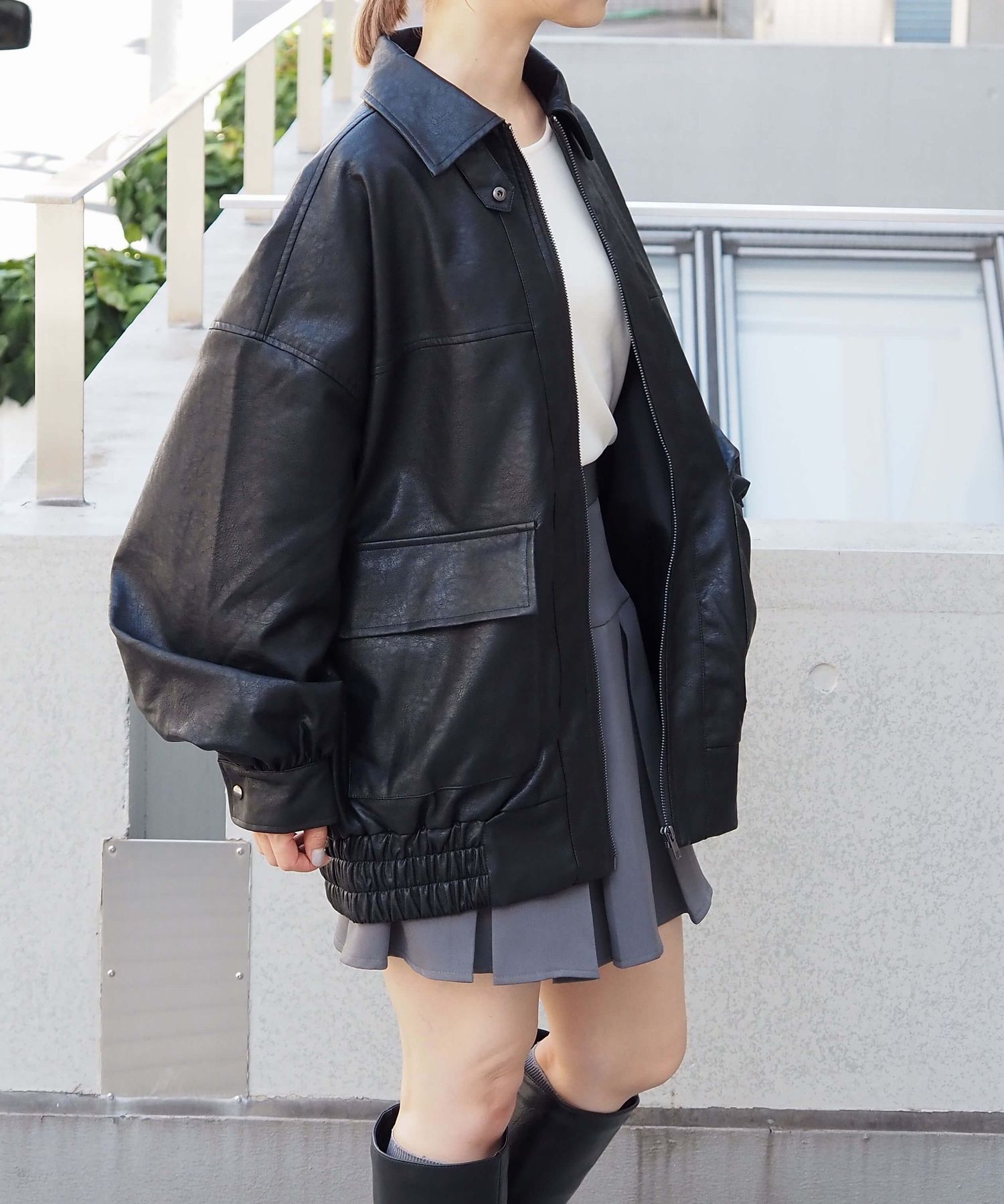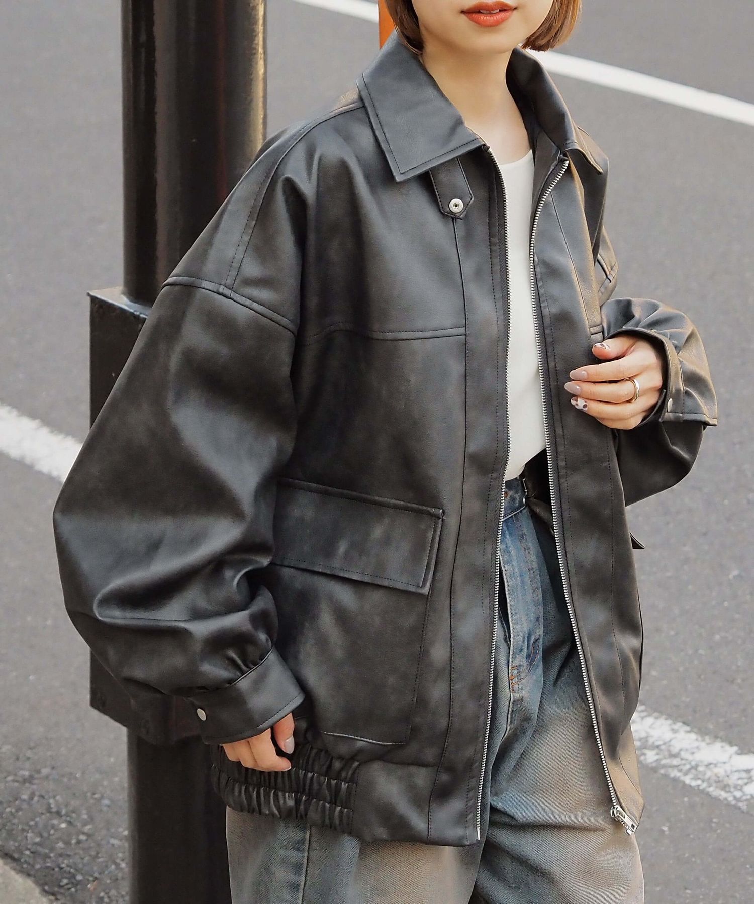 ・ビッグシルエットが魅力のフェイクレザーブルゾンです。