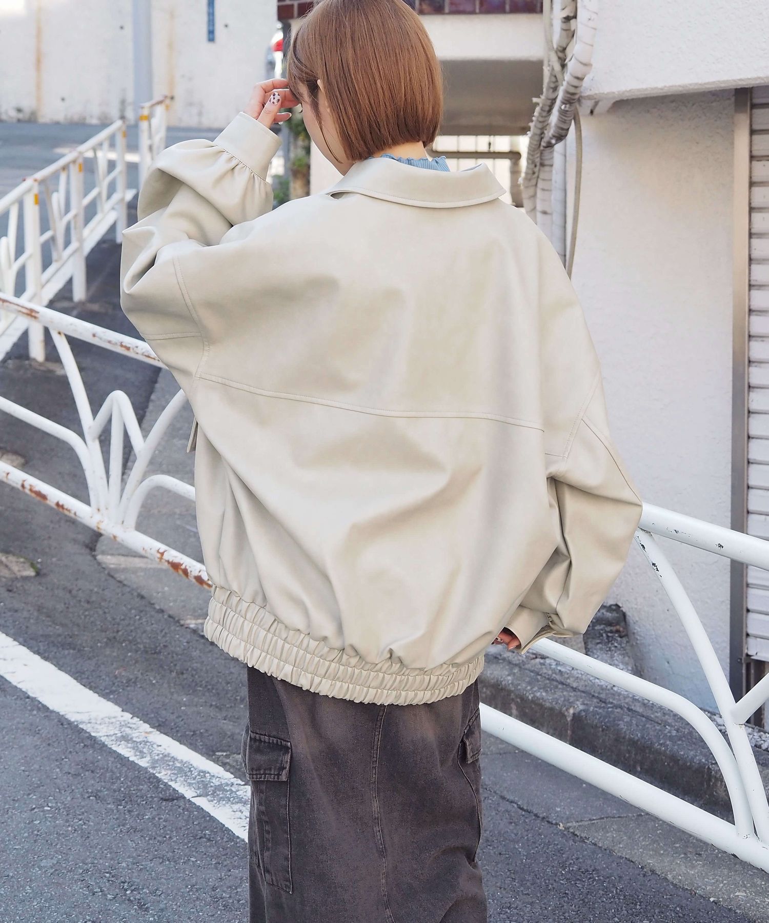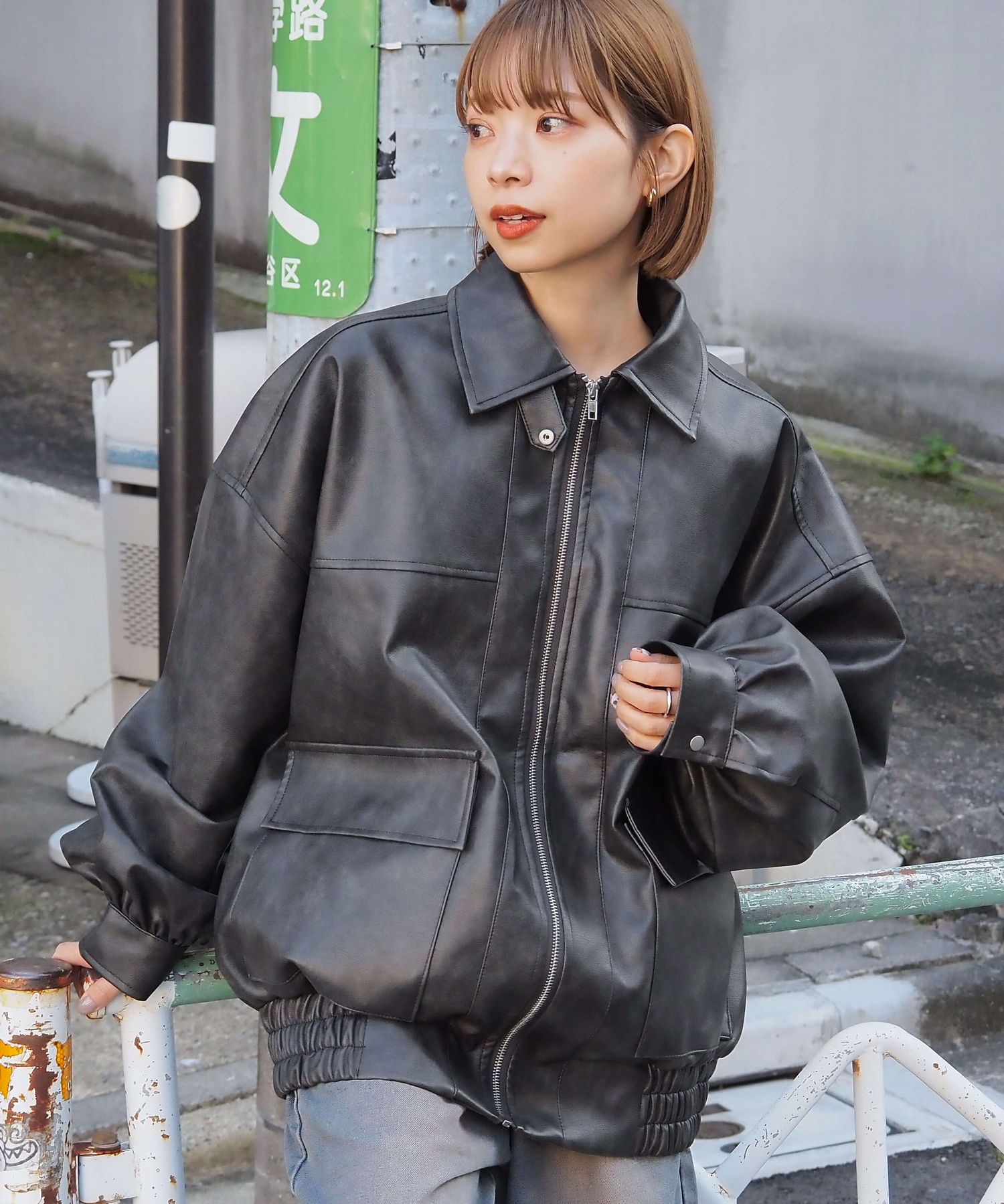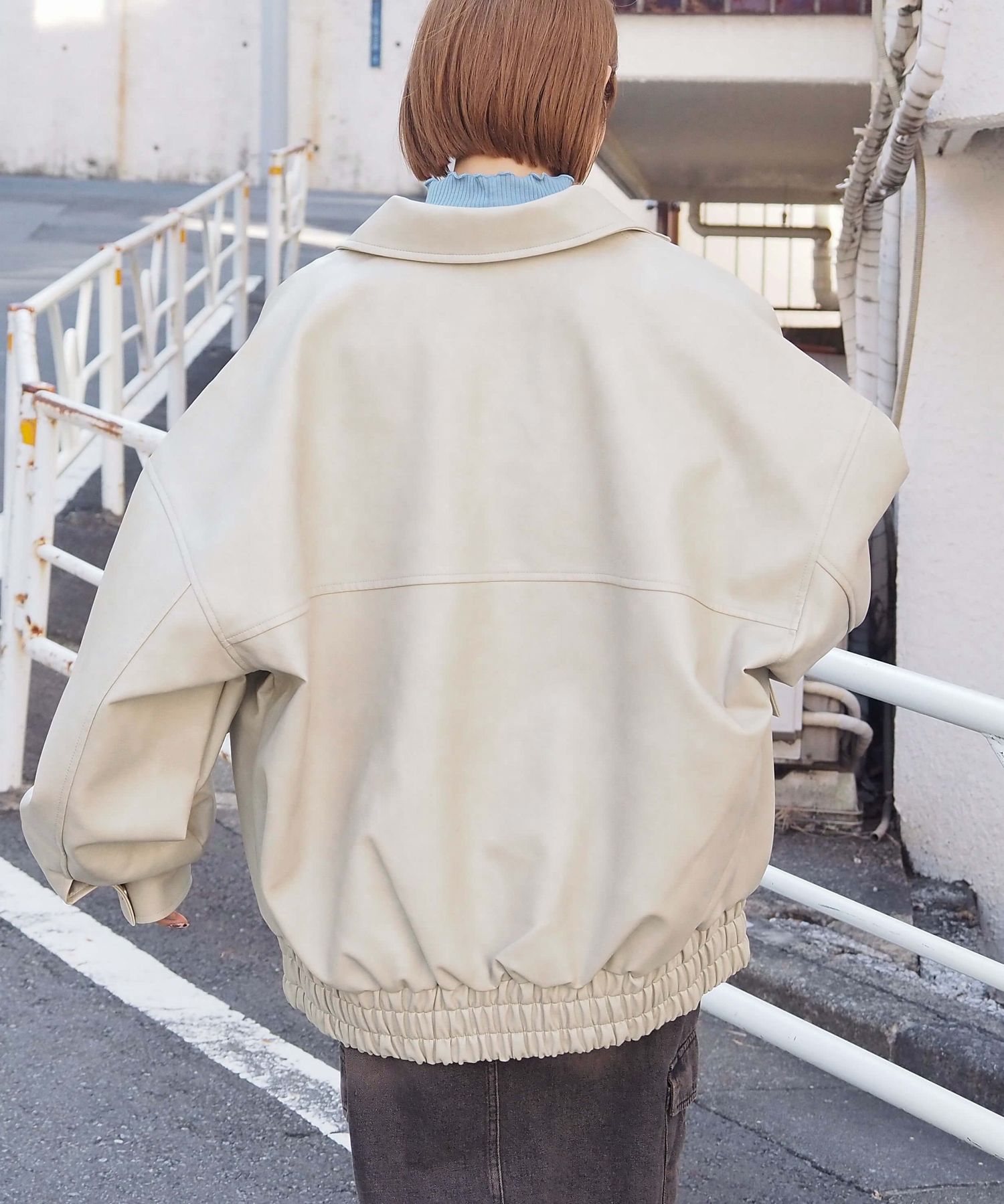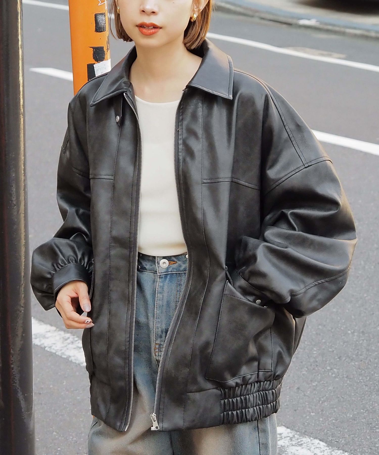 ・ビッグシルエットが魅力のフェイクレザーブルゾンです。