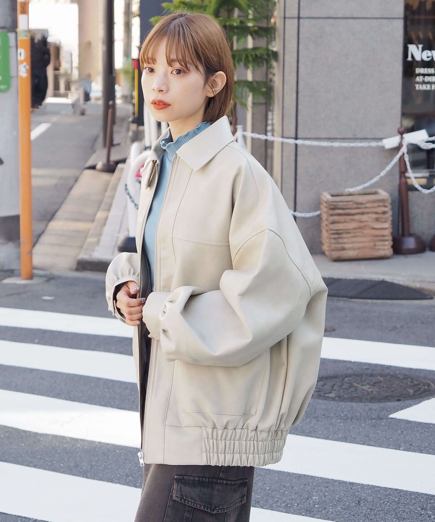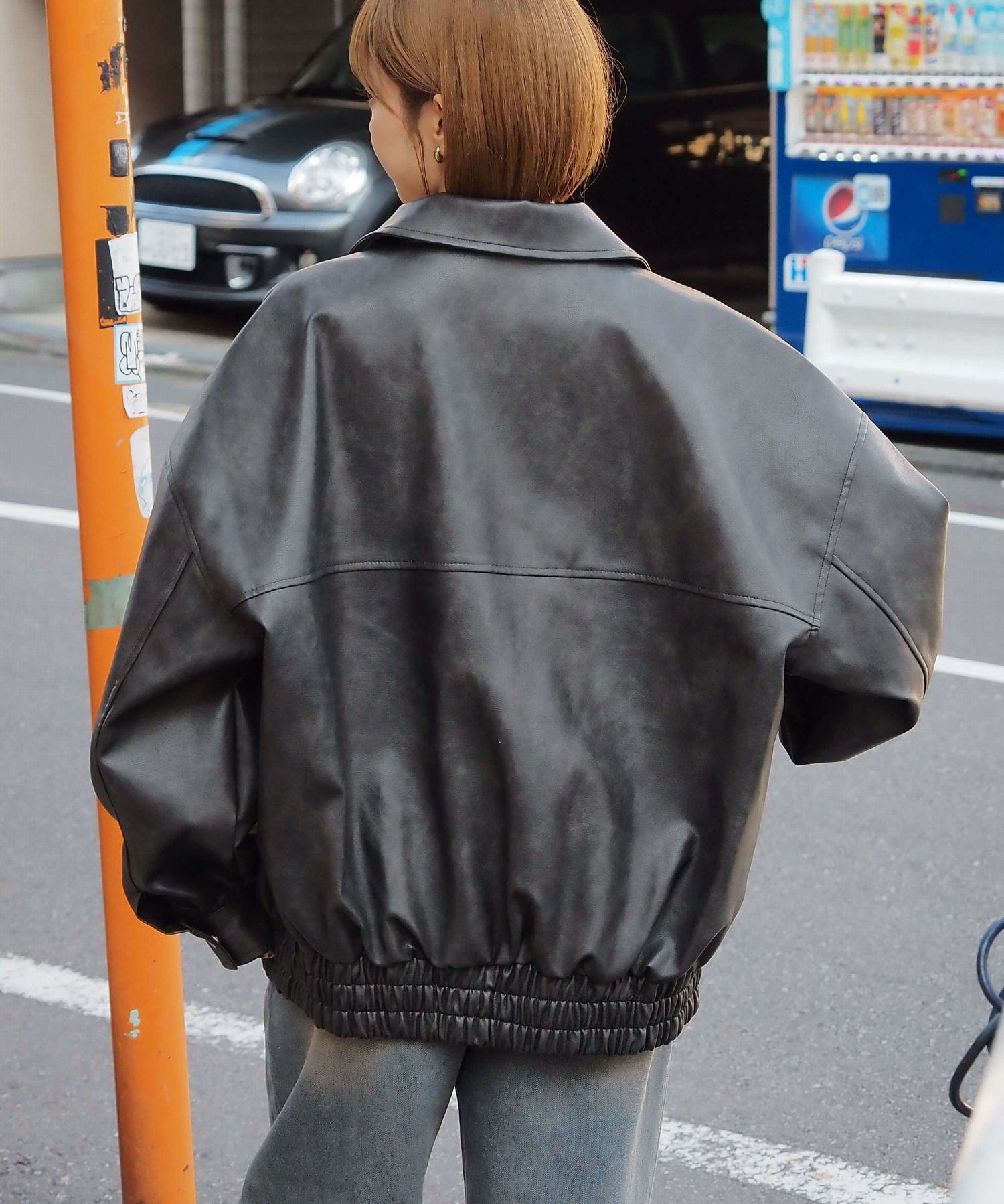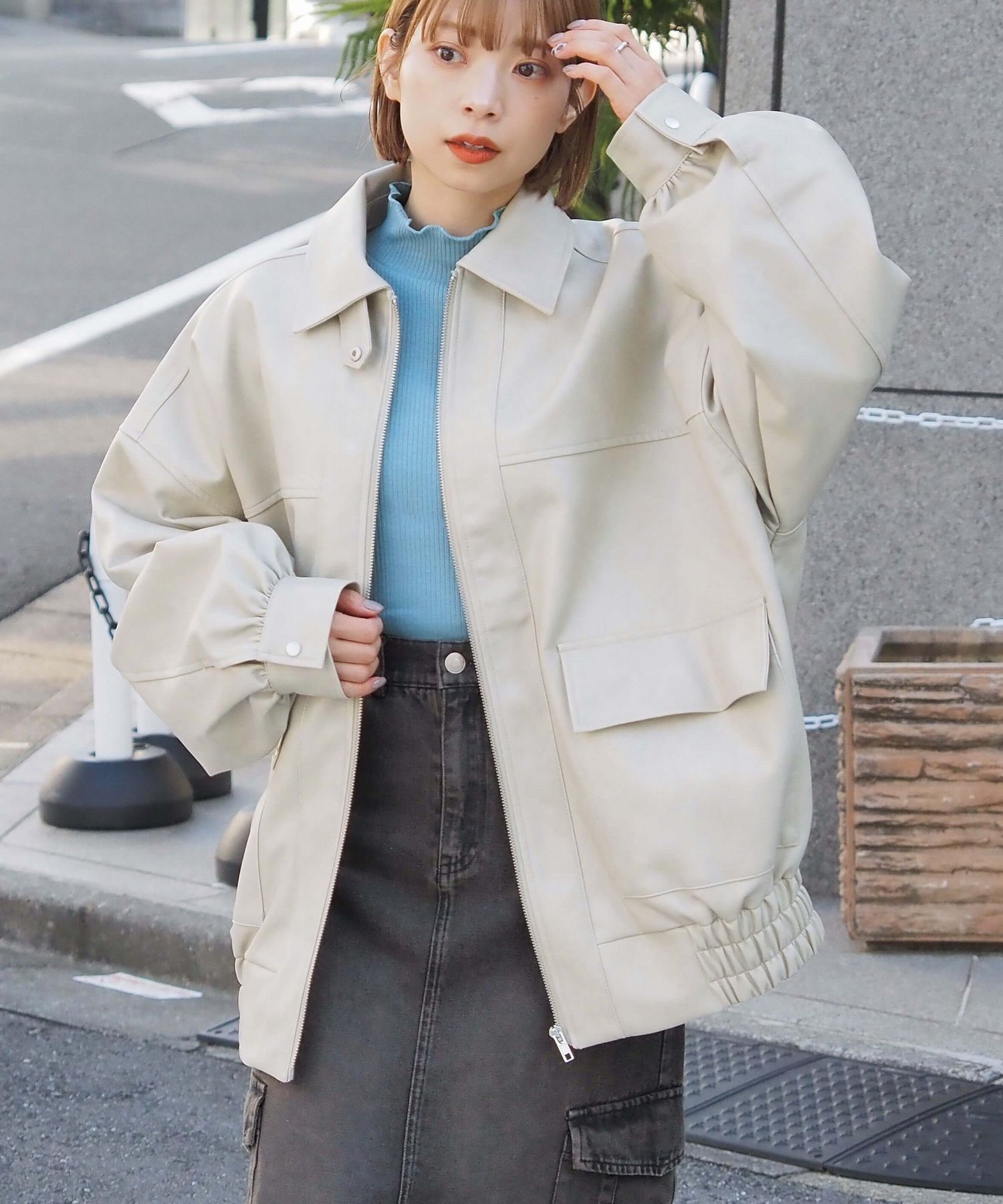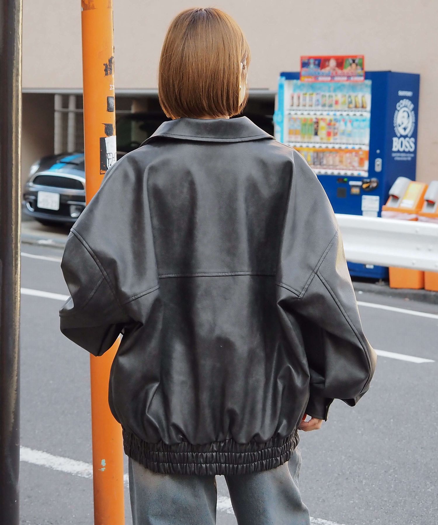 ・ビッグシルエットが魅力のフェイクレザーブルゾンです。