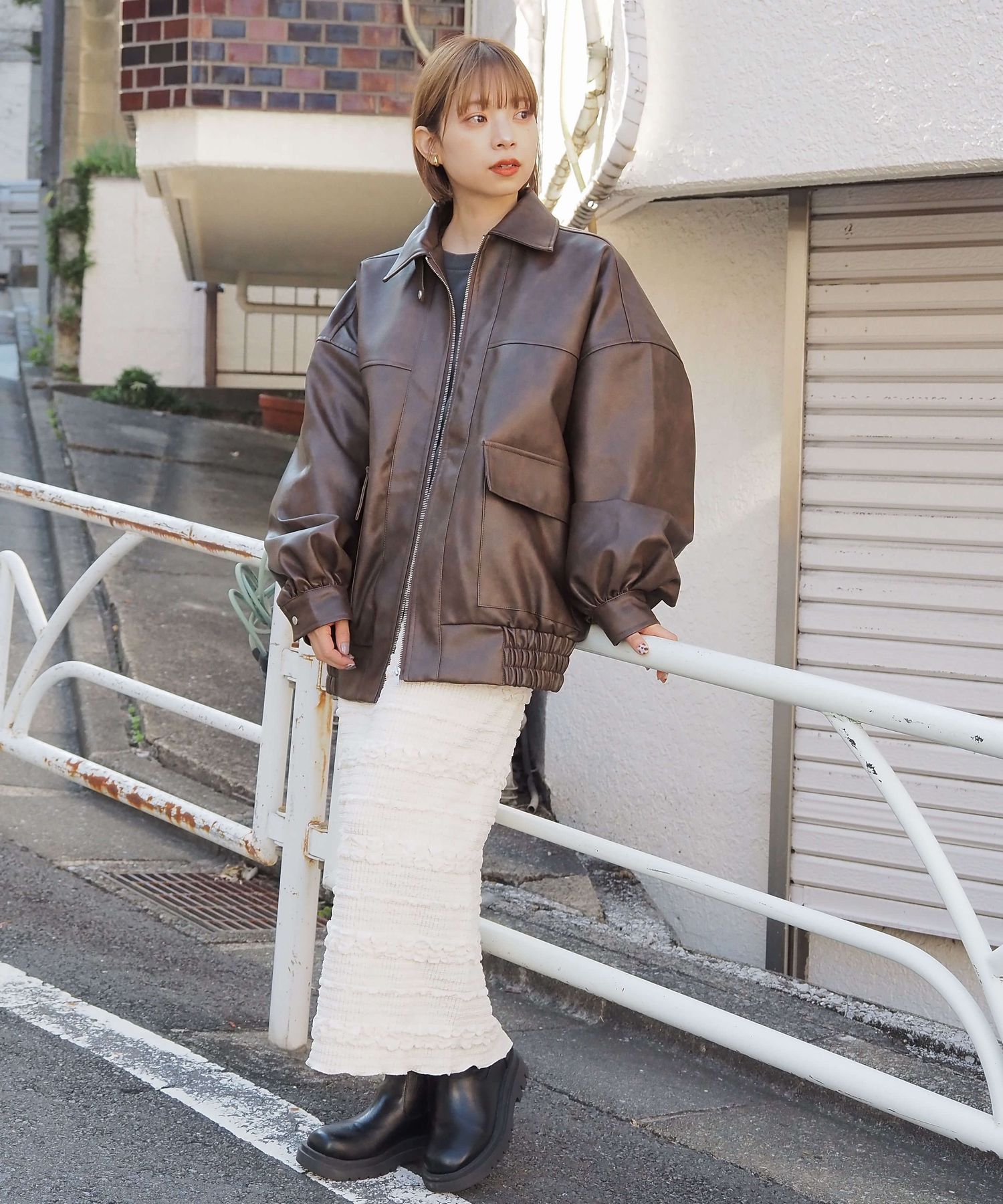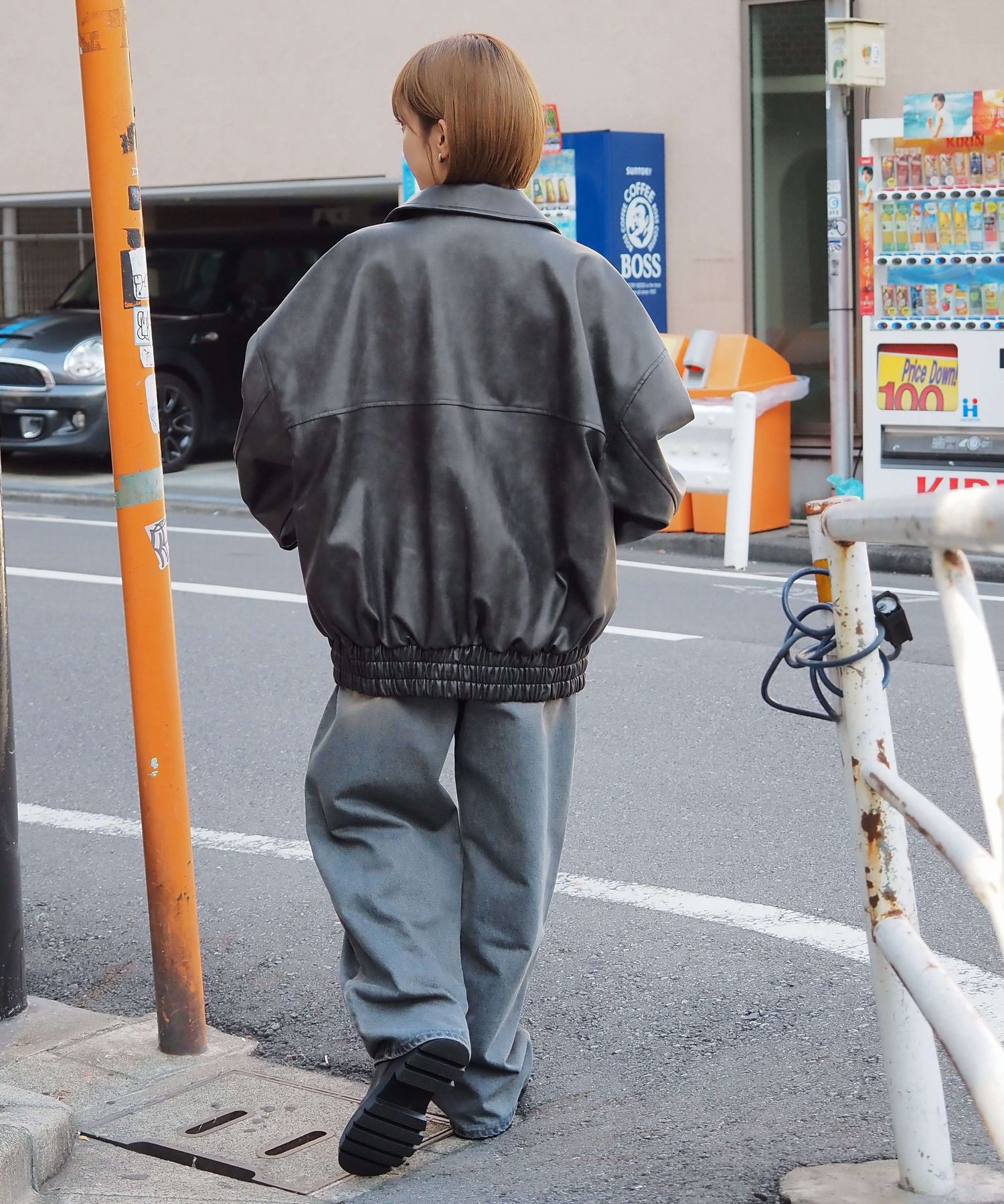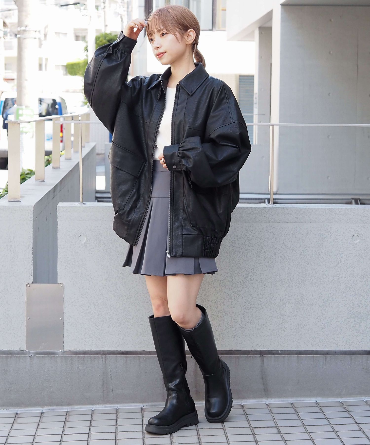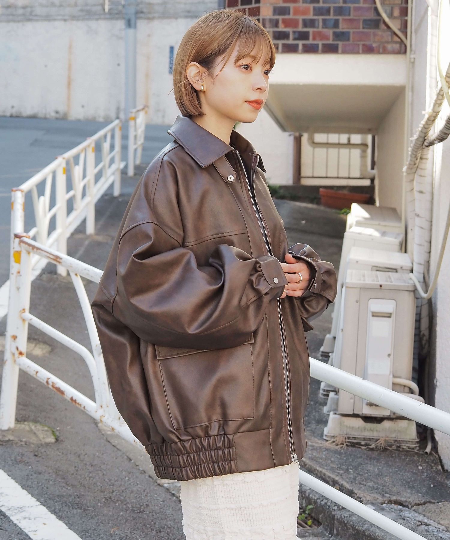 ・ビッグシルエットが魅力のフェイクレザーブルゾンです。