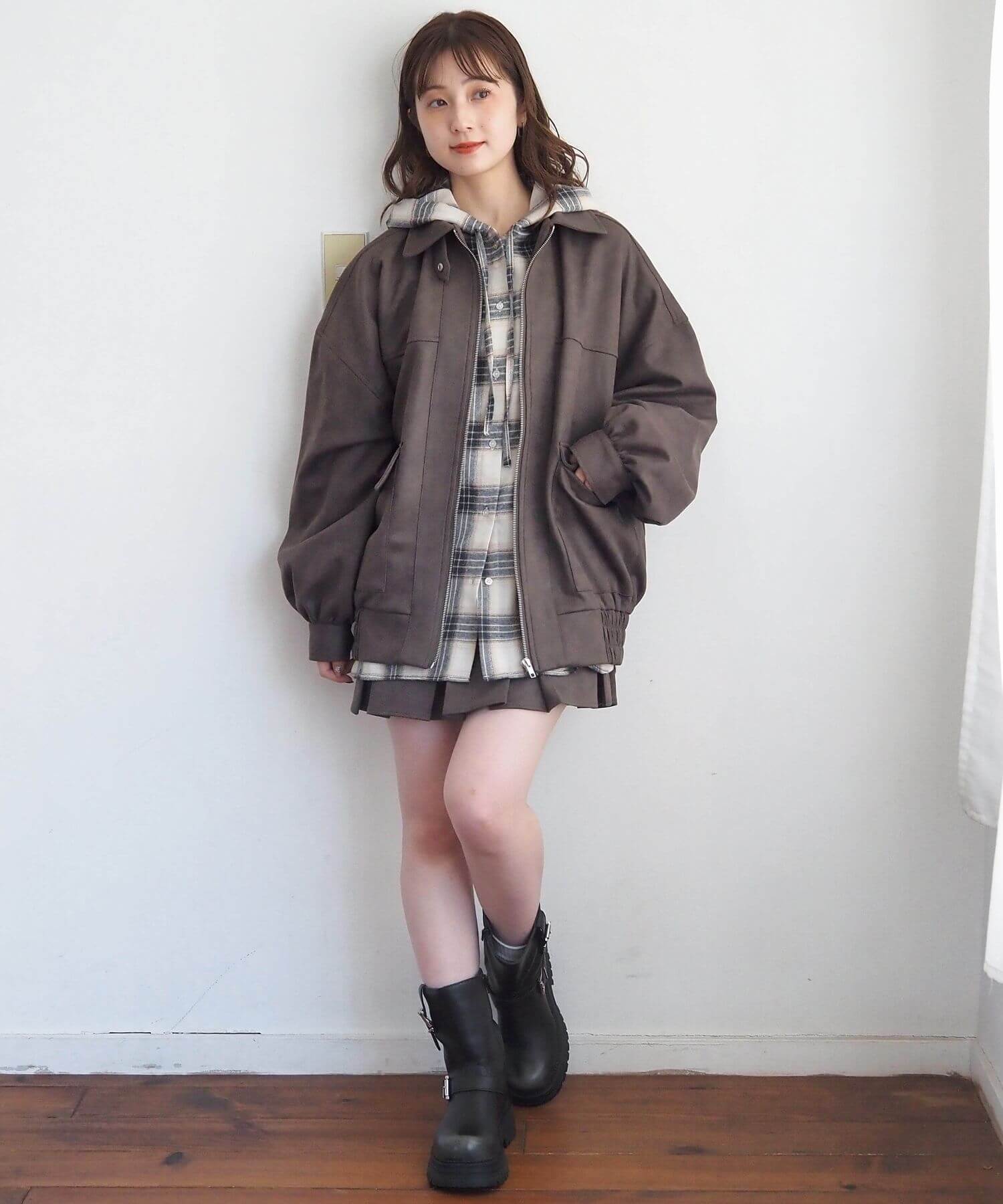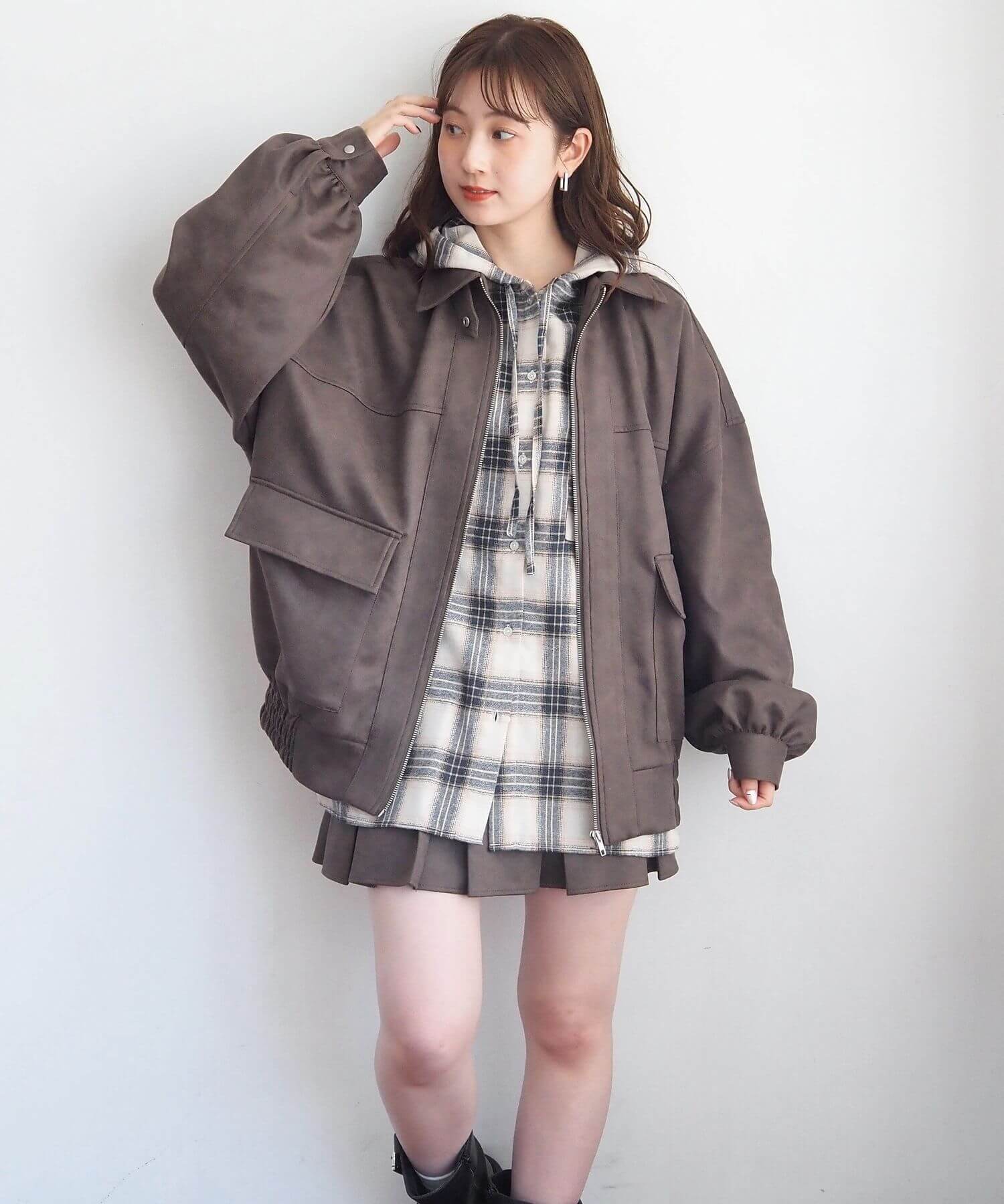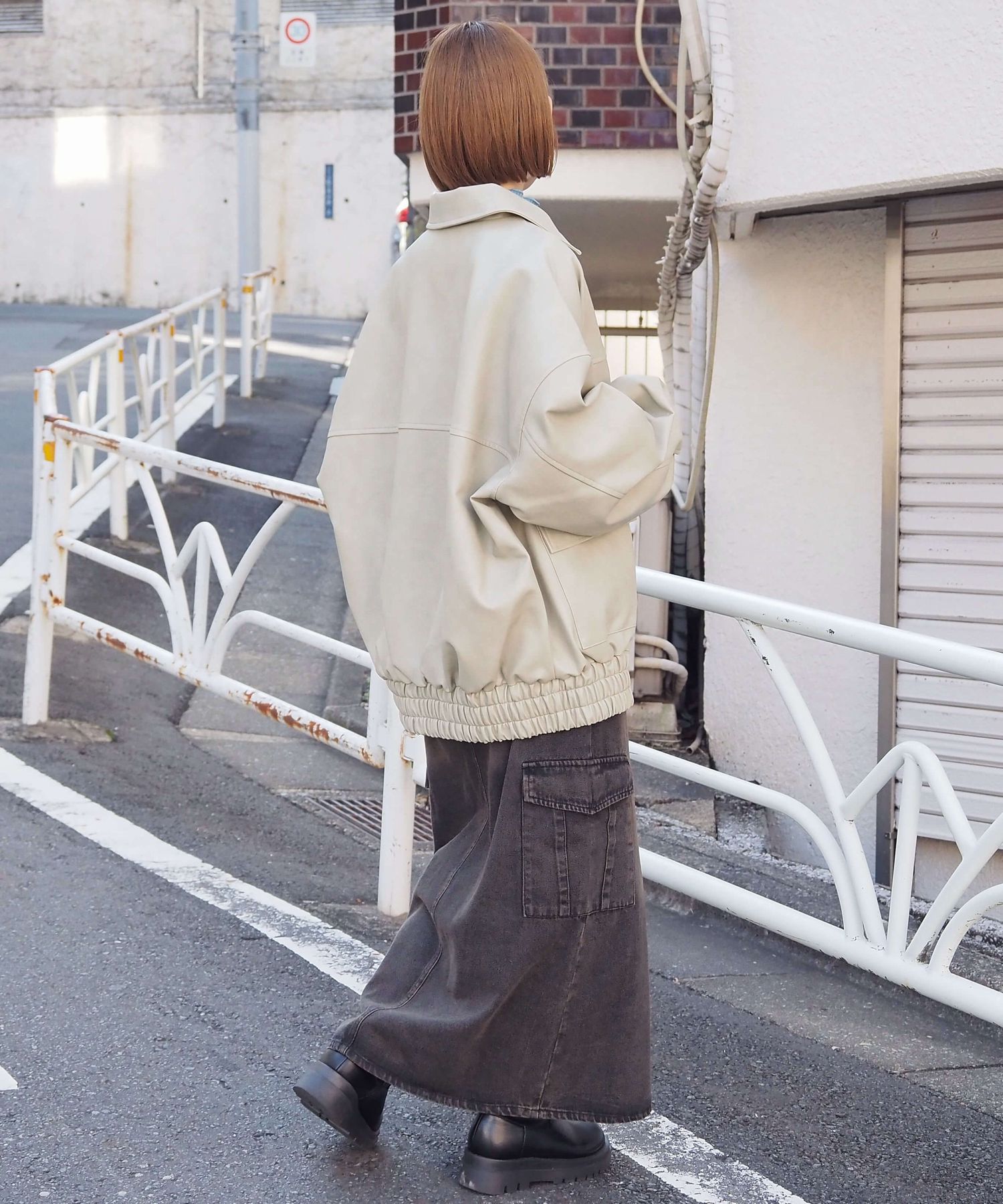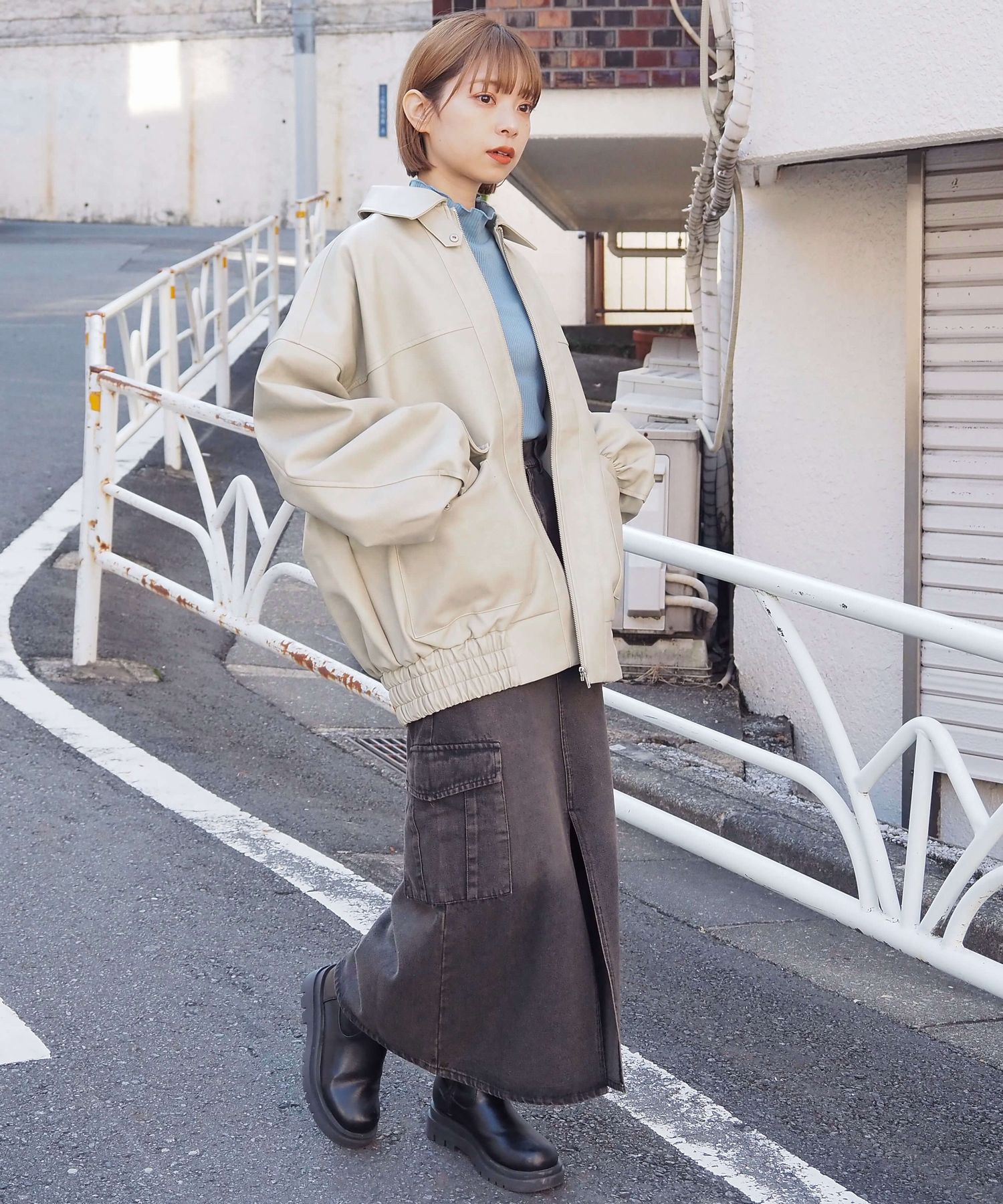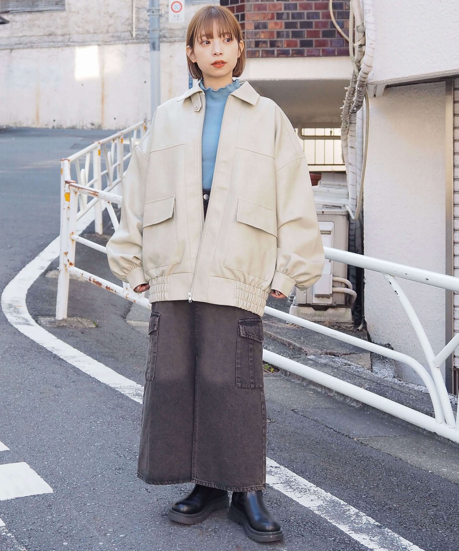 ・メンズライクなストリートスタイルとも相性ばつぐん。ボリューム袖が柔らかく女性らしい雰囲気をプラスします。