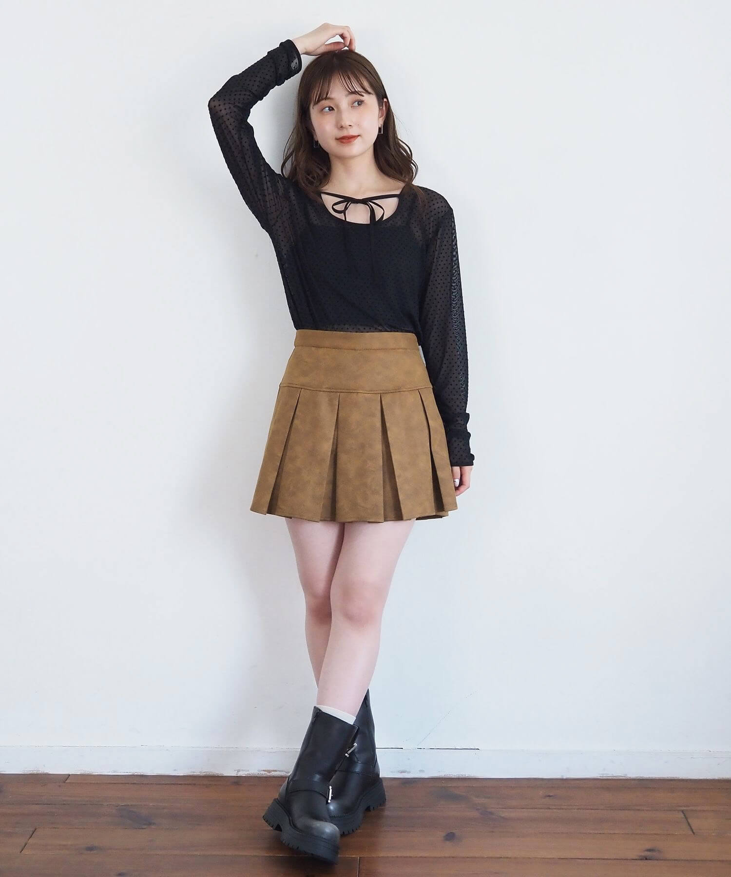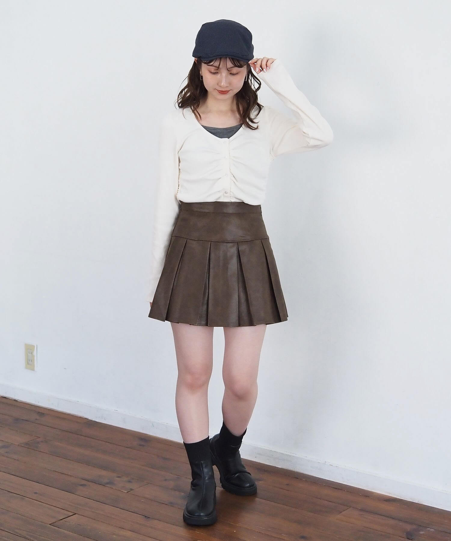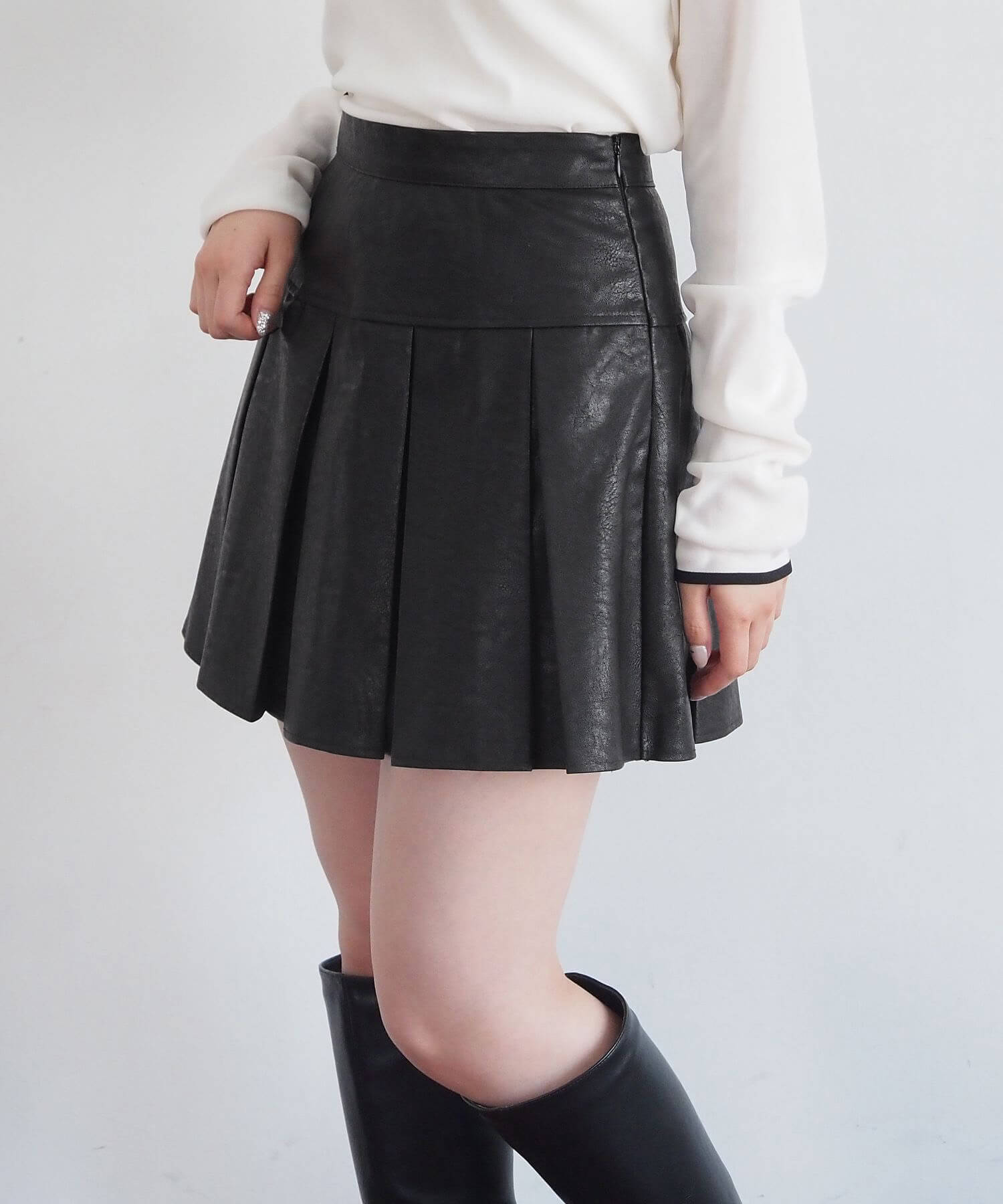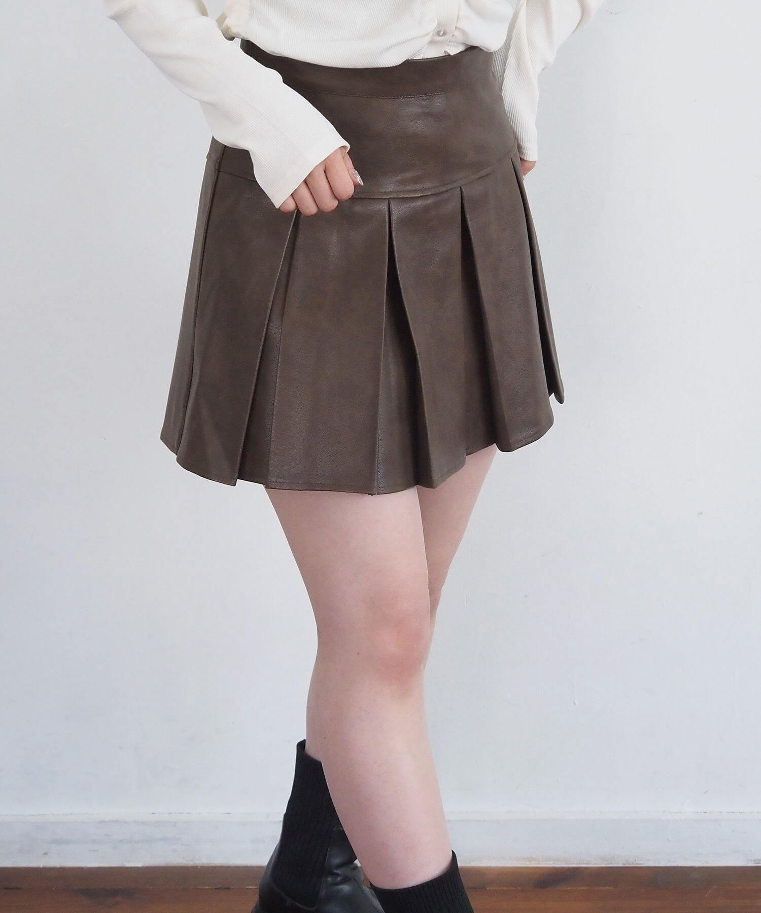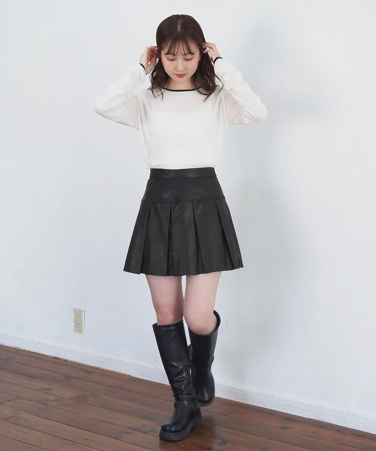 ・オーバーサイズのニットやパーカーからプリーツをチラ見せであざと可愛いコーディネートにも最適です。