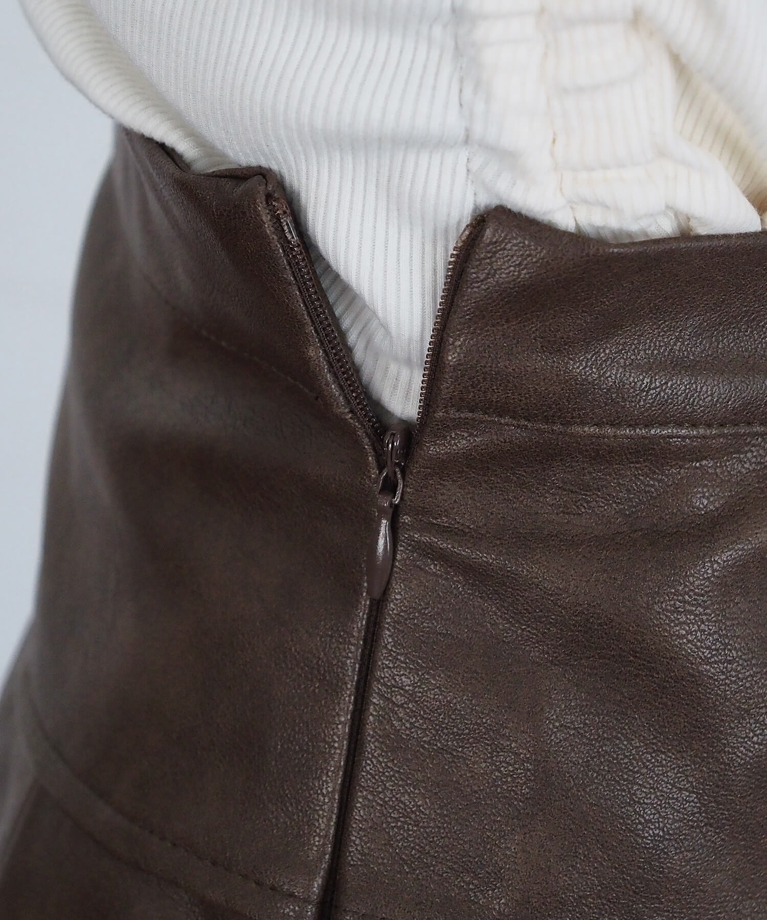 ・フィット感をアップさせるウェストゴム、デザインを邪魔しないコンシールファスナーでストレスフリーな履き心地です。