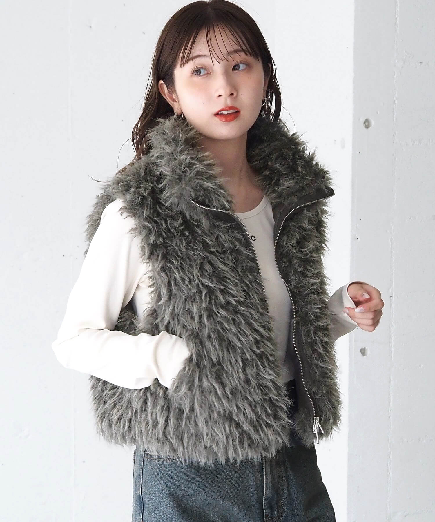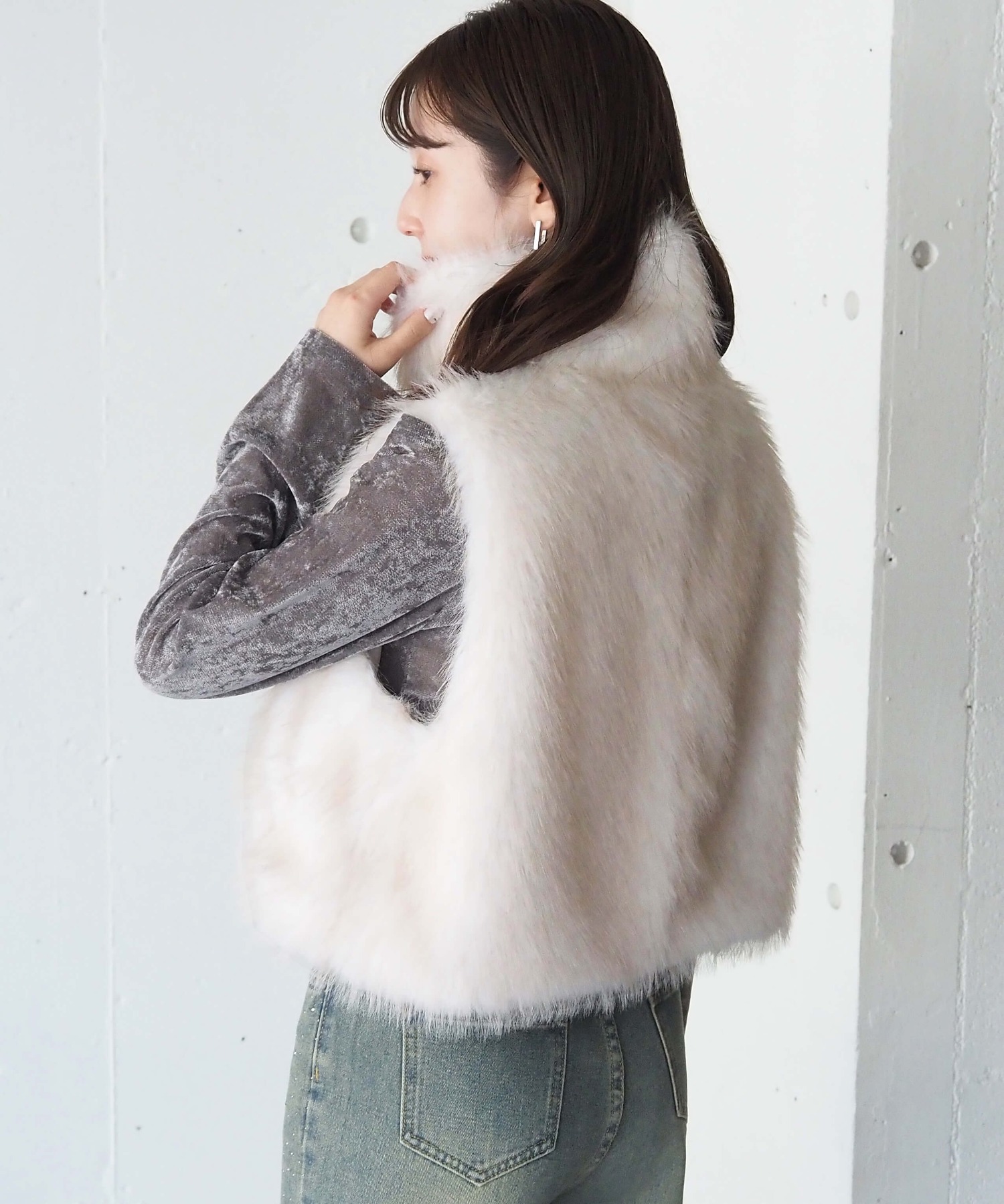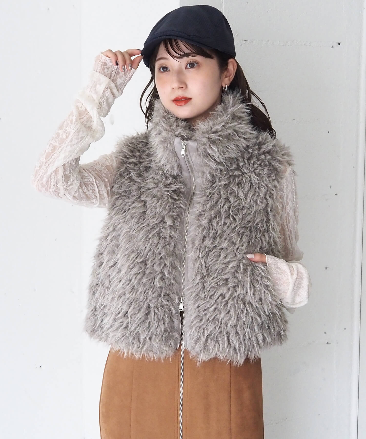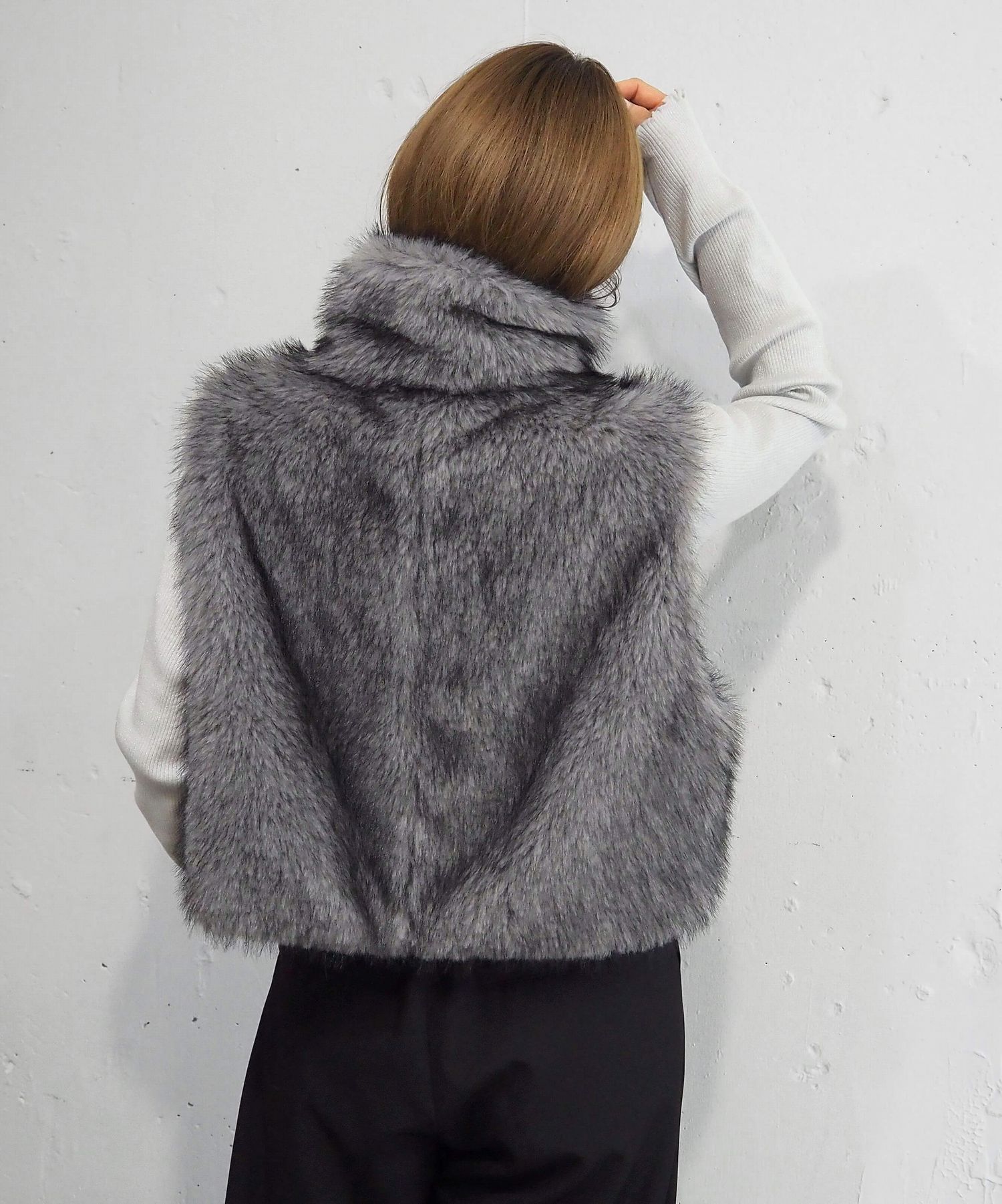 ・たっぷりのボリュームがが高見え間違いなしのフェイクファーベストです。