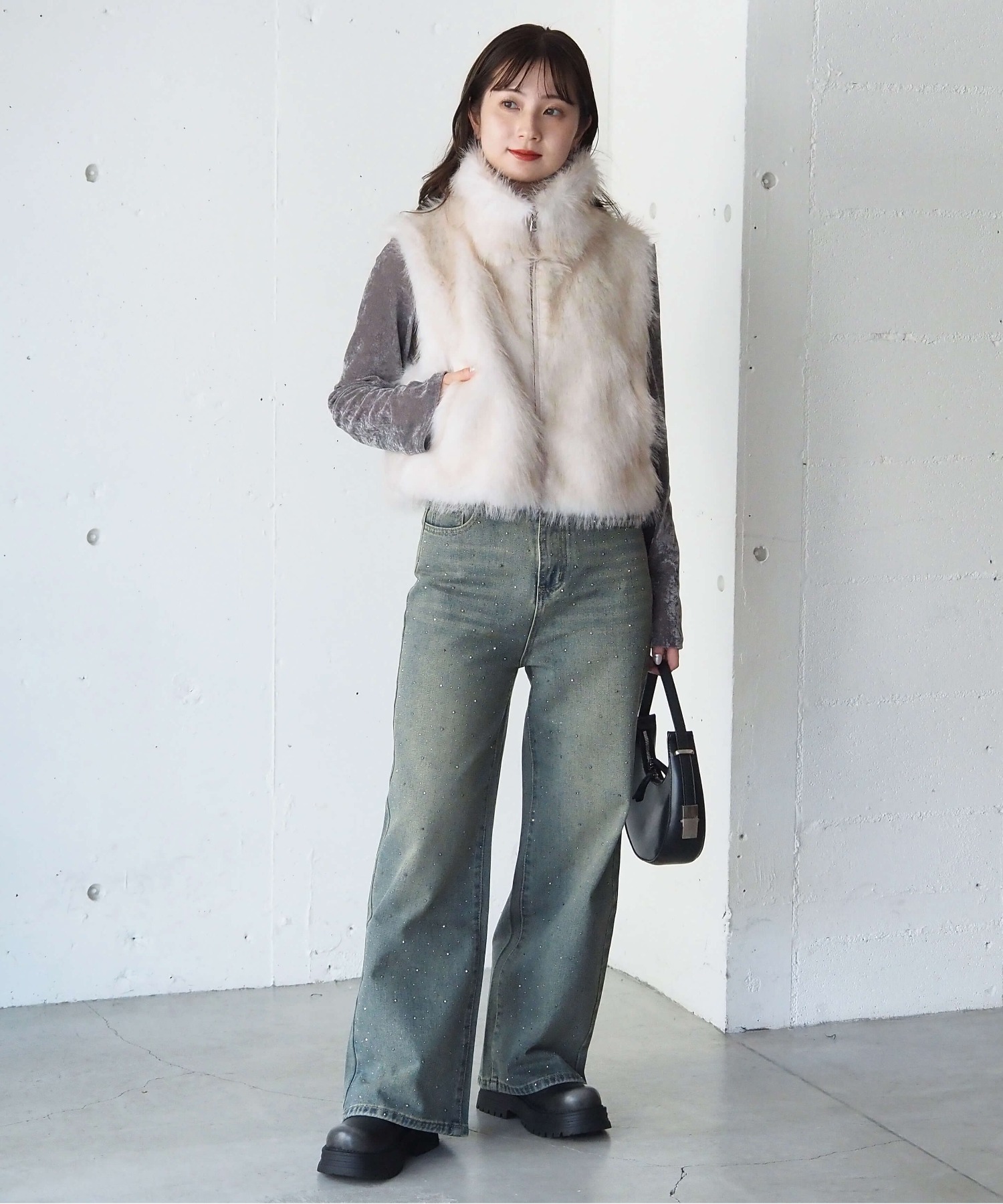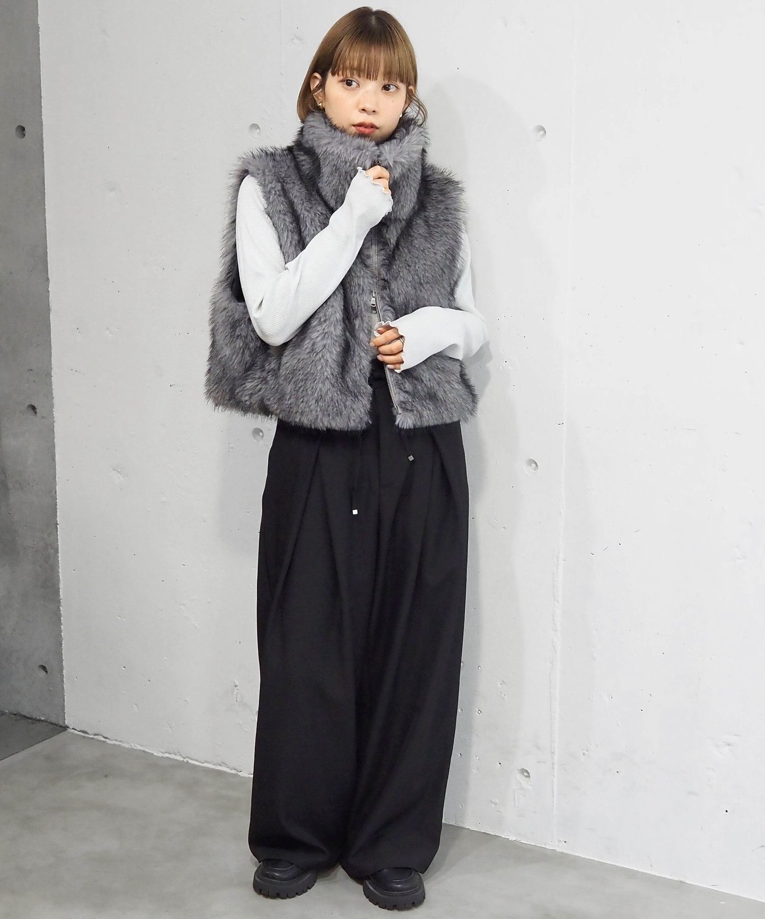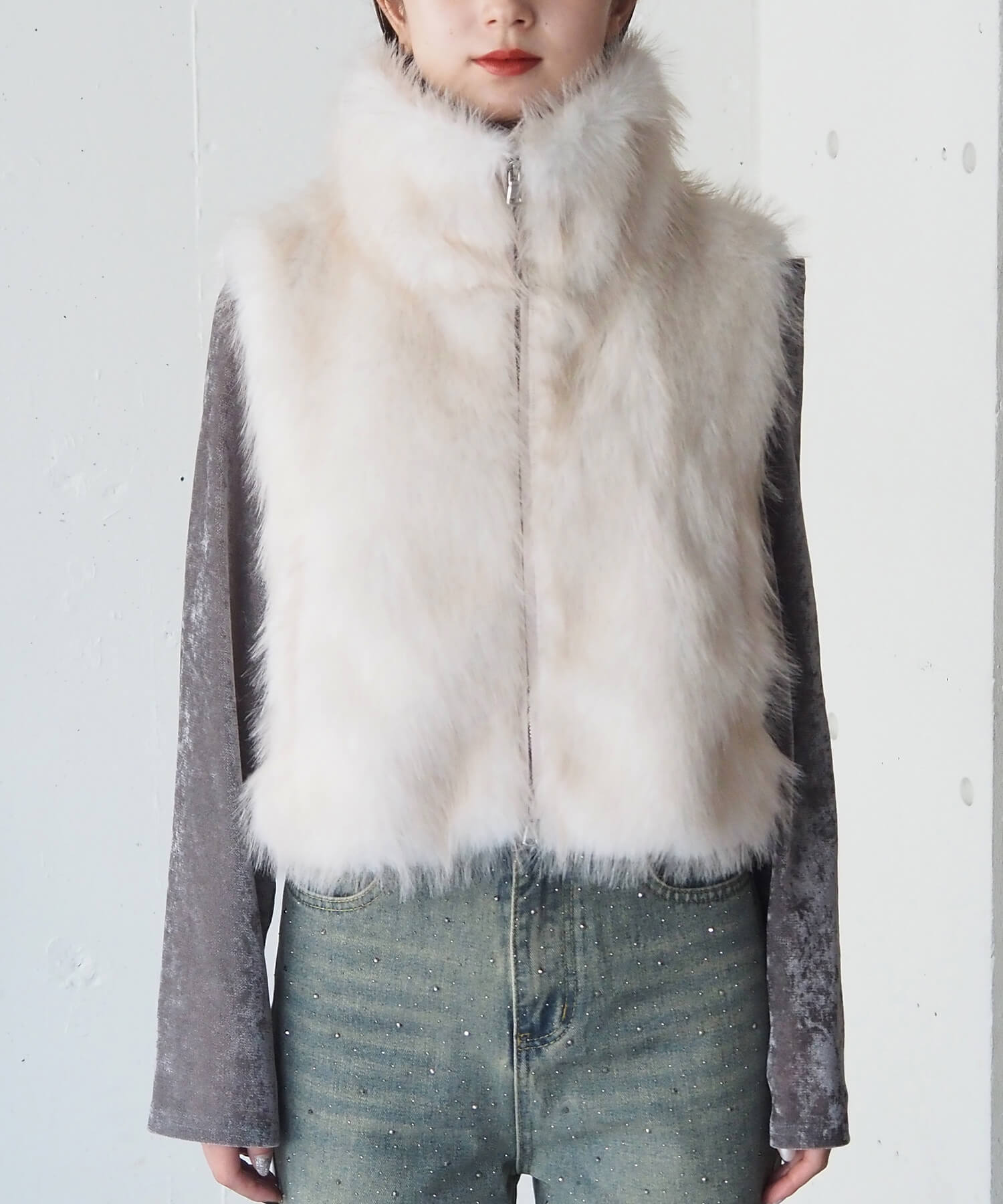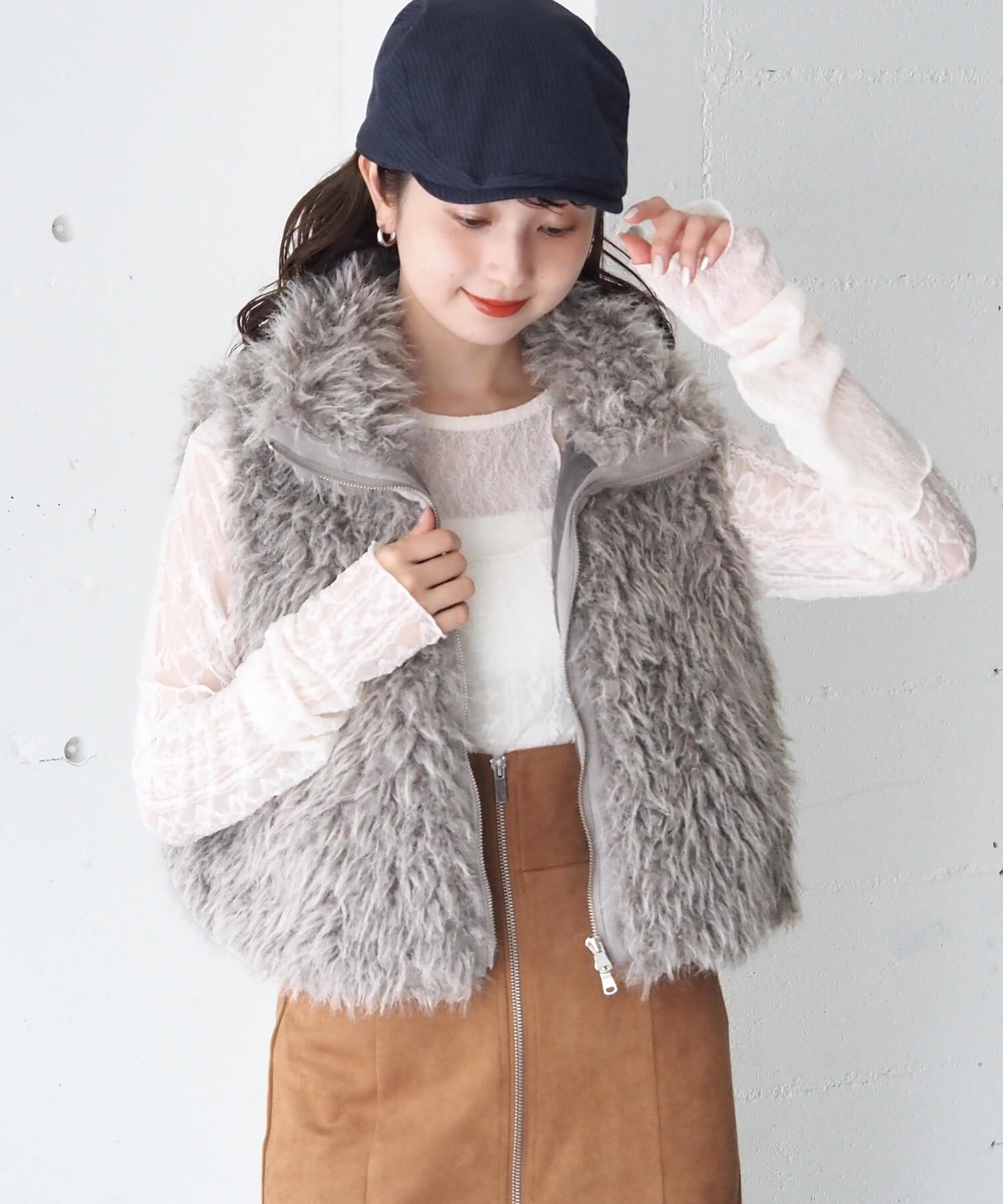 ・たっぷりのボリュームがが高見え間違いなしのフェイクファーベストです。