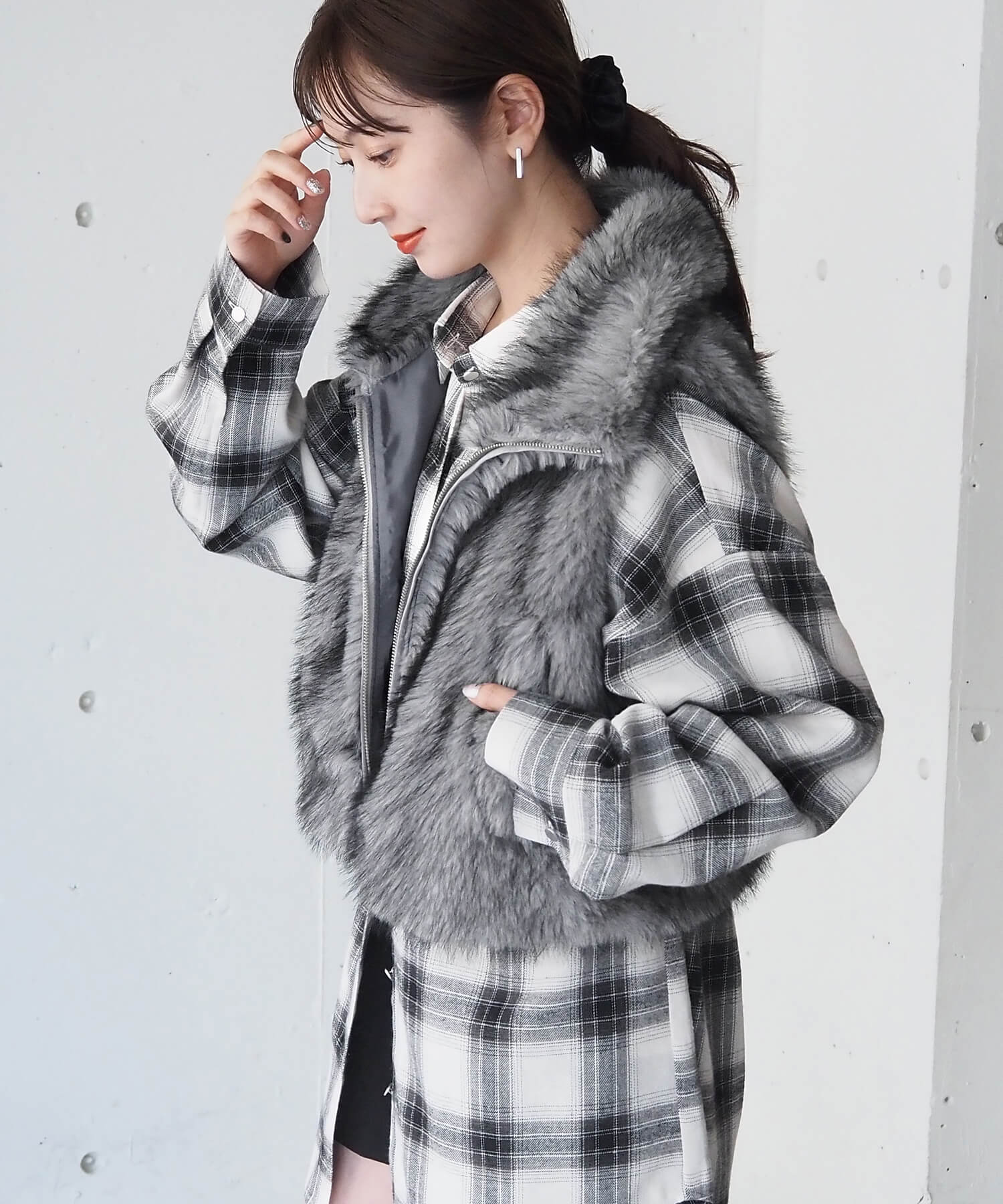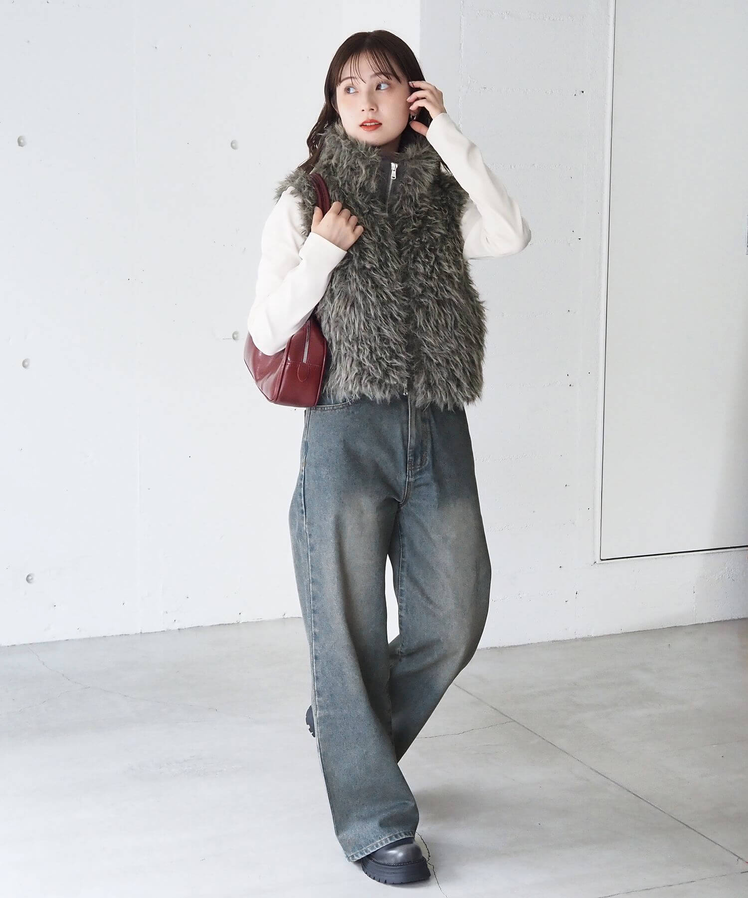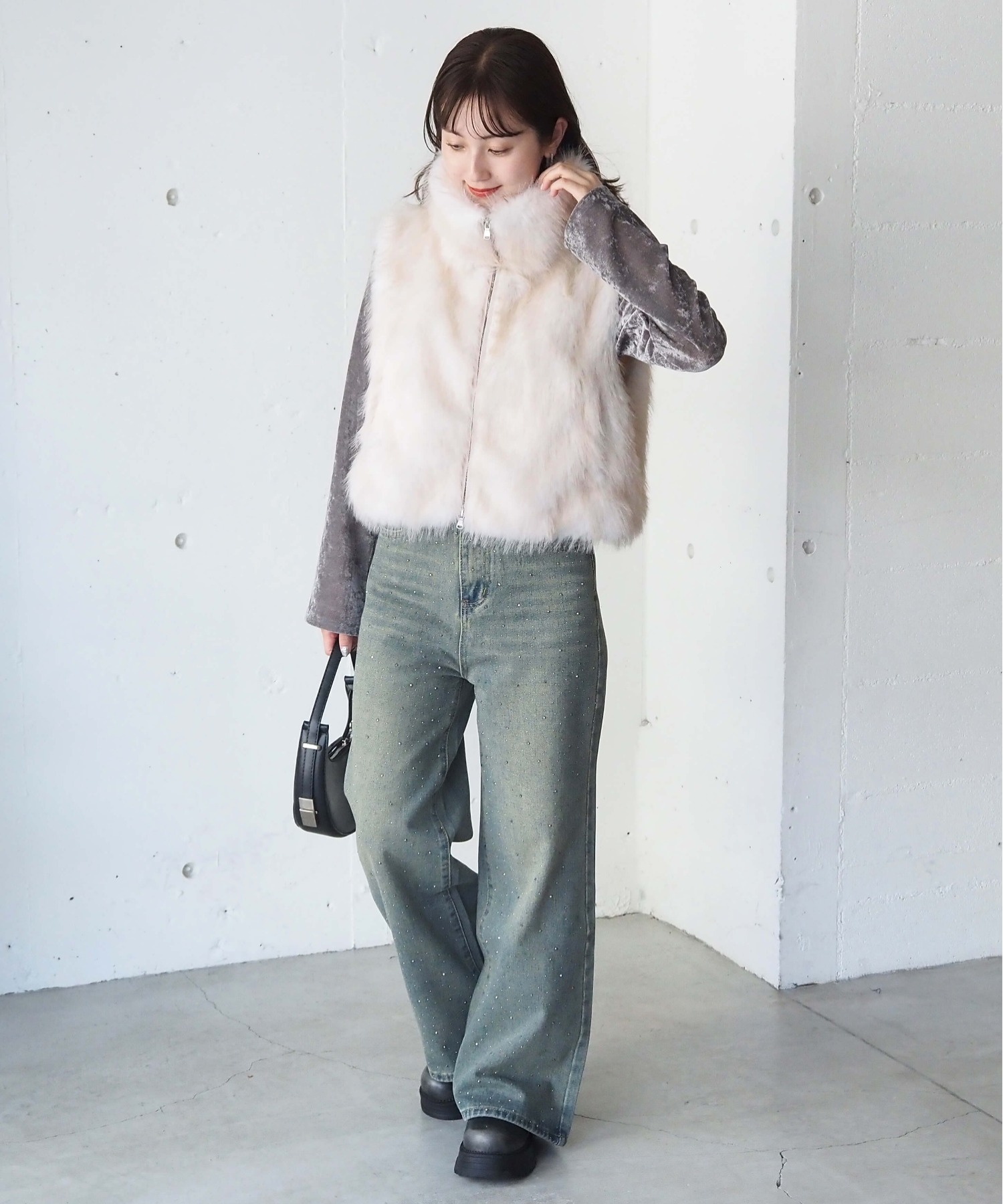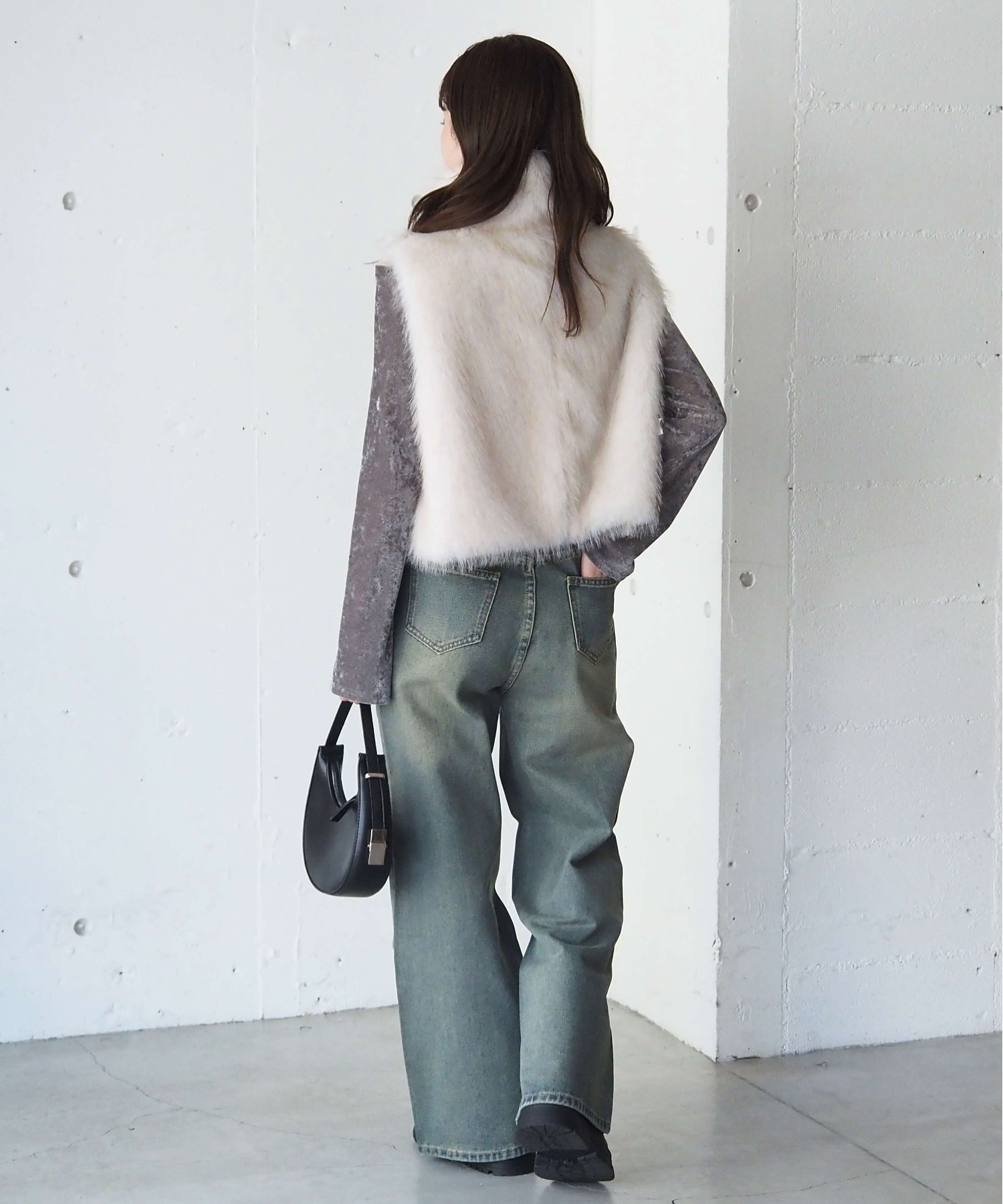 ・たっぷりのボリュームがが高見え間違いなしのフェイクファーベストです。