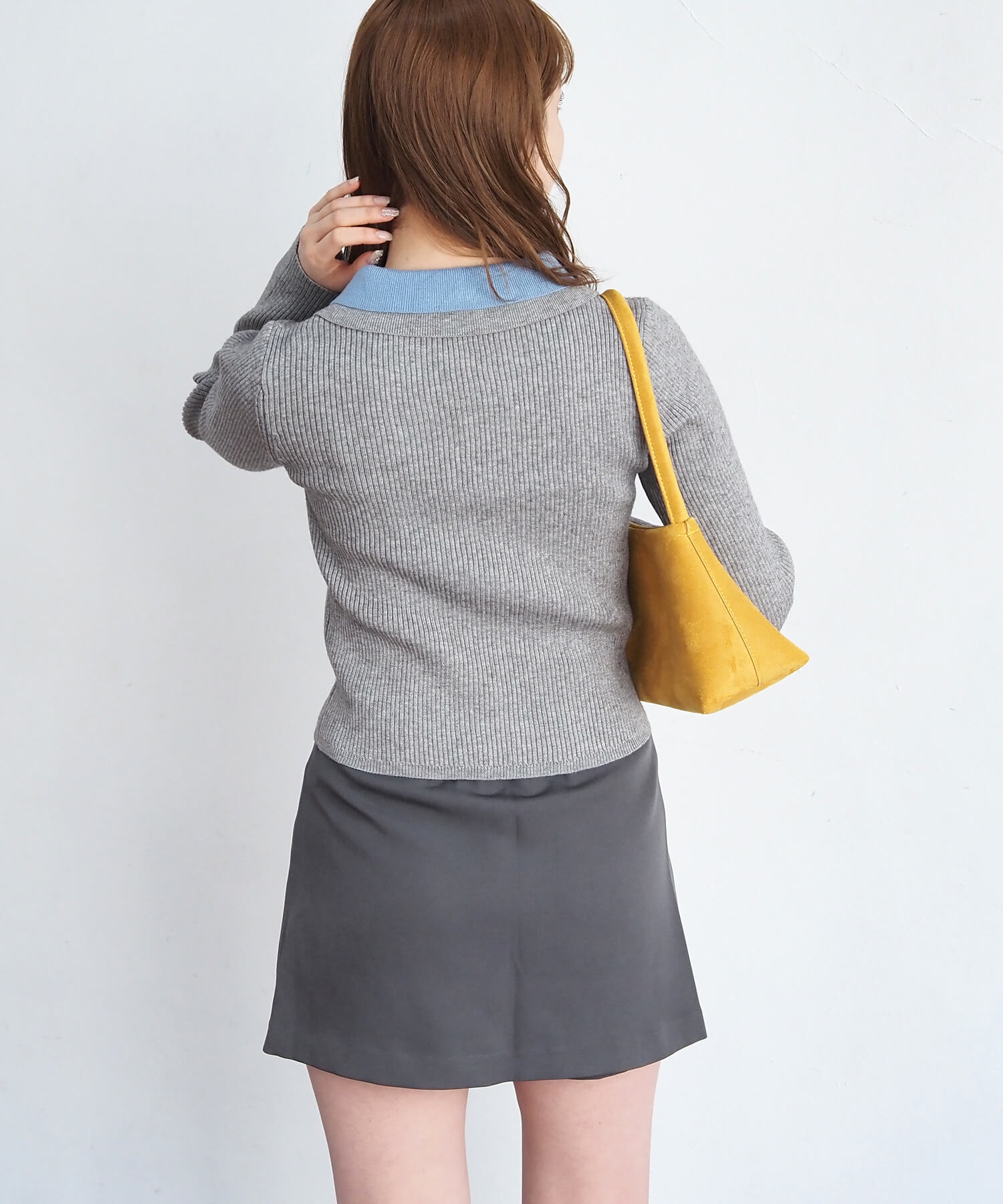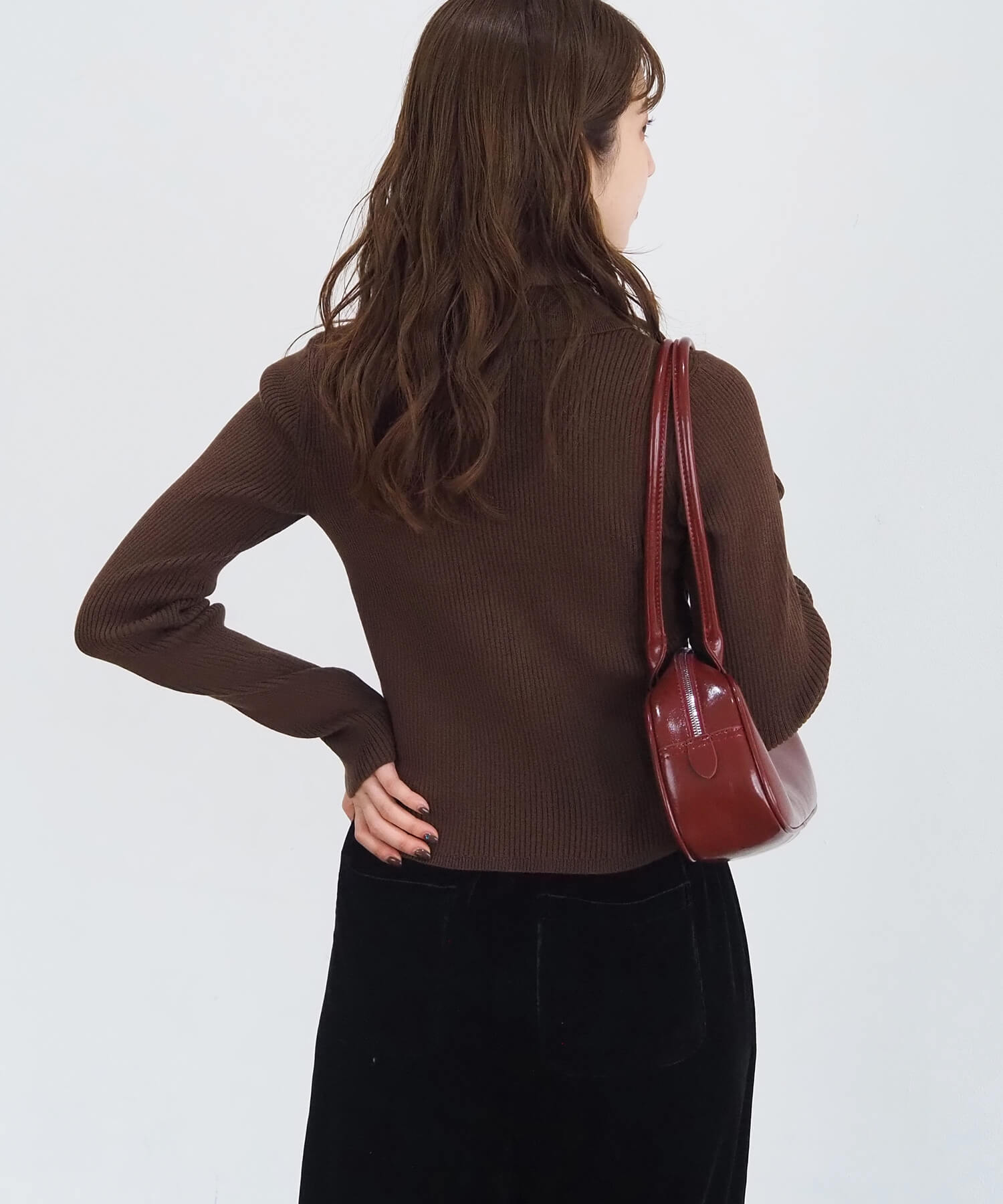 ・1枚でレイヤード風のコーディネートが完成するリブニットプルオーバーです。