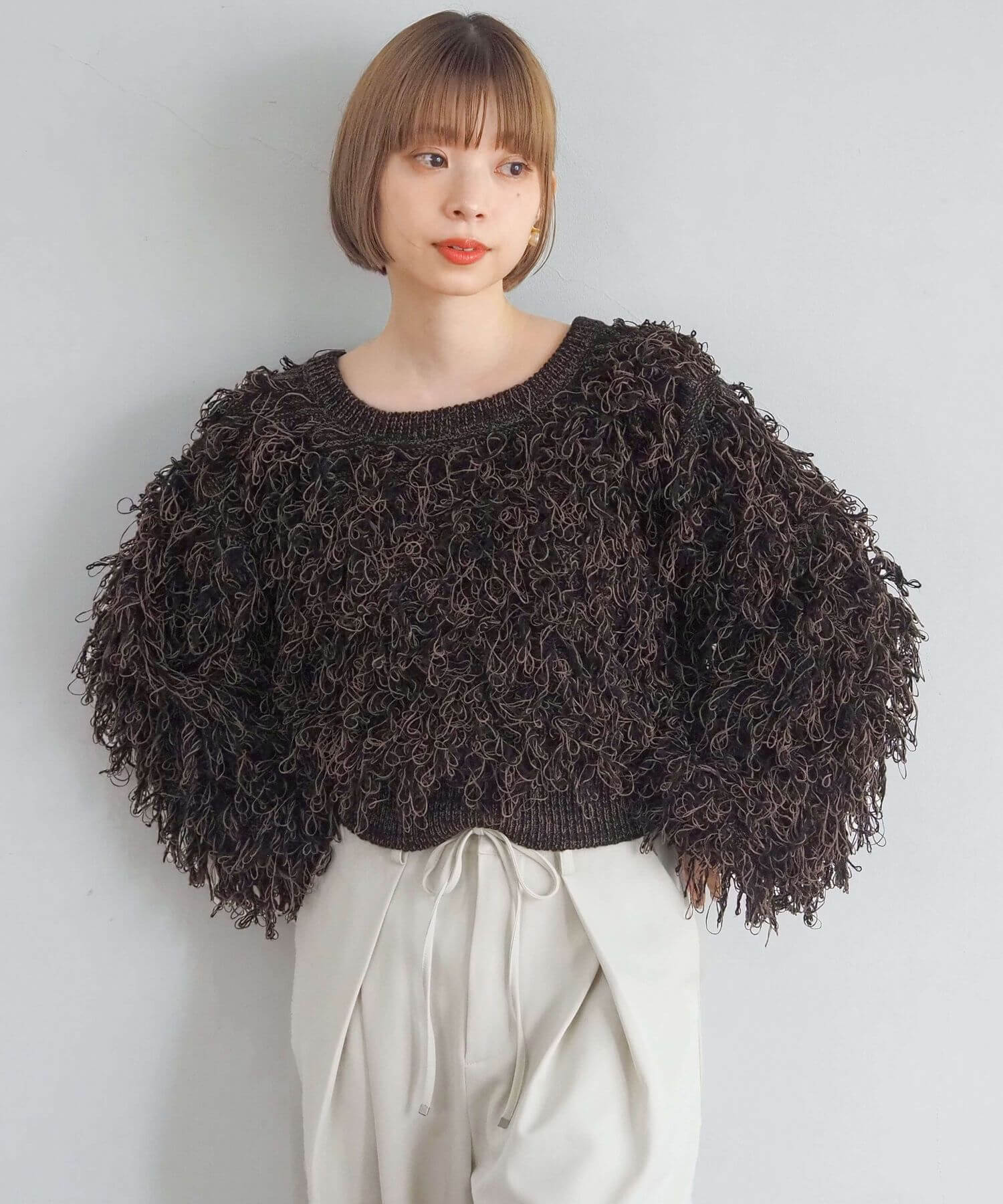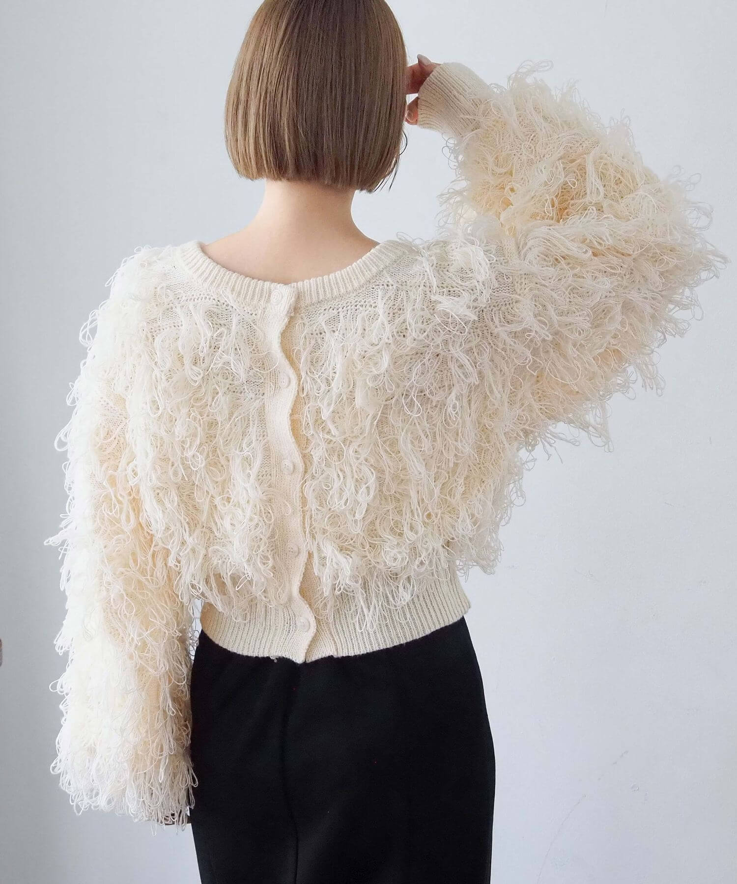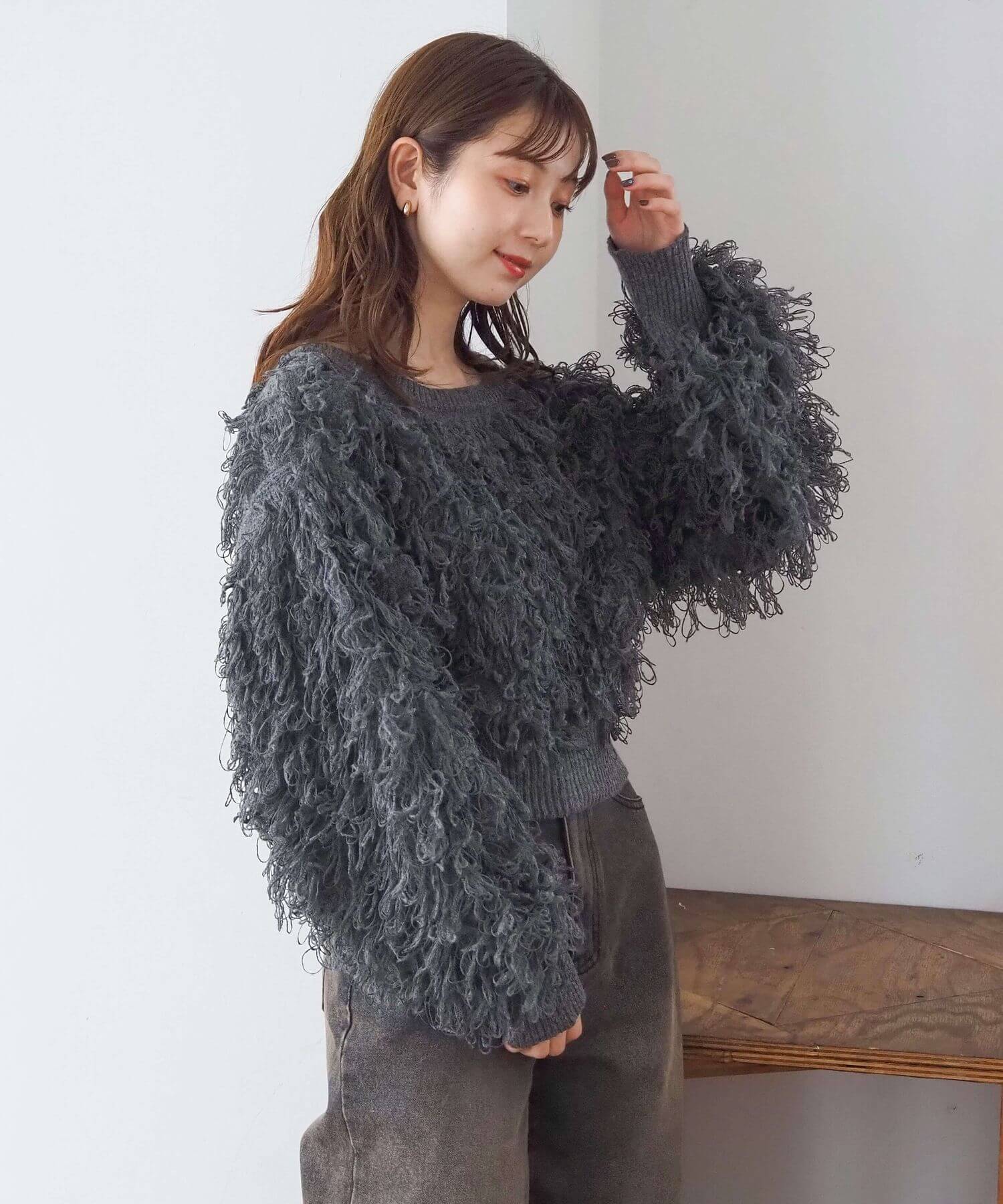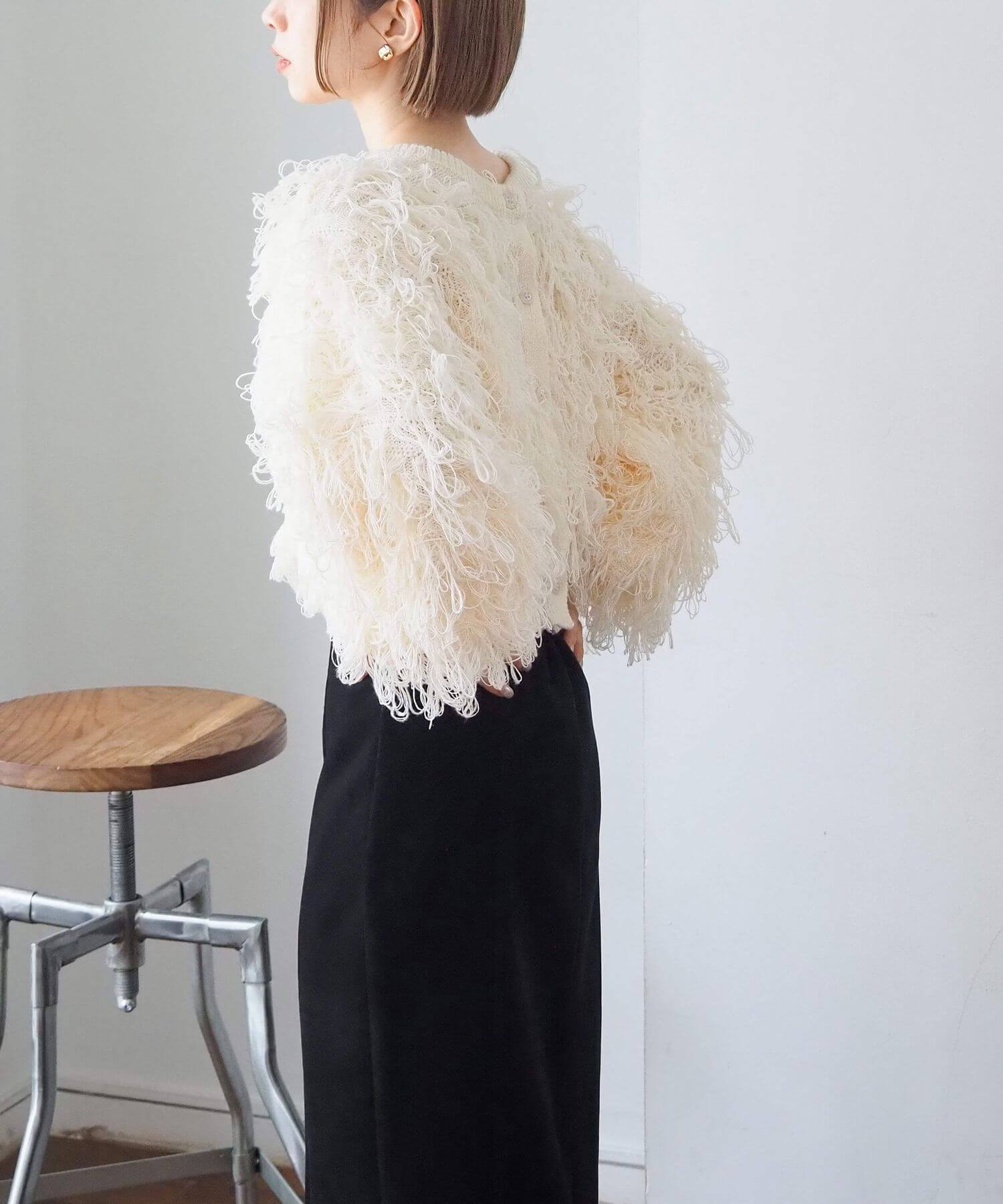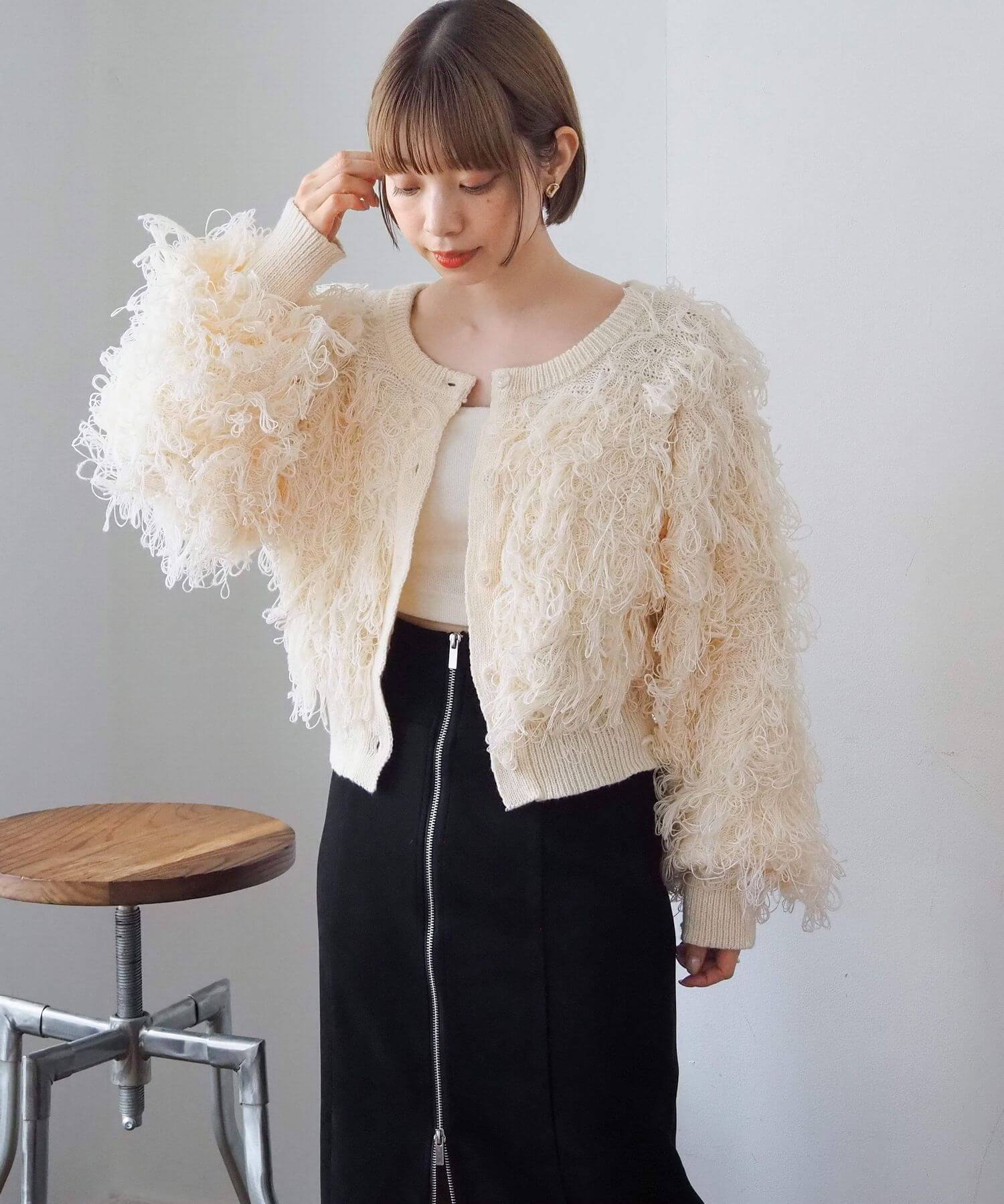 ・ループ状のフリンジが目を惹くボリュームのあるニットです。