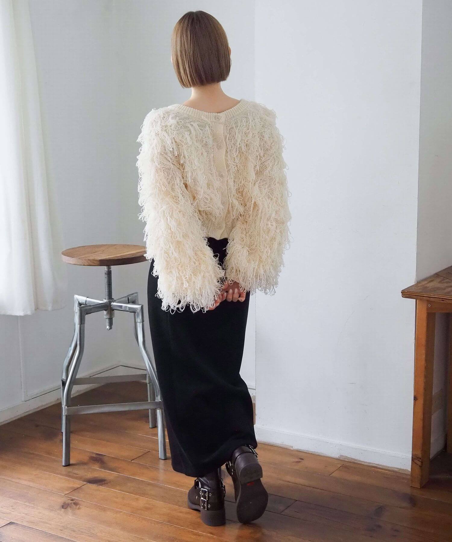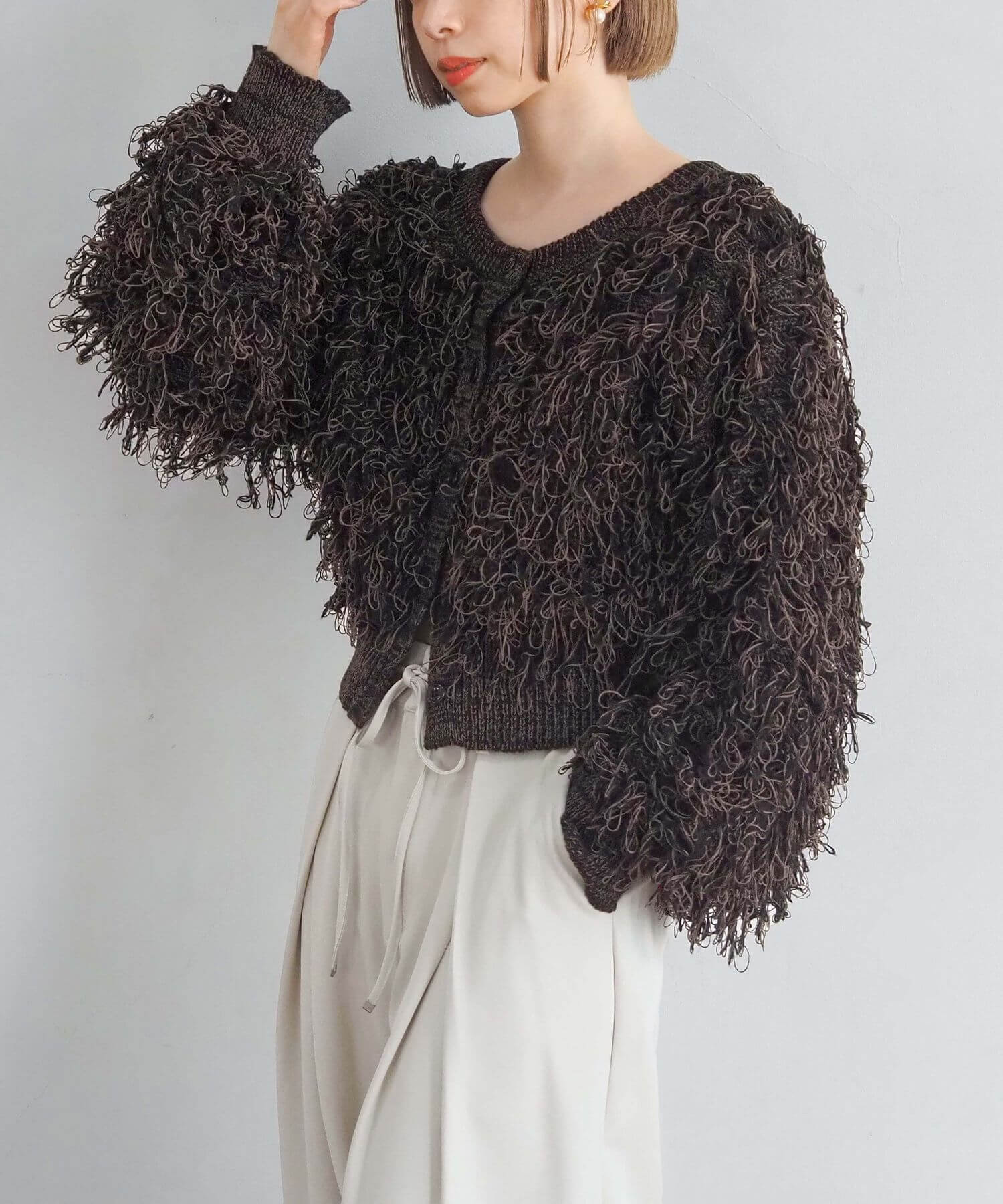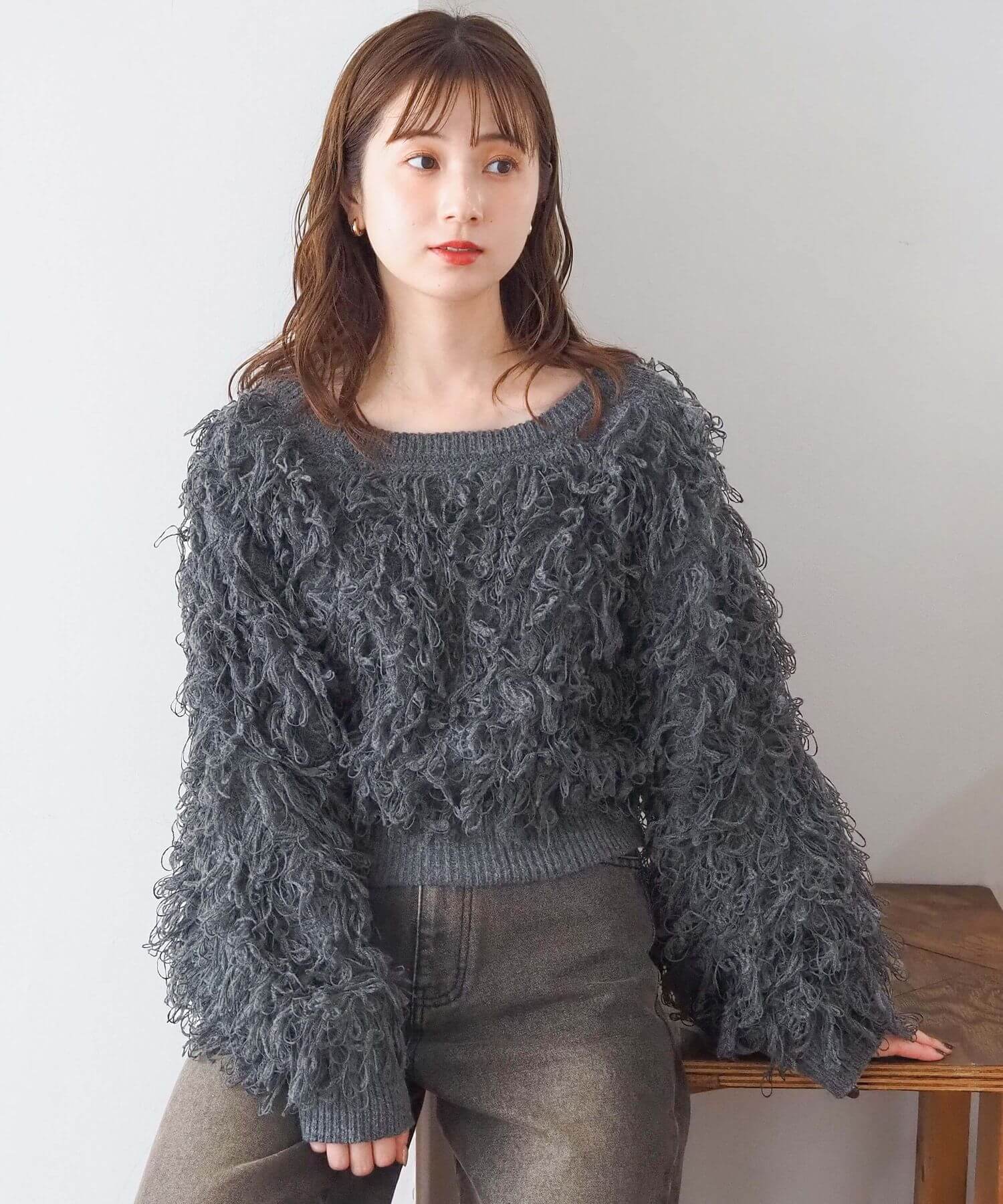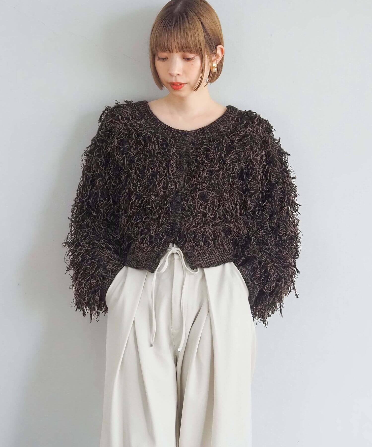 ・ループ状のフリンジが目を惹くボリュームのあるニットです。