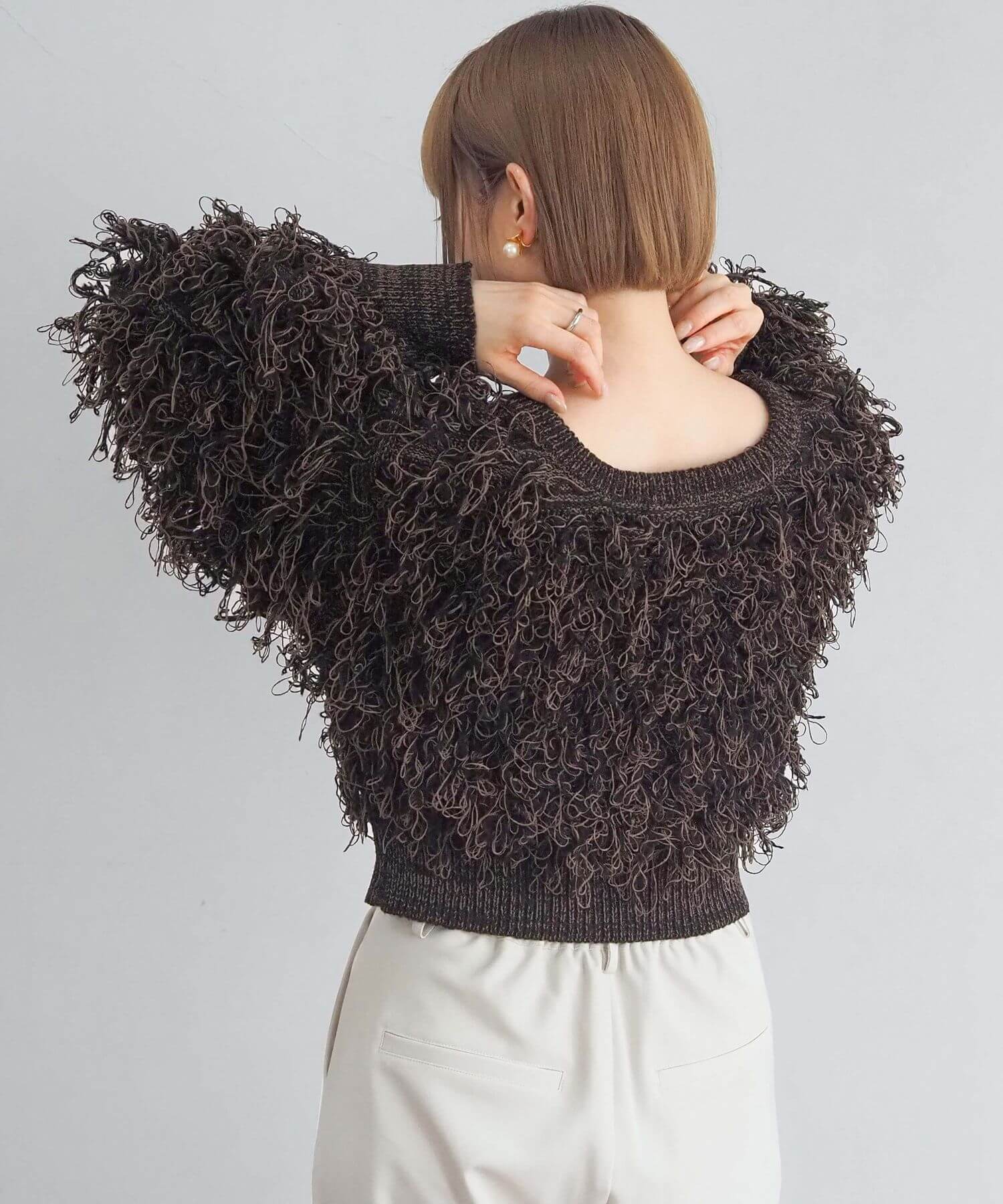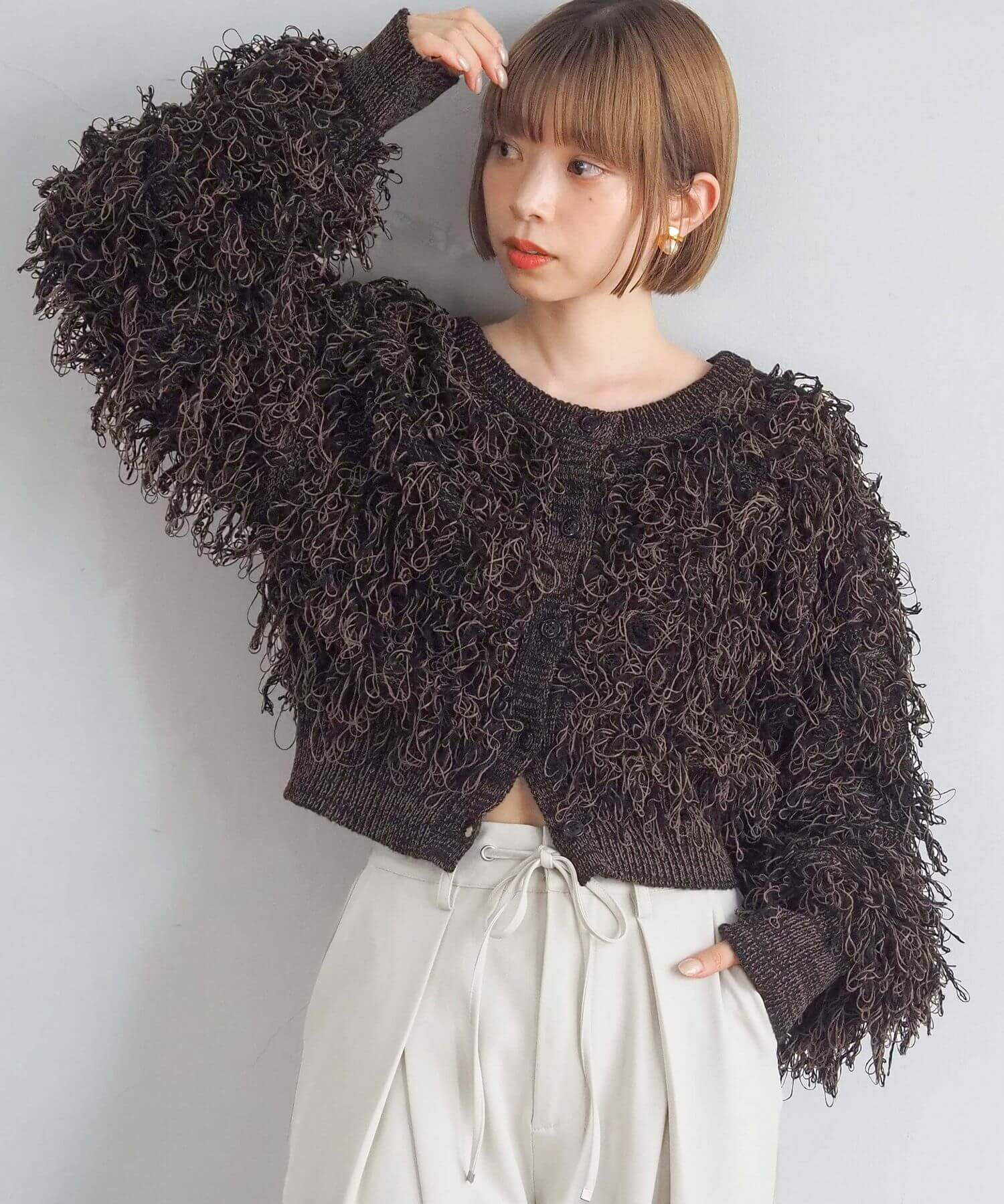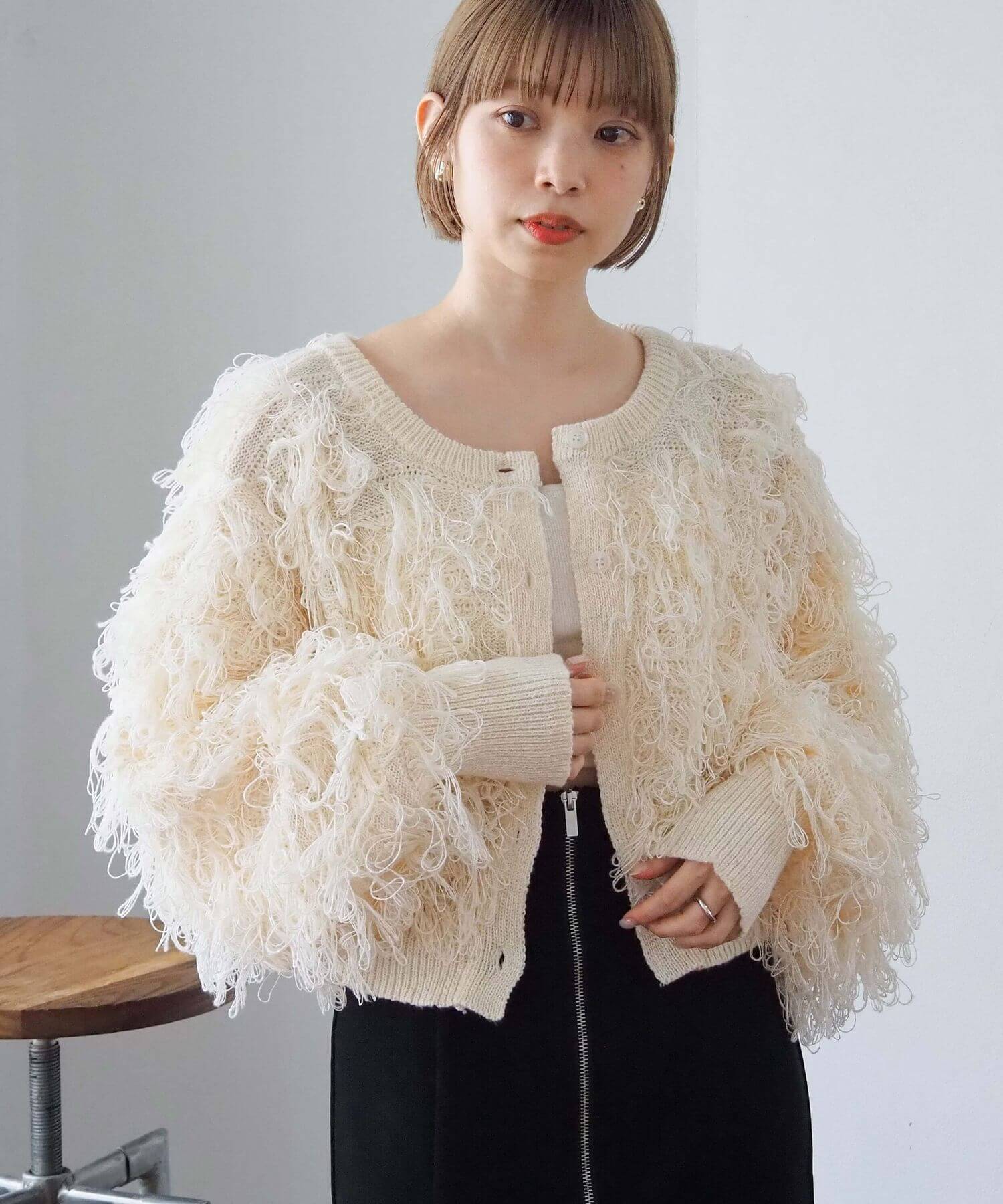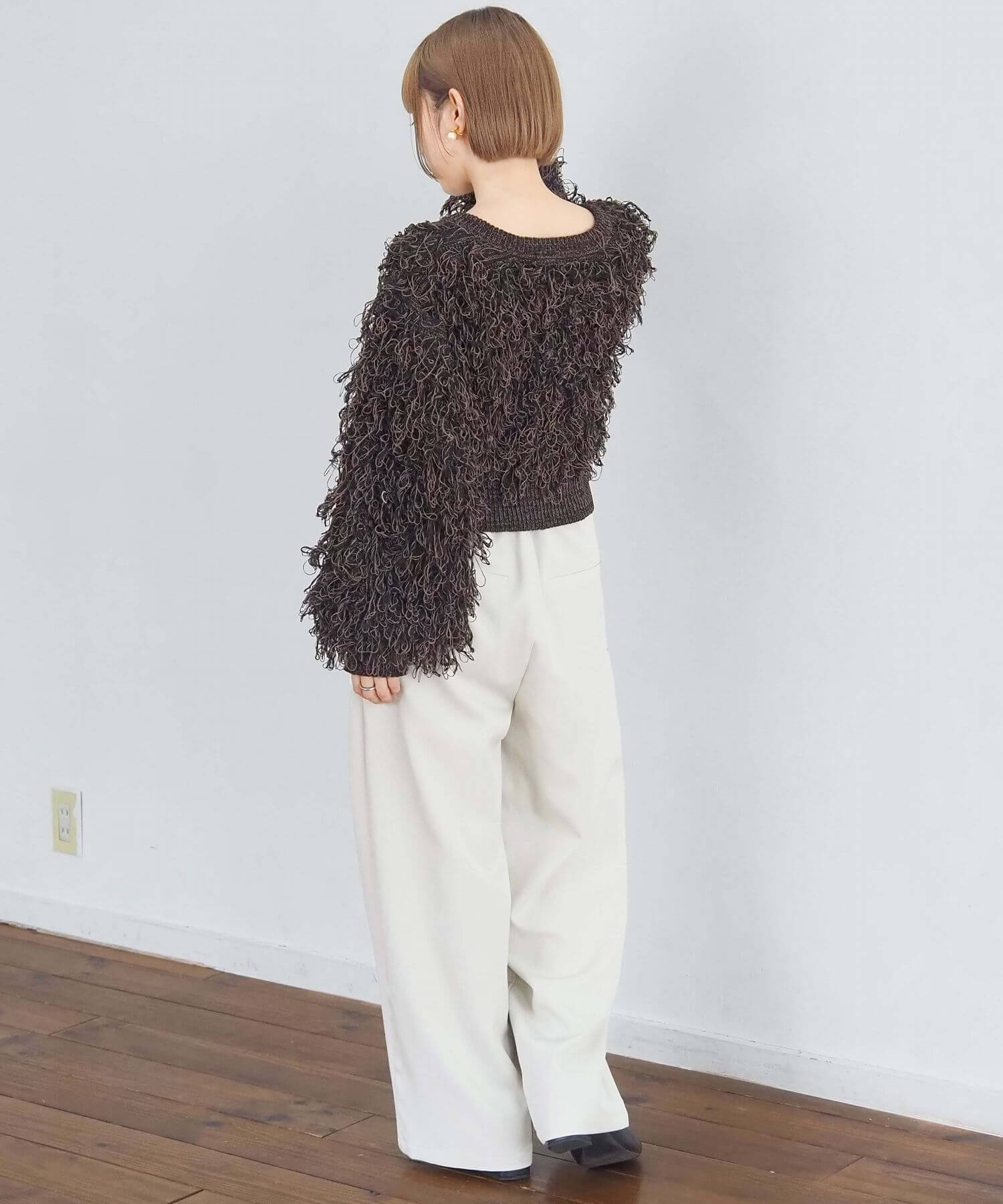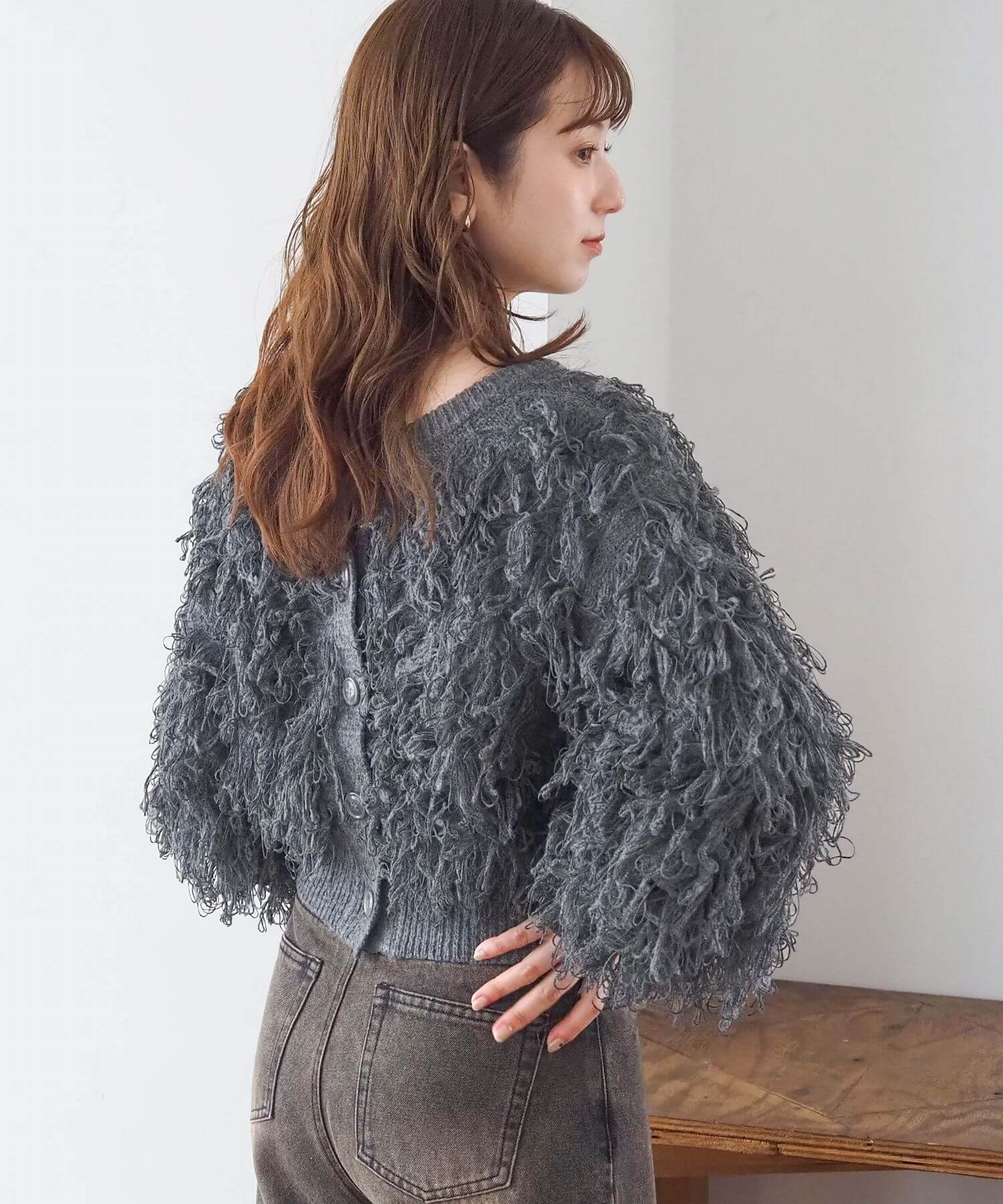 ・ループ状のフリンジが目を惹くボリュームのあるニットです。