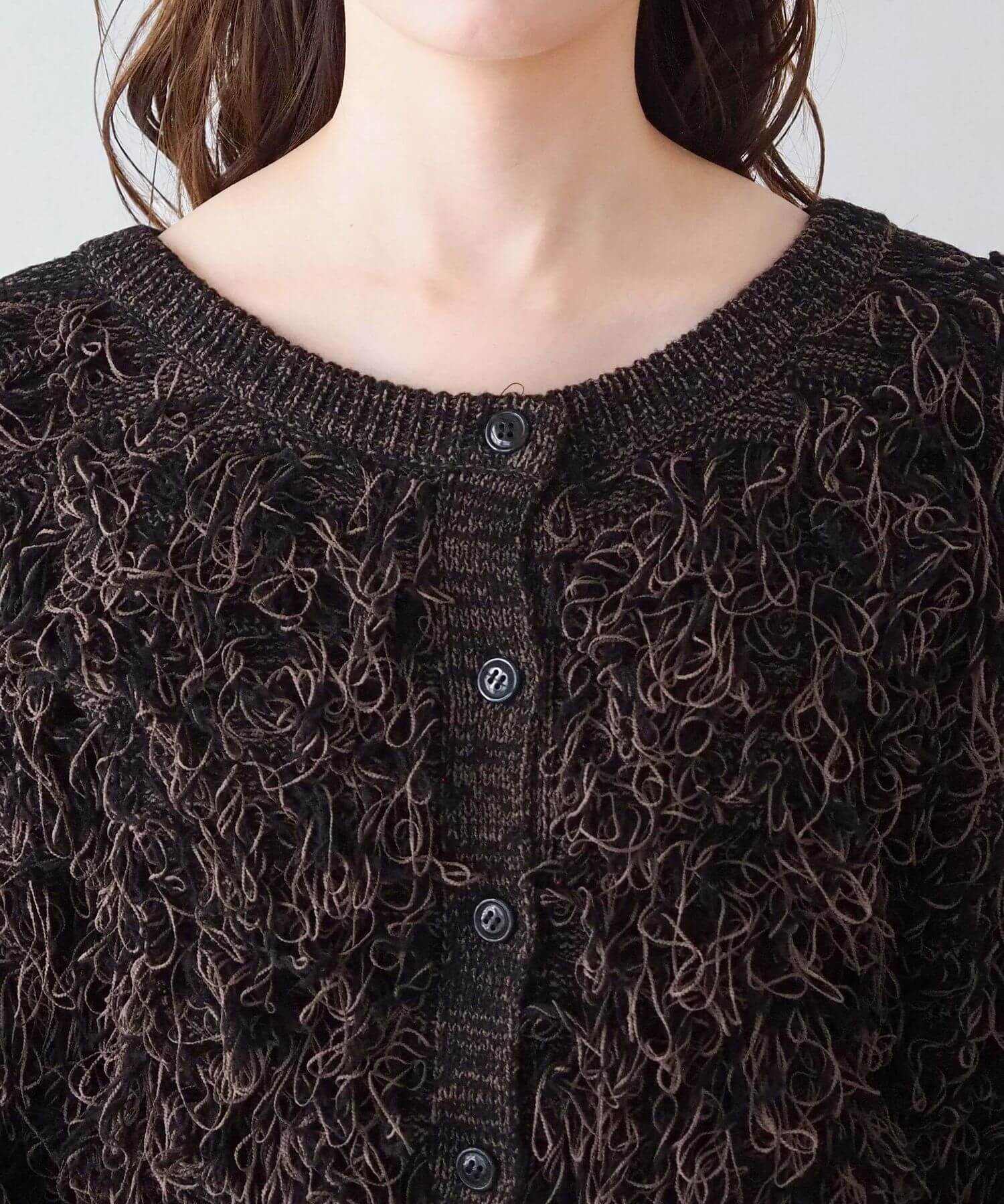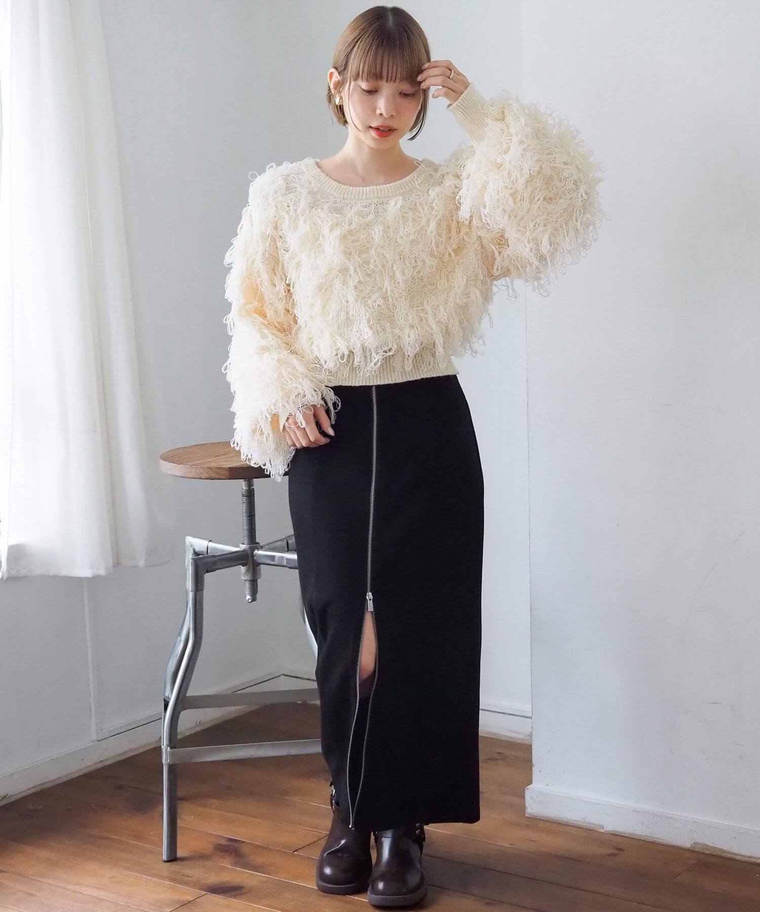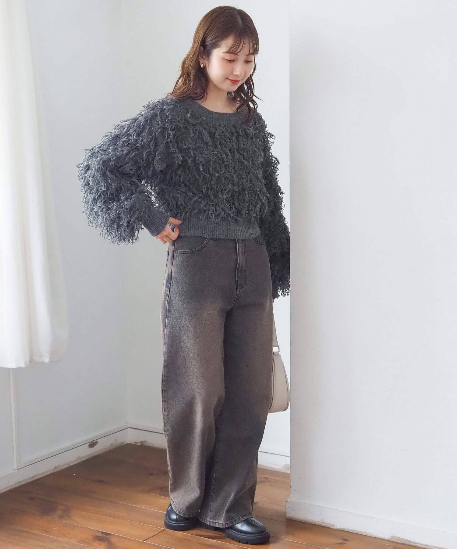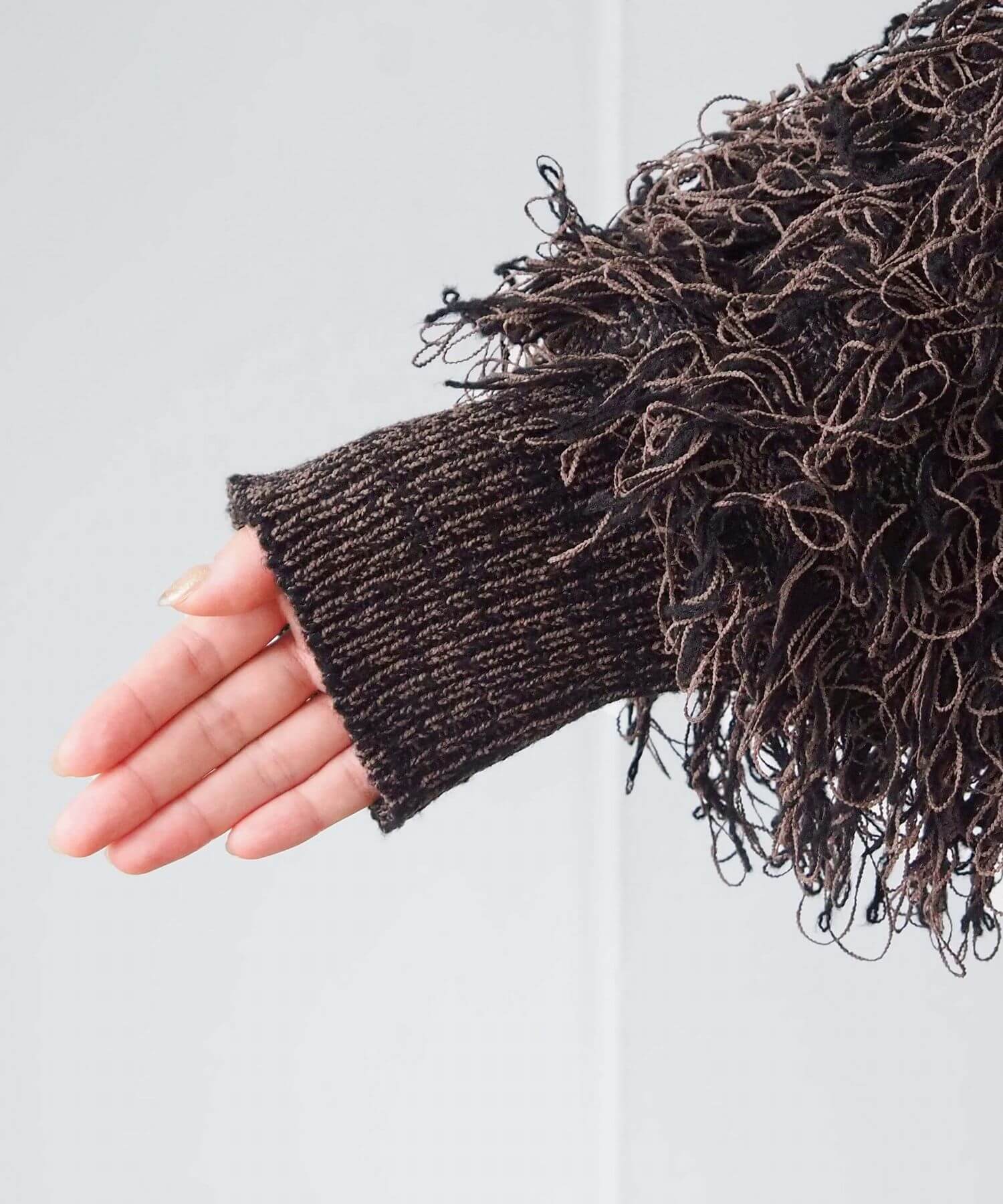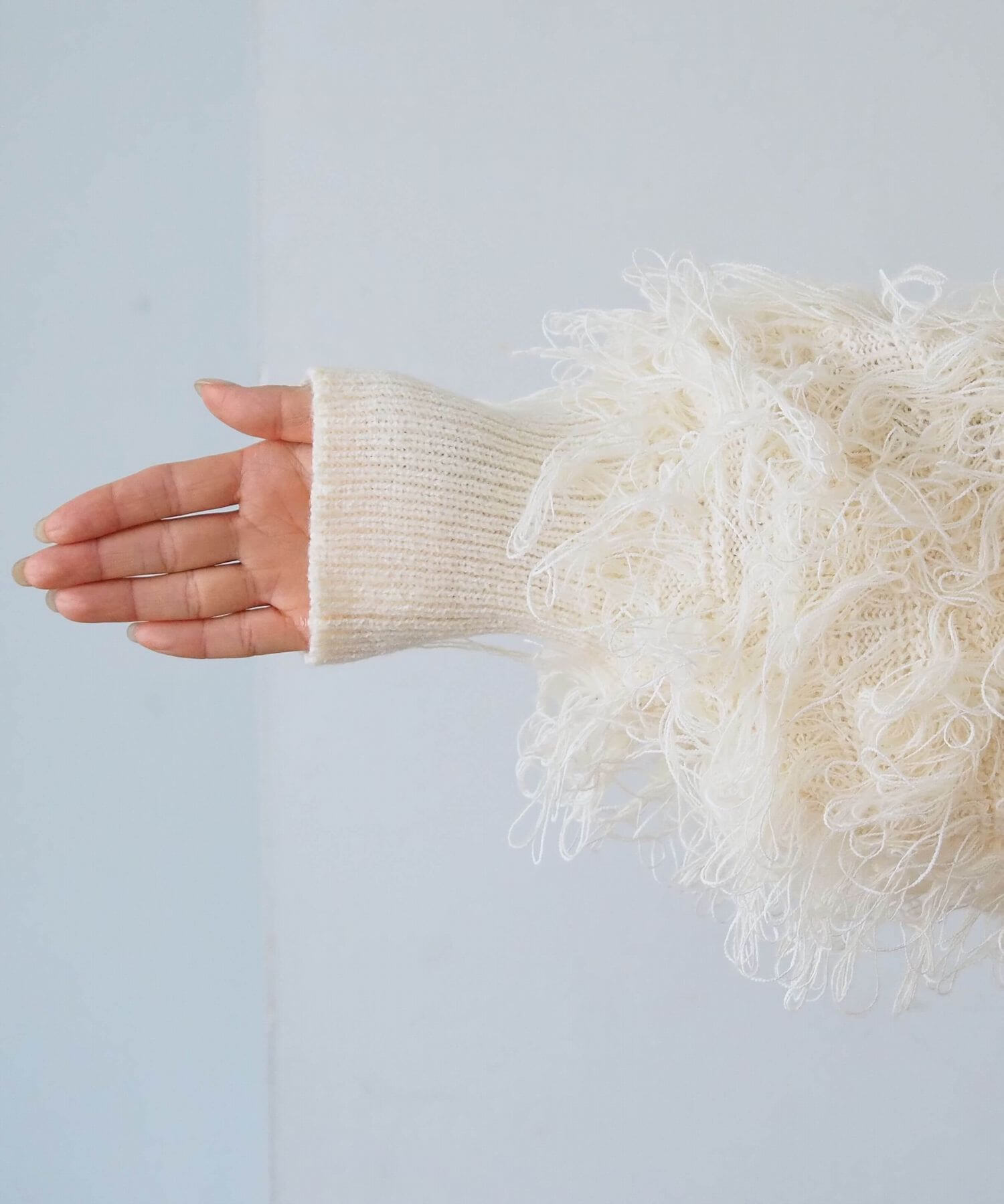 ・ループ状のフリンジが目を惹くボリュームのあるニットです。