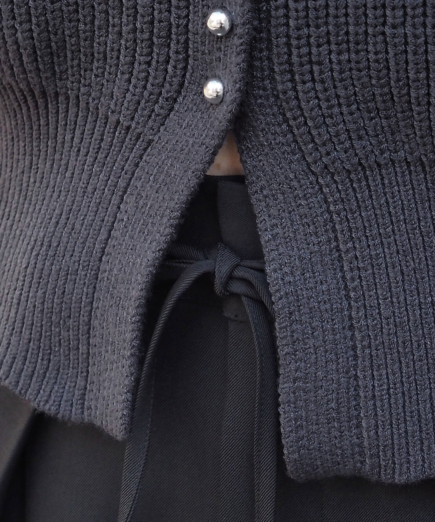 畦編メタル釦クルーカーディガン