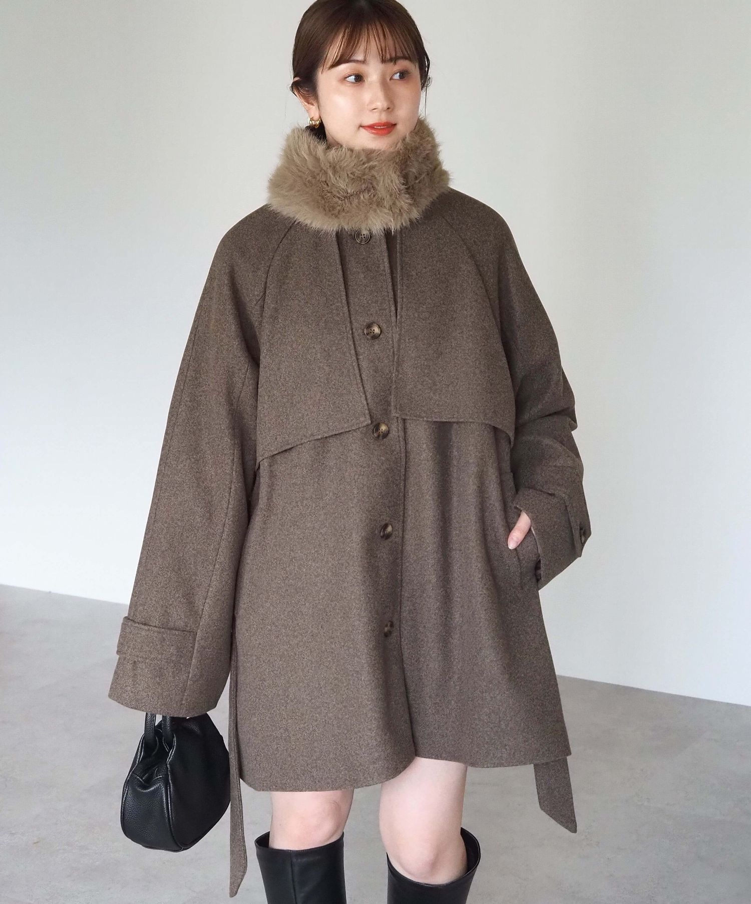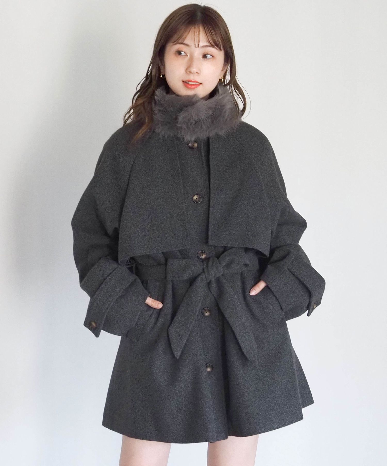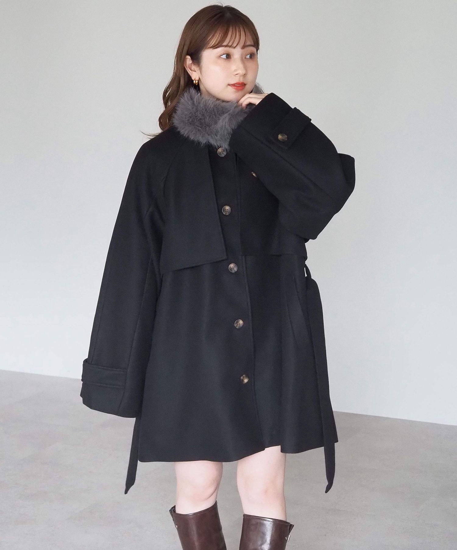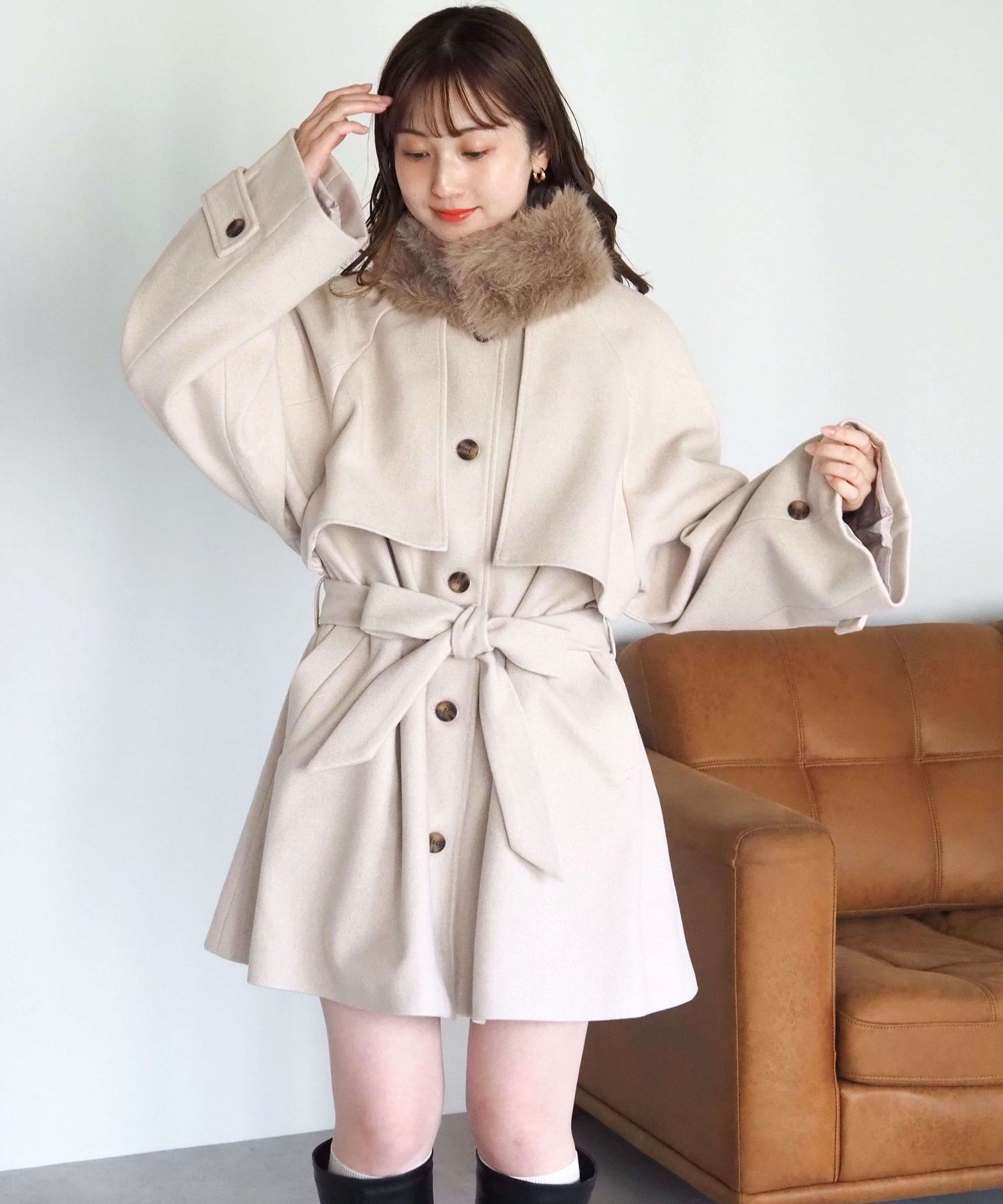 ・人気の「ミドル丈トレンチコート(品番:1360008076)」をベースに、ふわふわのファーティペットでさらに華やかで暖かくなりました♪