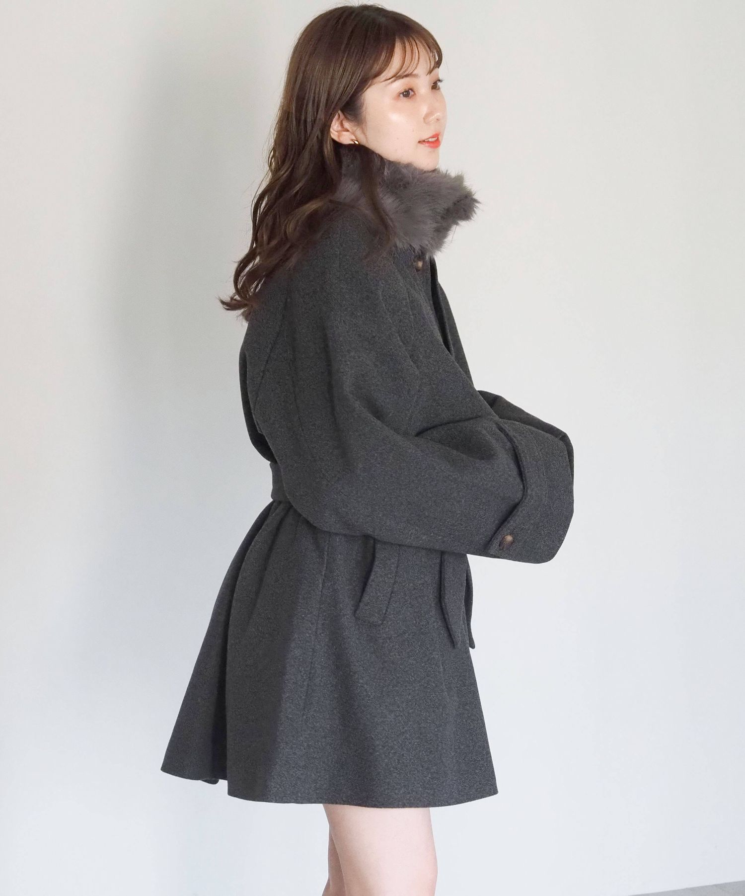 ファーティペット付ミドル丈トレンチコート