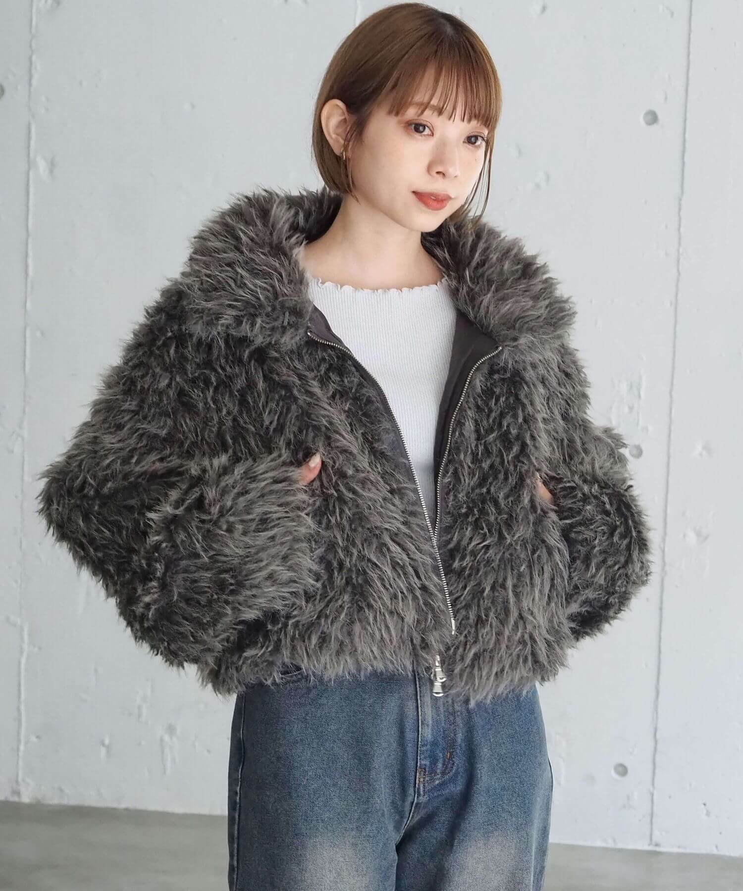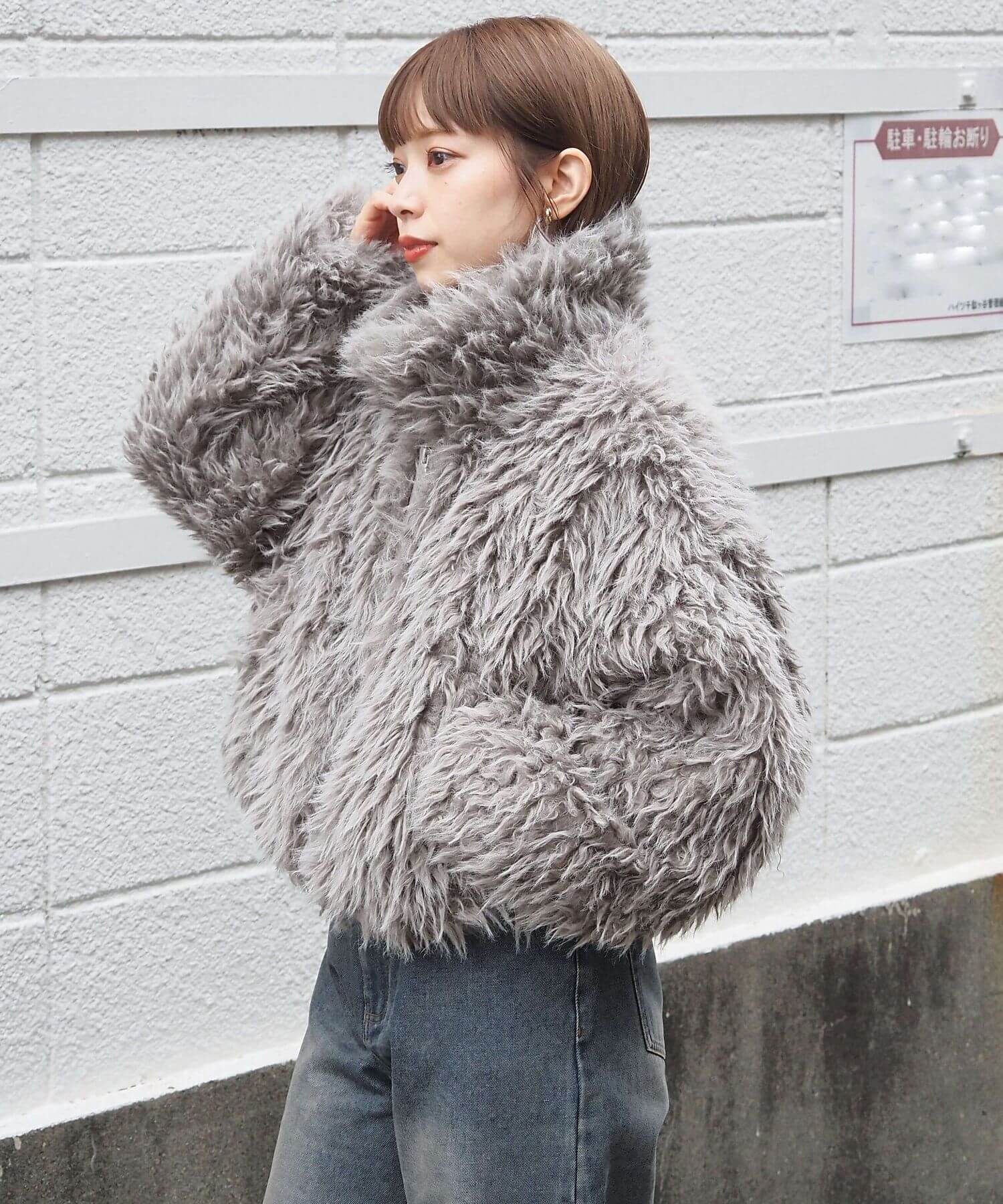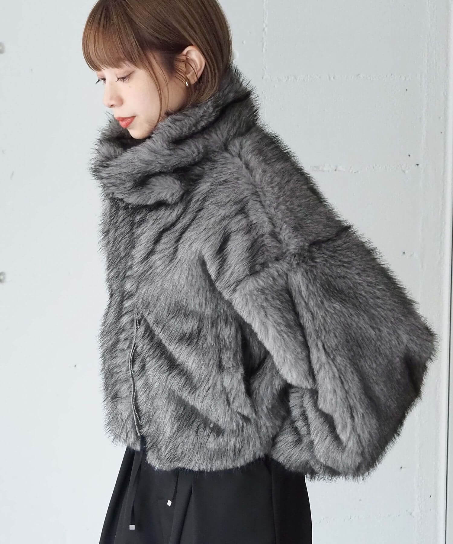 ・たっぷりのボリュームがが高見え間違いなしのフェイクファーブルゾンです。