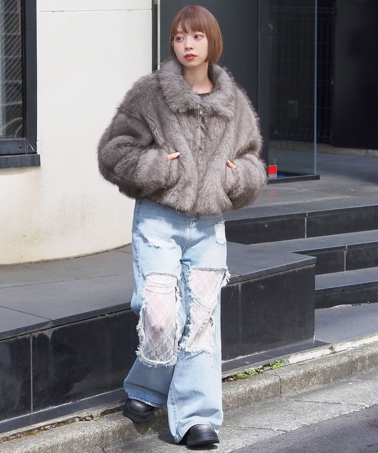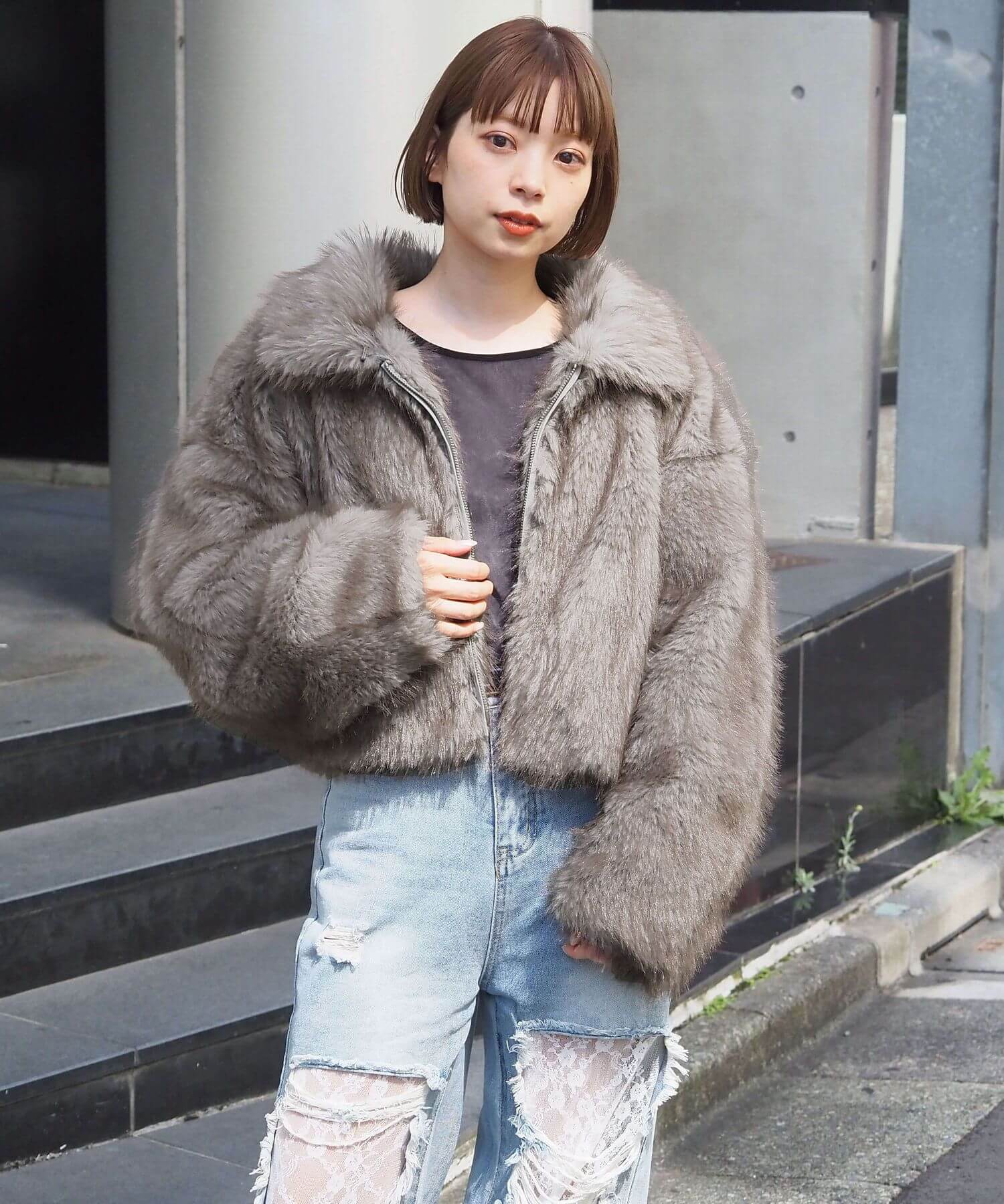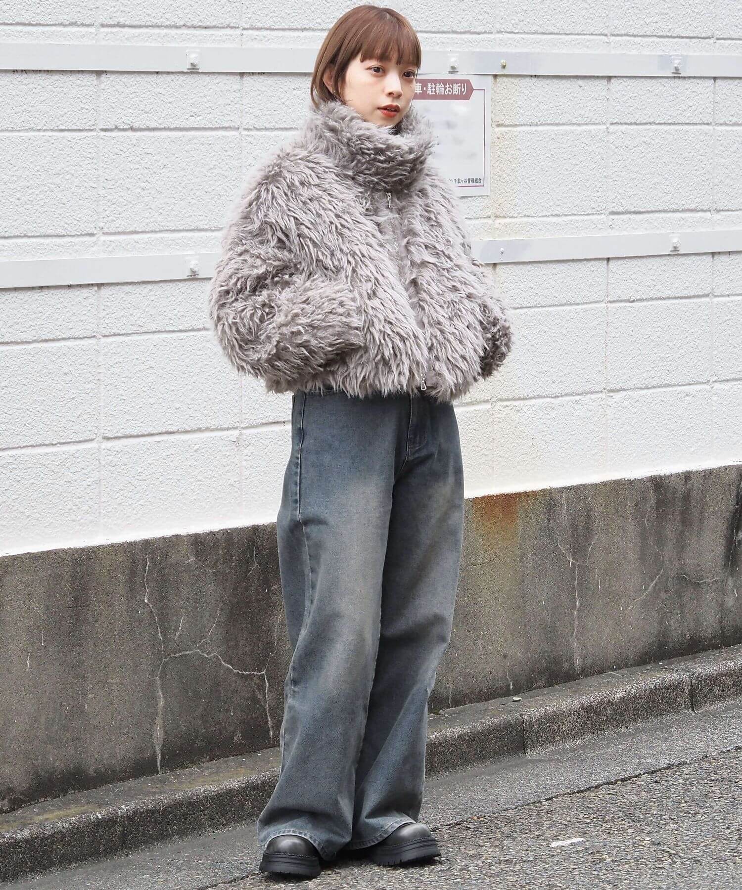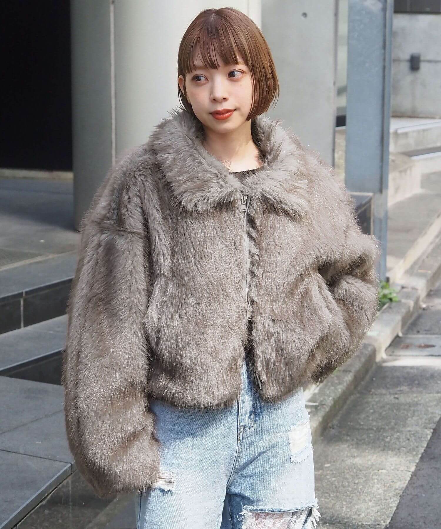 ・たっぷりのボリュームがが高見え間違いなしのフェイクファーブルゾンです。