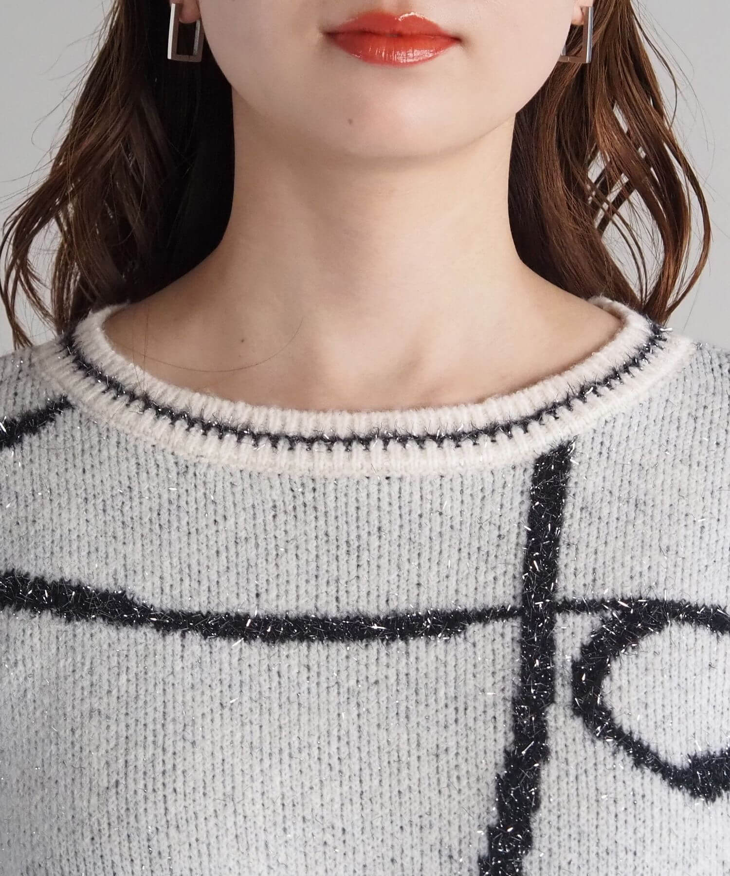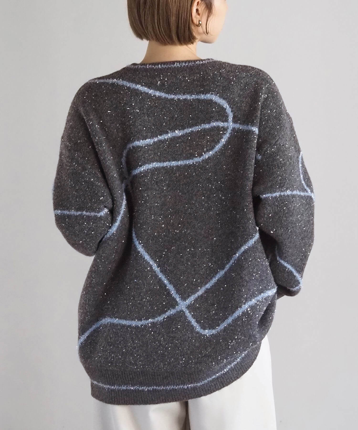 ・シルバーのラメ糸を混ぜ込んだ程よいキラキラ感が魅力のニットプルオーバーです。