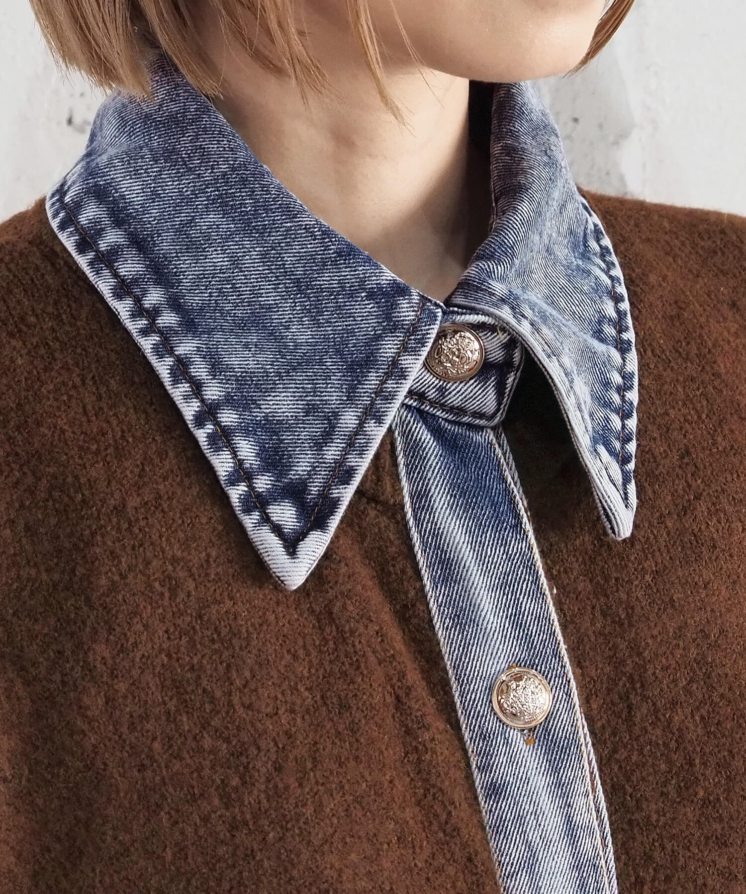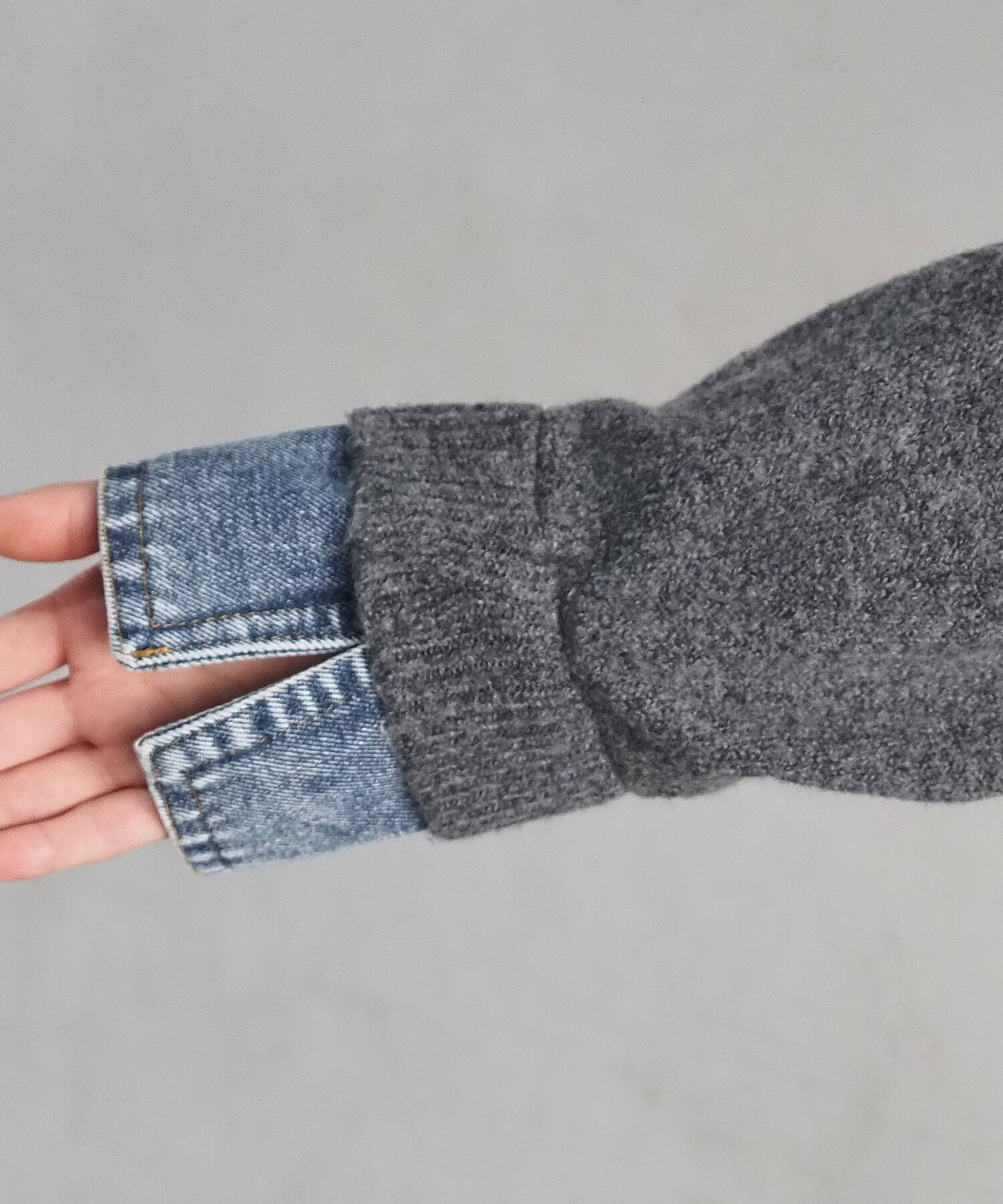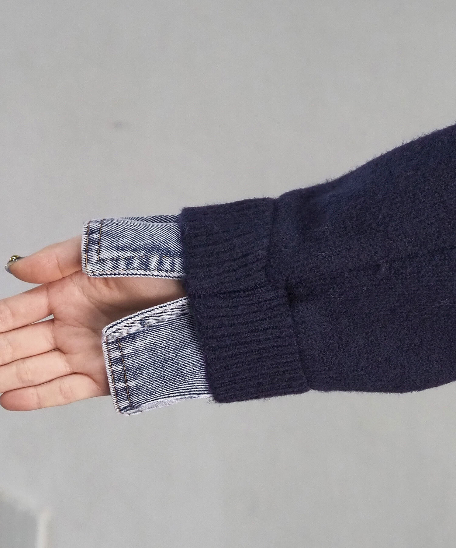 ・袖はデニムシャツのカフスを開けたような着こなしが楽しめるスリットデザイン。デニム部分を折り返してアレンジも楽しめます。