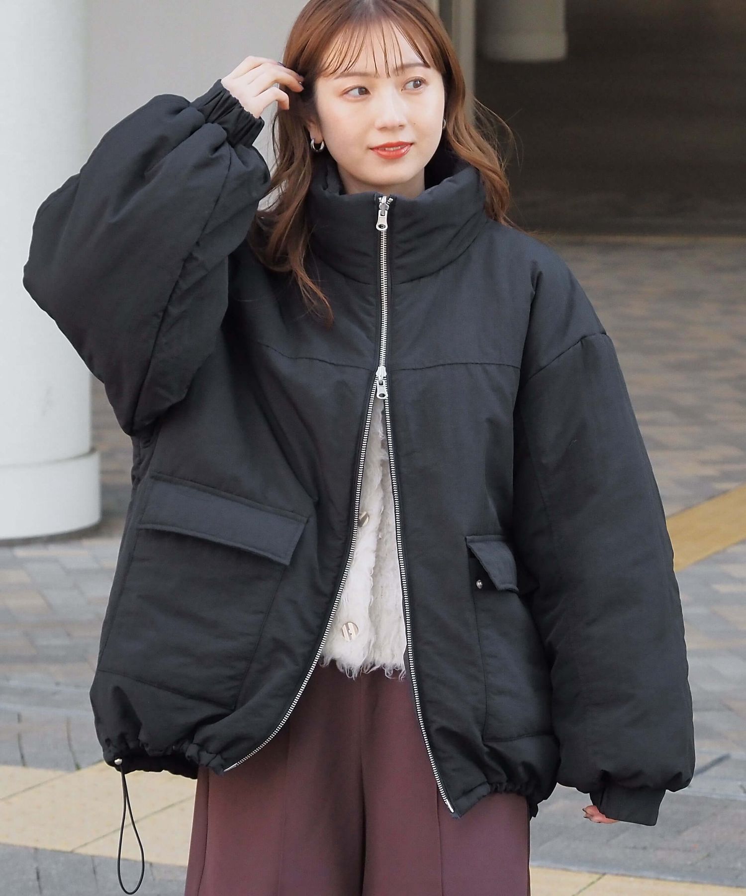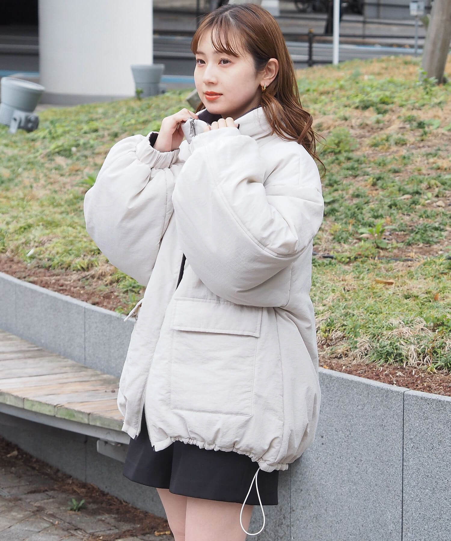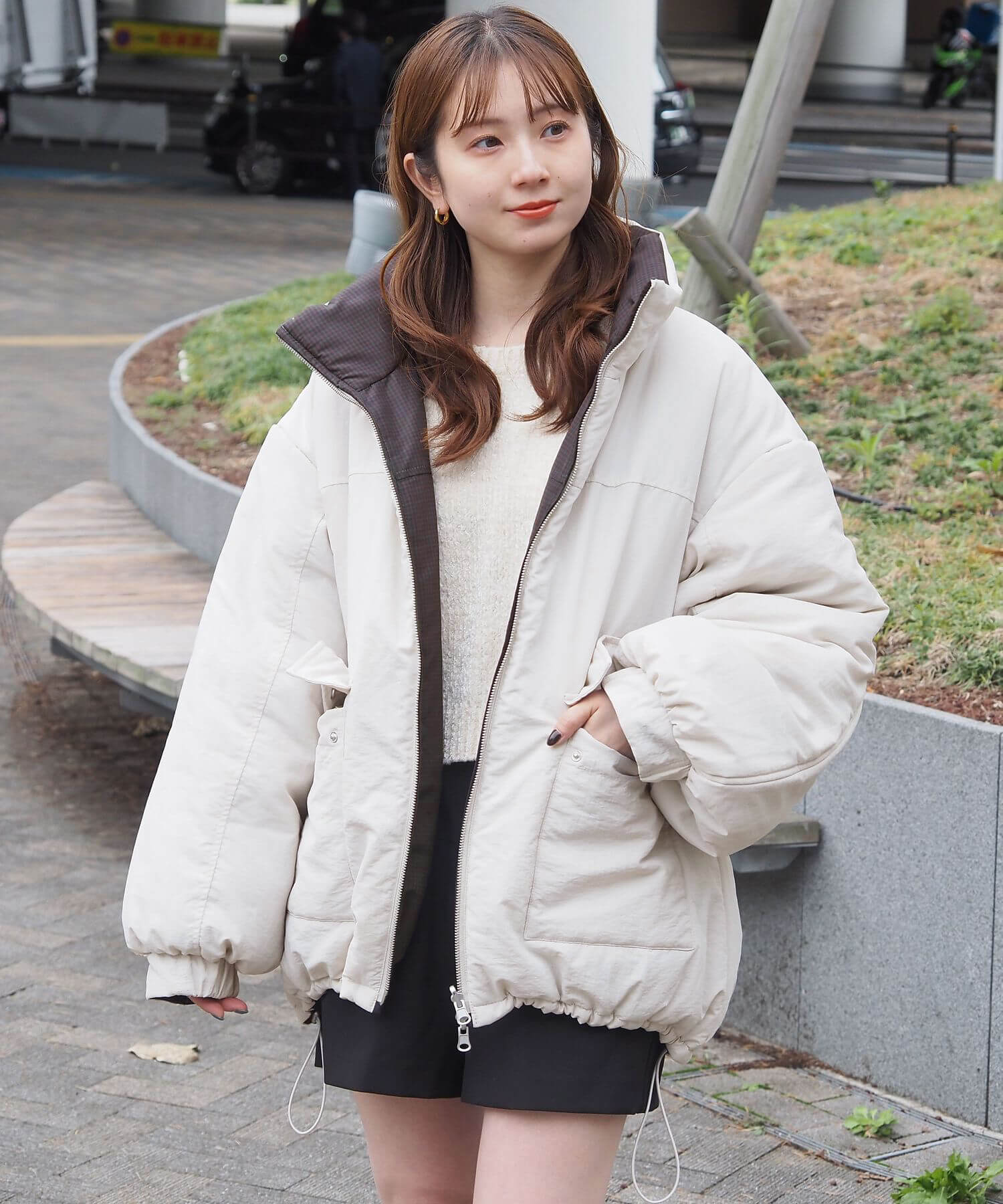 ・中綿入りで暖かく、厚手のトップスも着こめるゆとりのあるシルエットです。