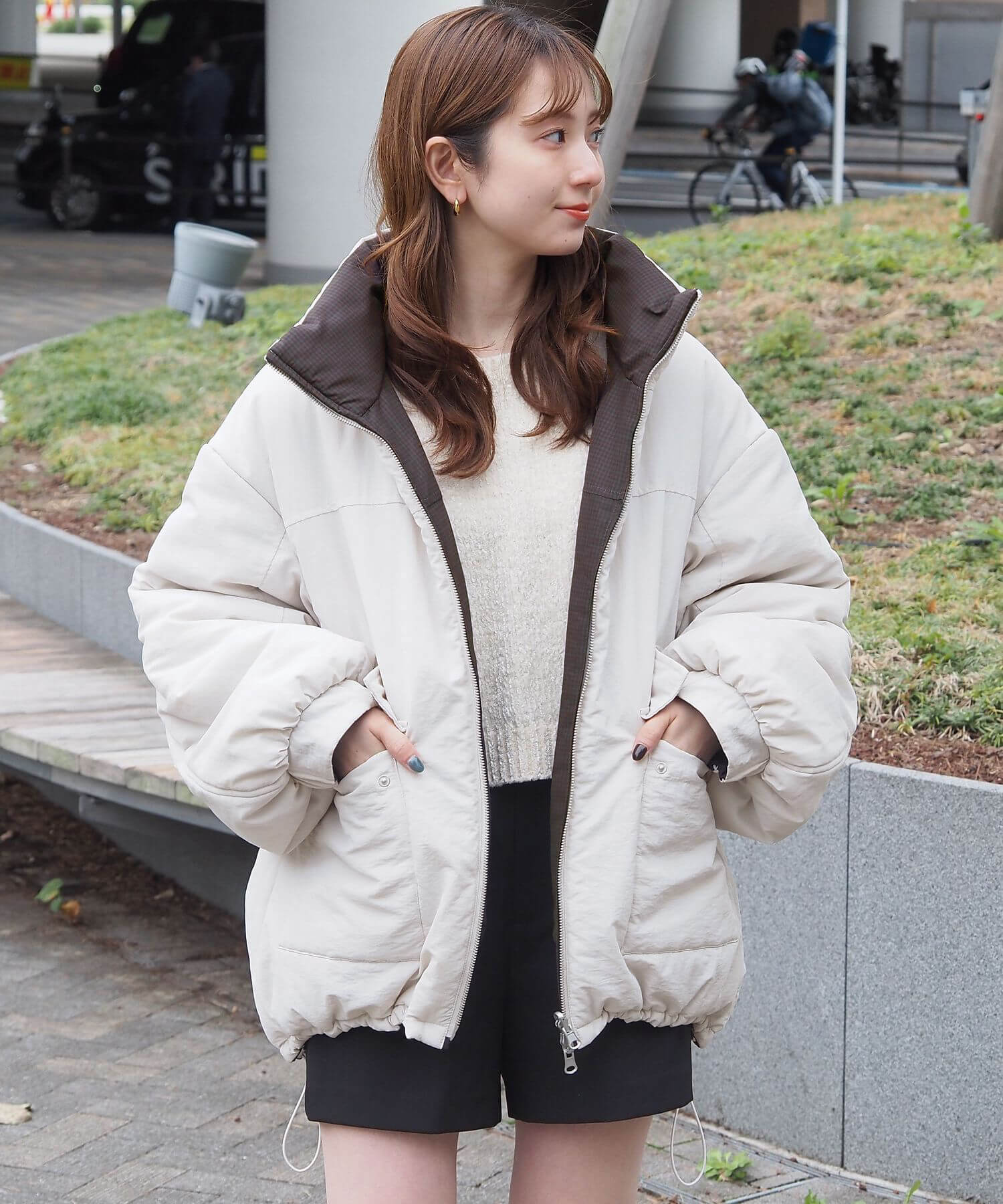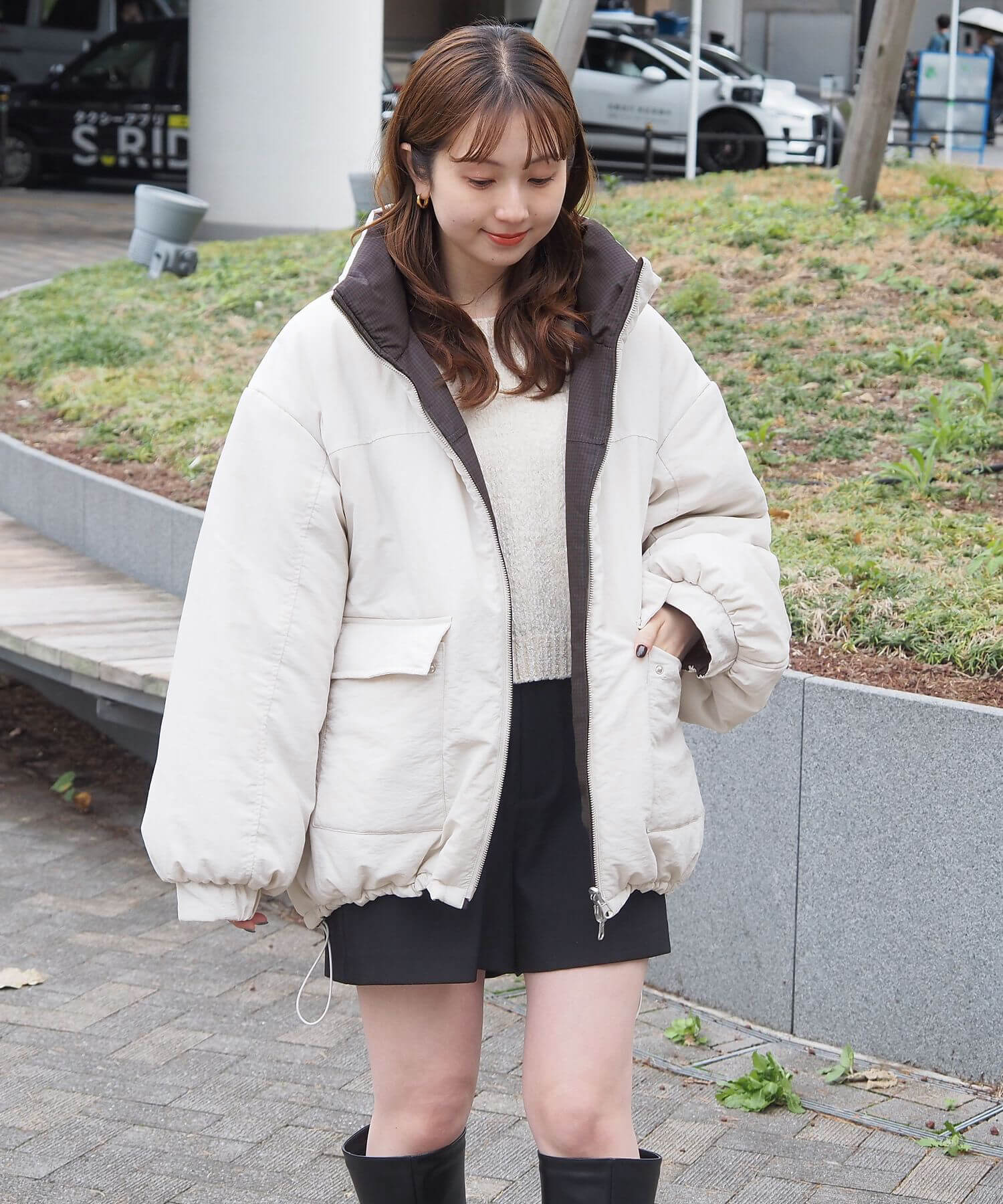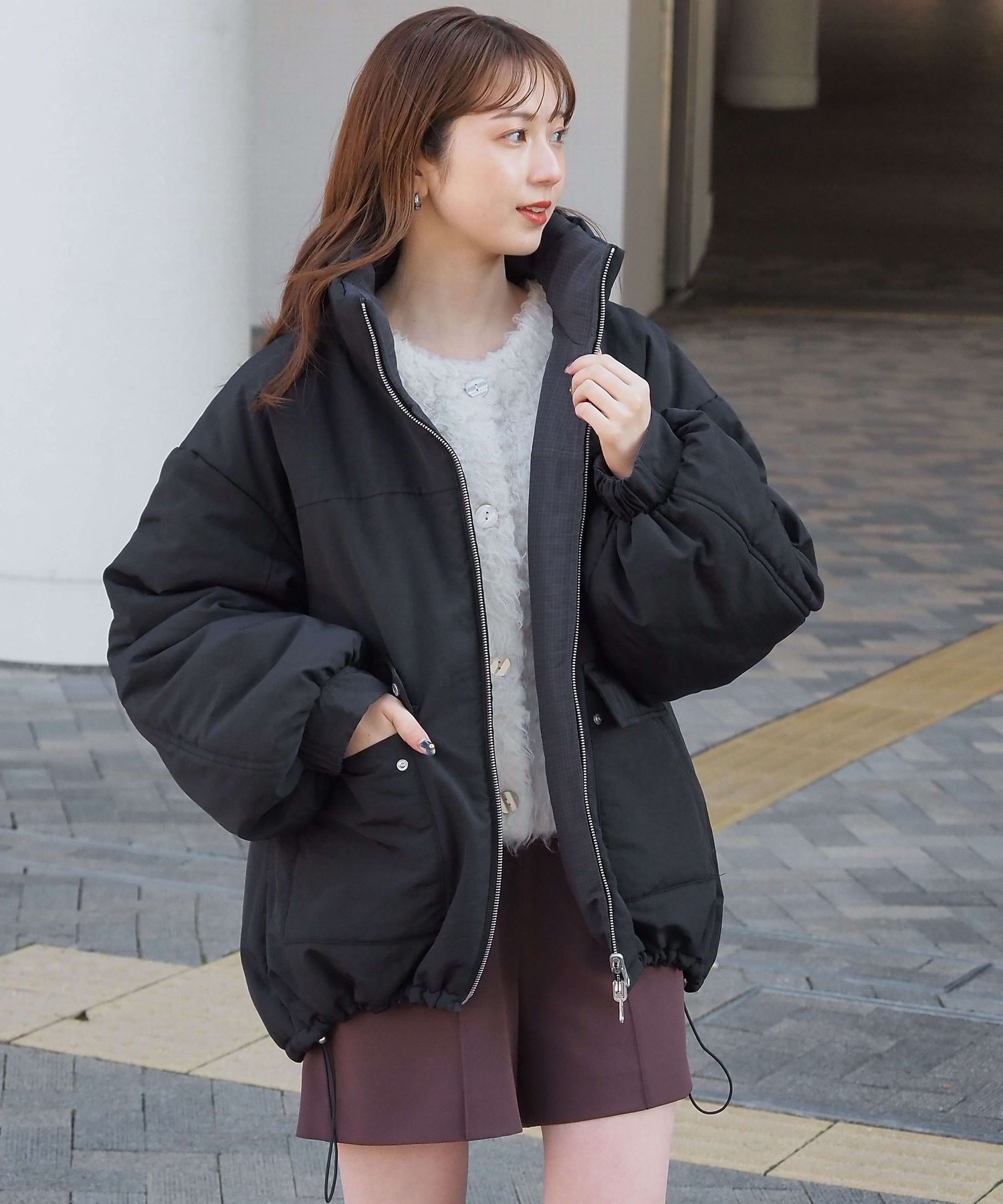 ・中綿入りで暖かく、厚手のトップスも着こめるゆとりのあるシルエットです。