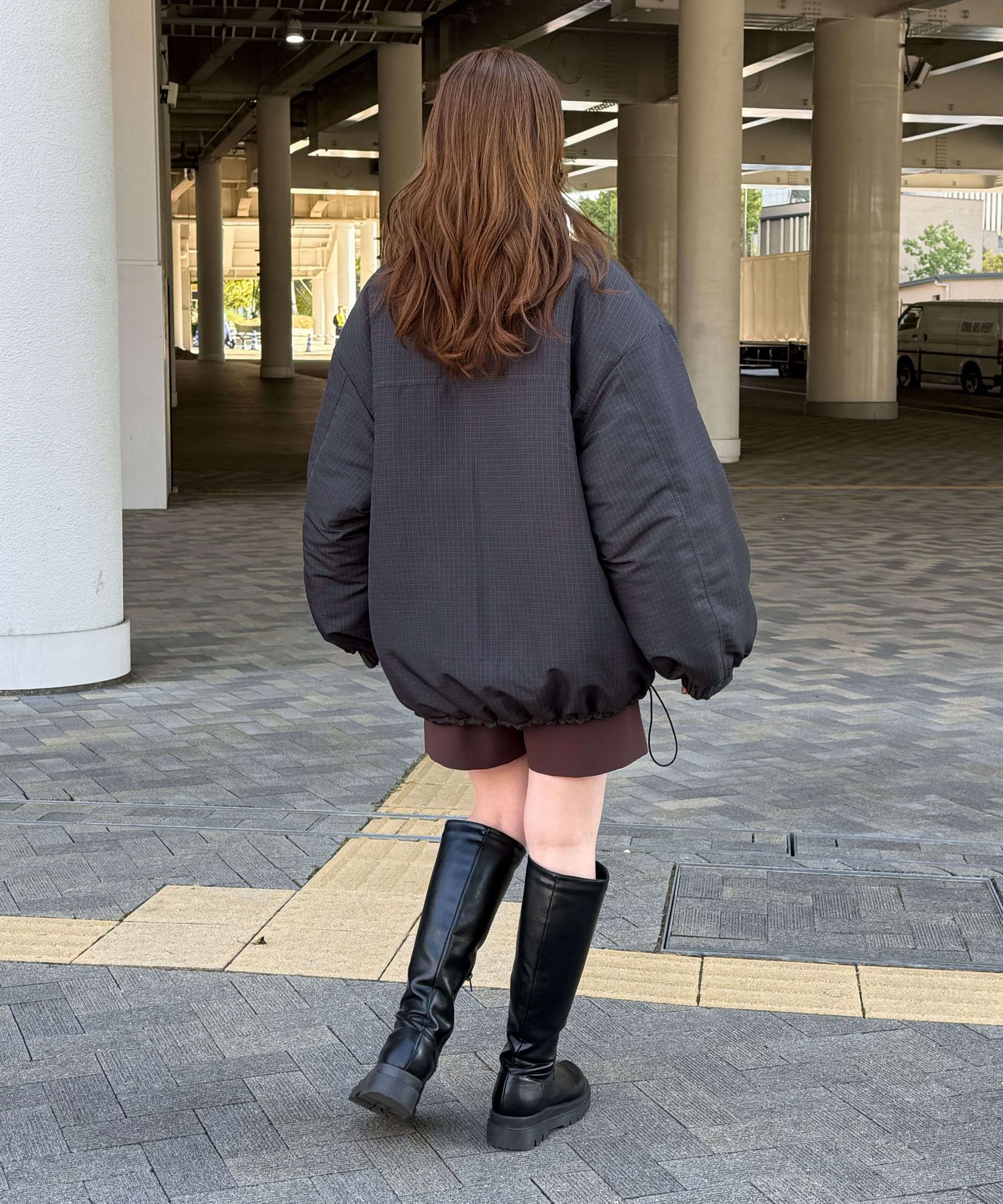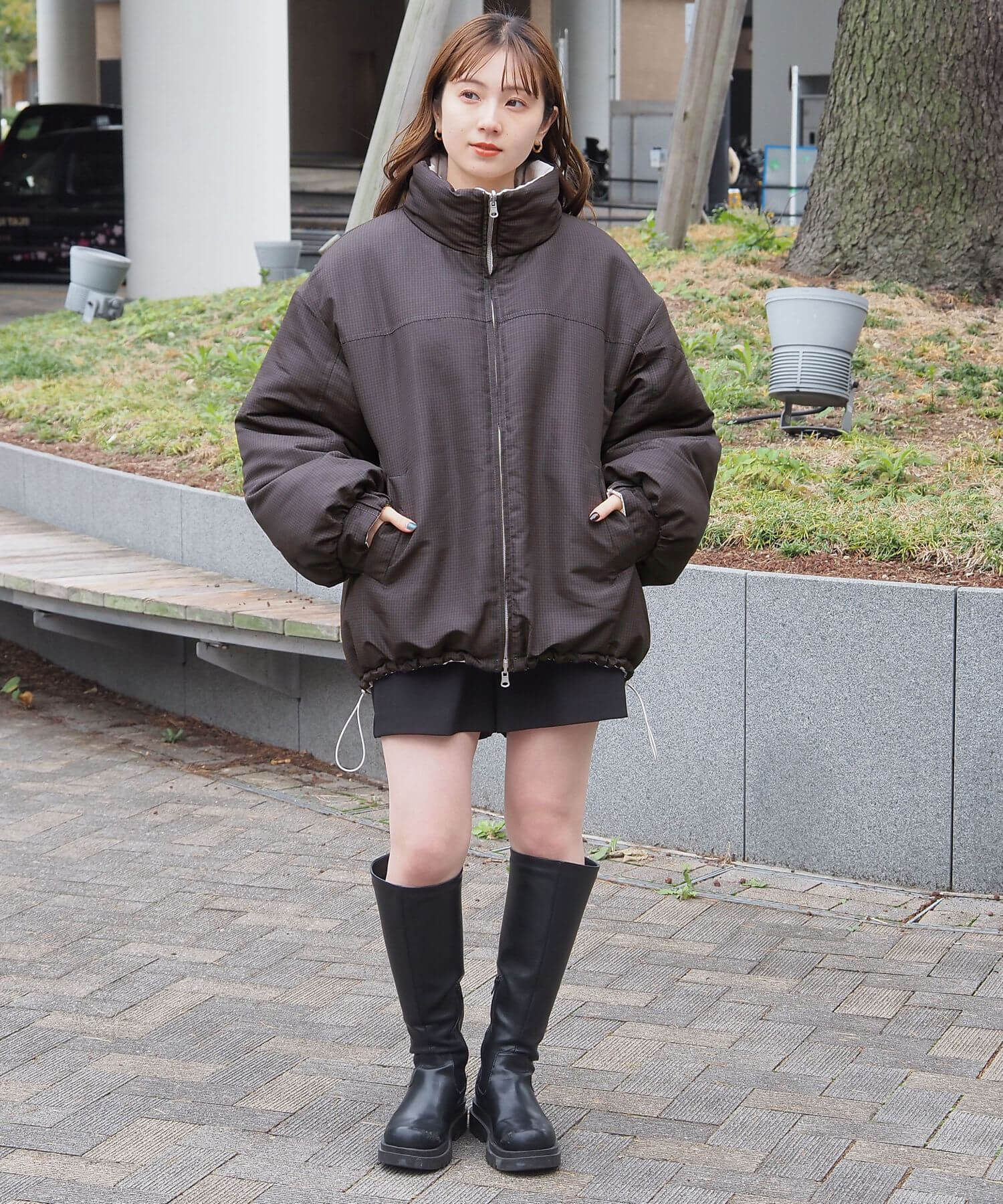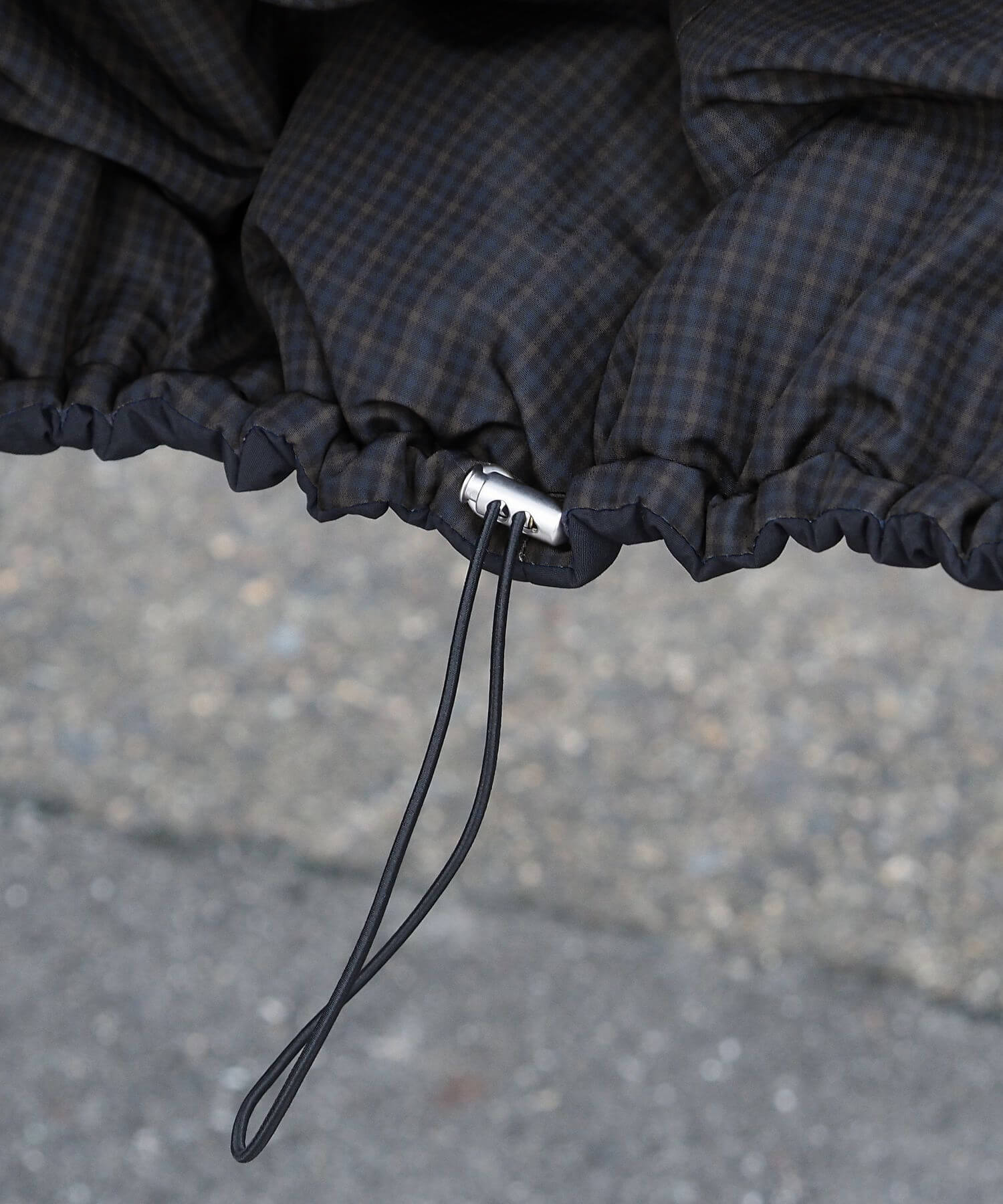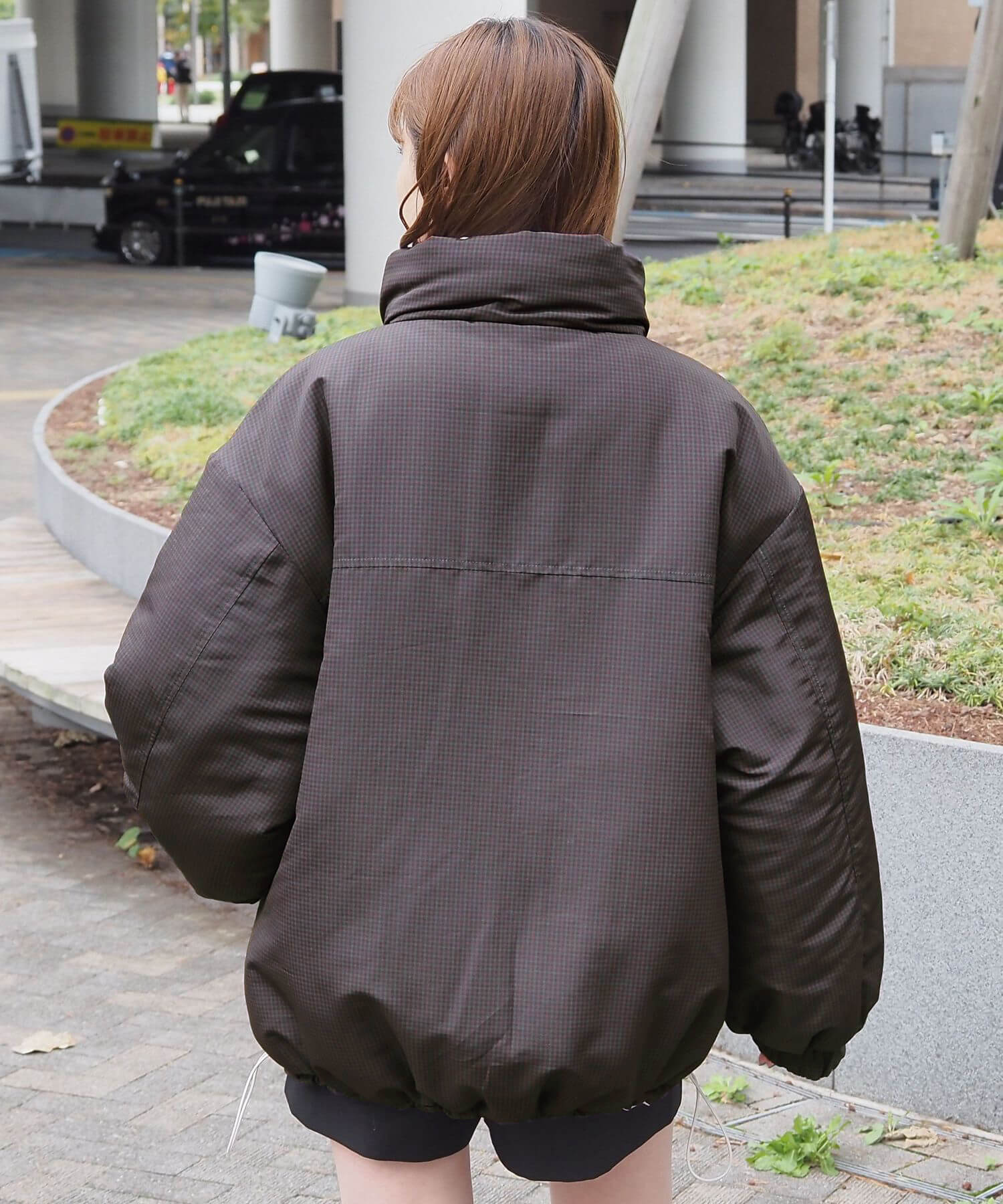 ・無地とチェック柄、リバーシブルで着用可能なスタンドブルゾンです。