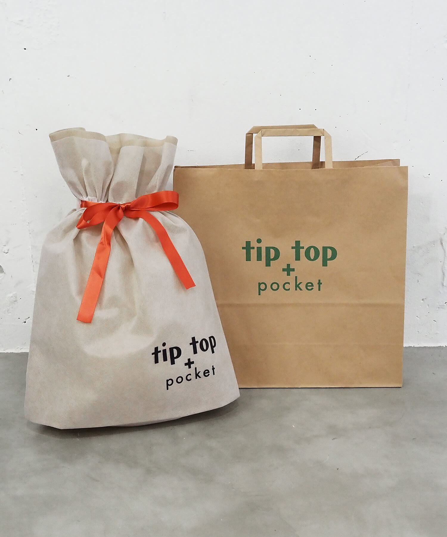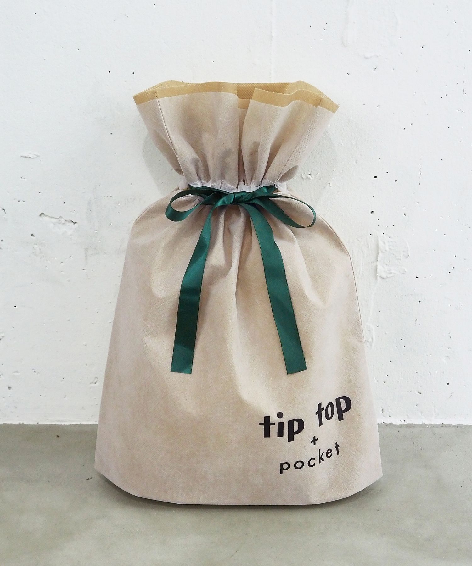 ・tiptop+pocketのロゴ入りの巾着型ギフトラッピング袋です。